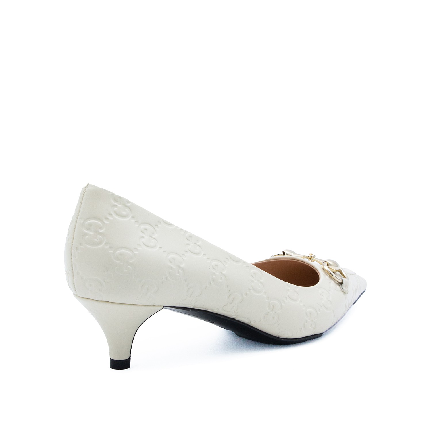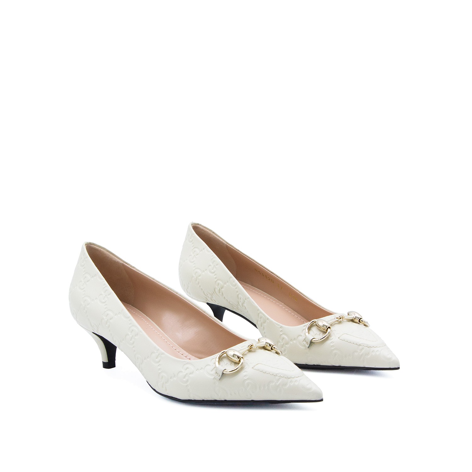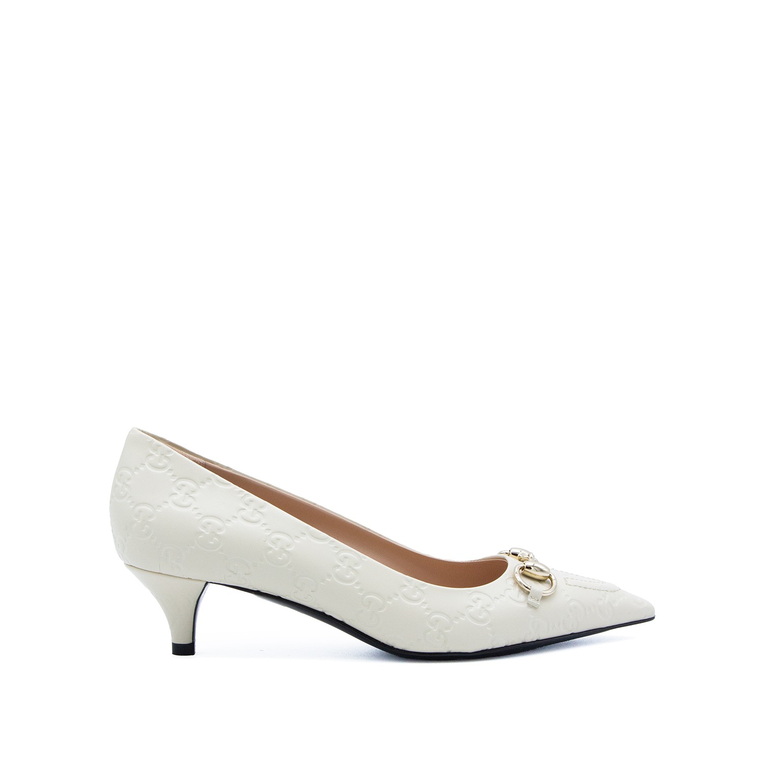 White leather pumps from Gucci featuring pointed toe, stiletto heel and leather sole.