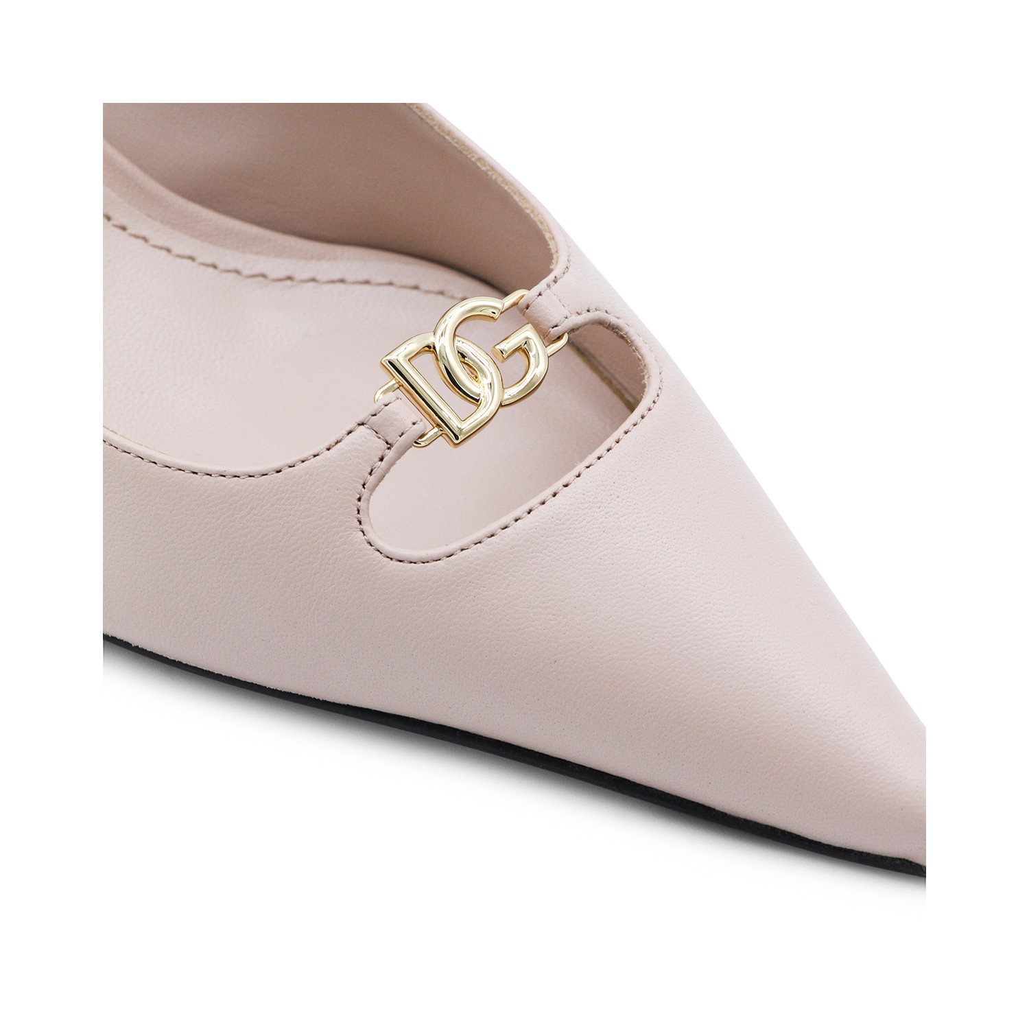 Light pink pumps from Dolce&Gabbana featuring pointed toe, stiletto heel, buckle fastening and open back.
