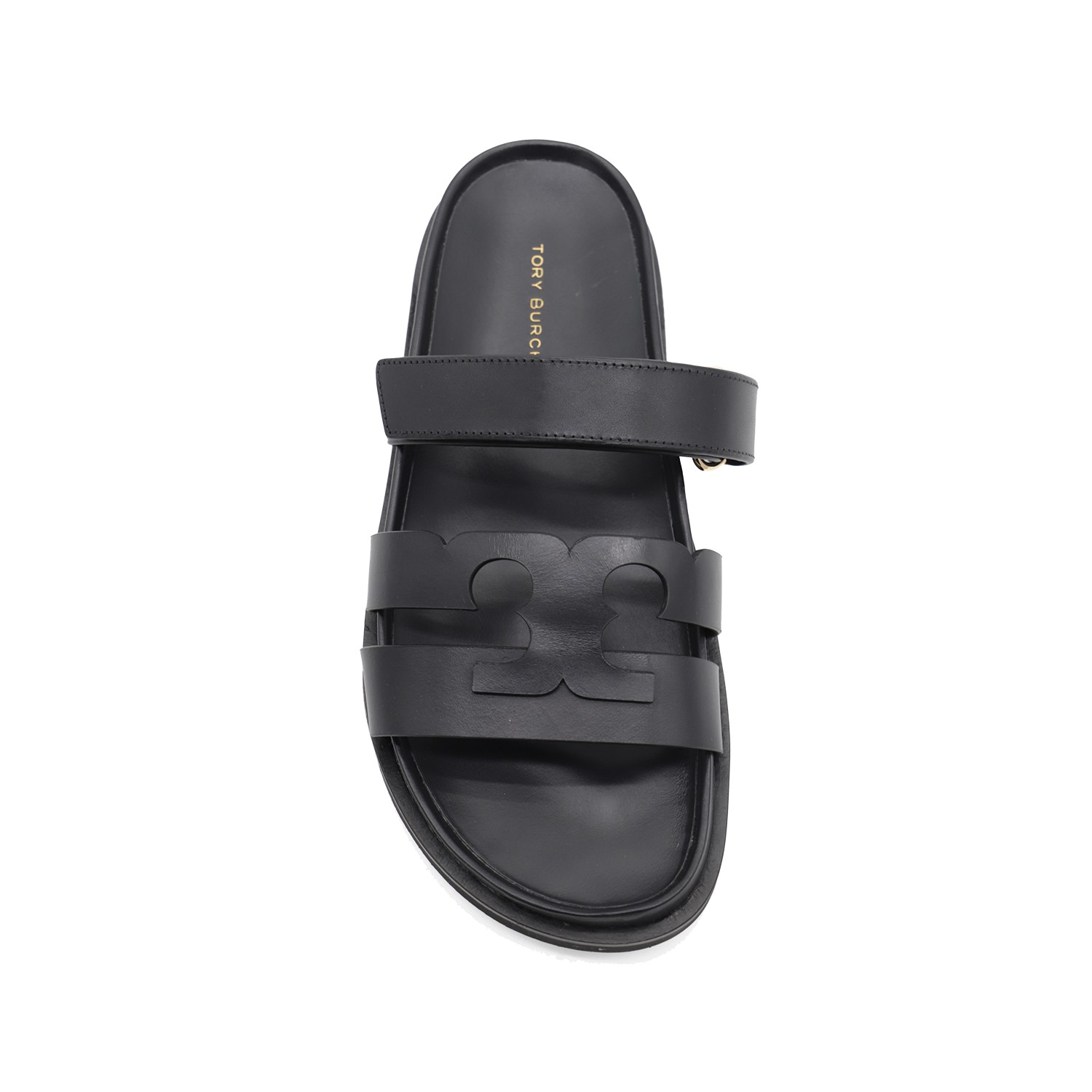 Black sandals from Tory Burch featuring round toe, leather soole, laces details, logo and open back.