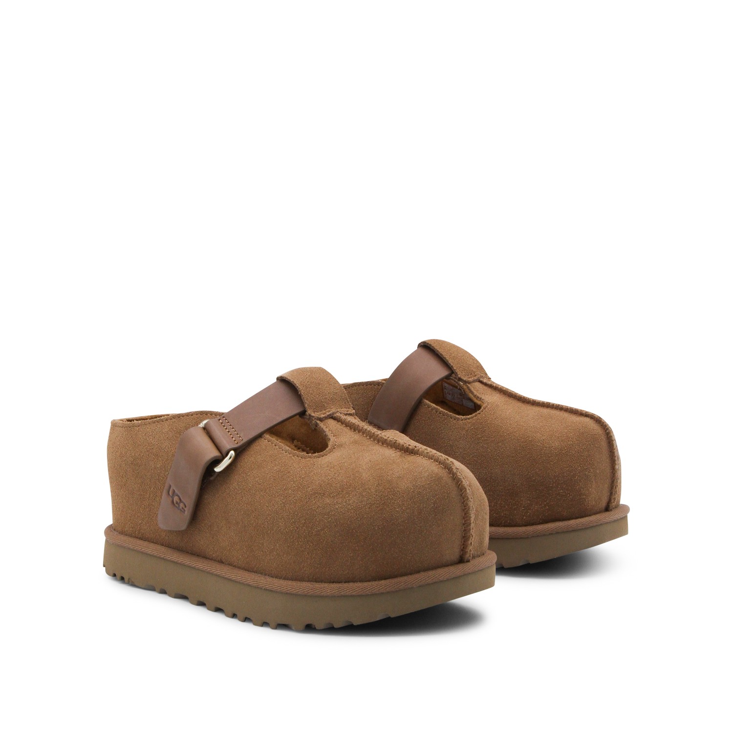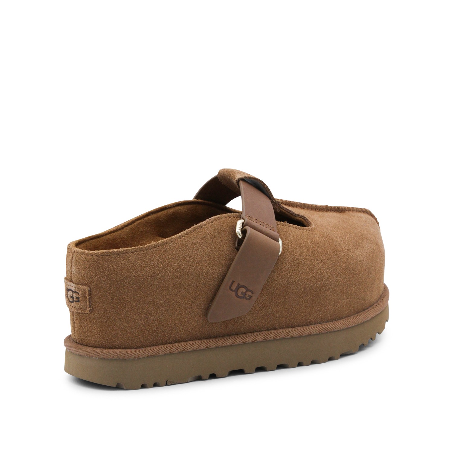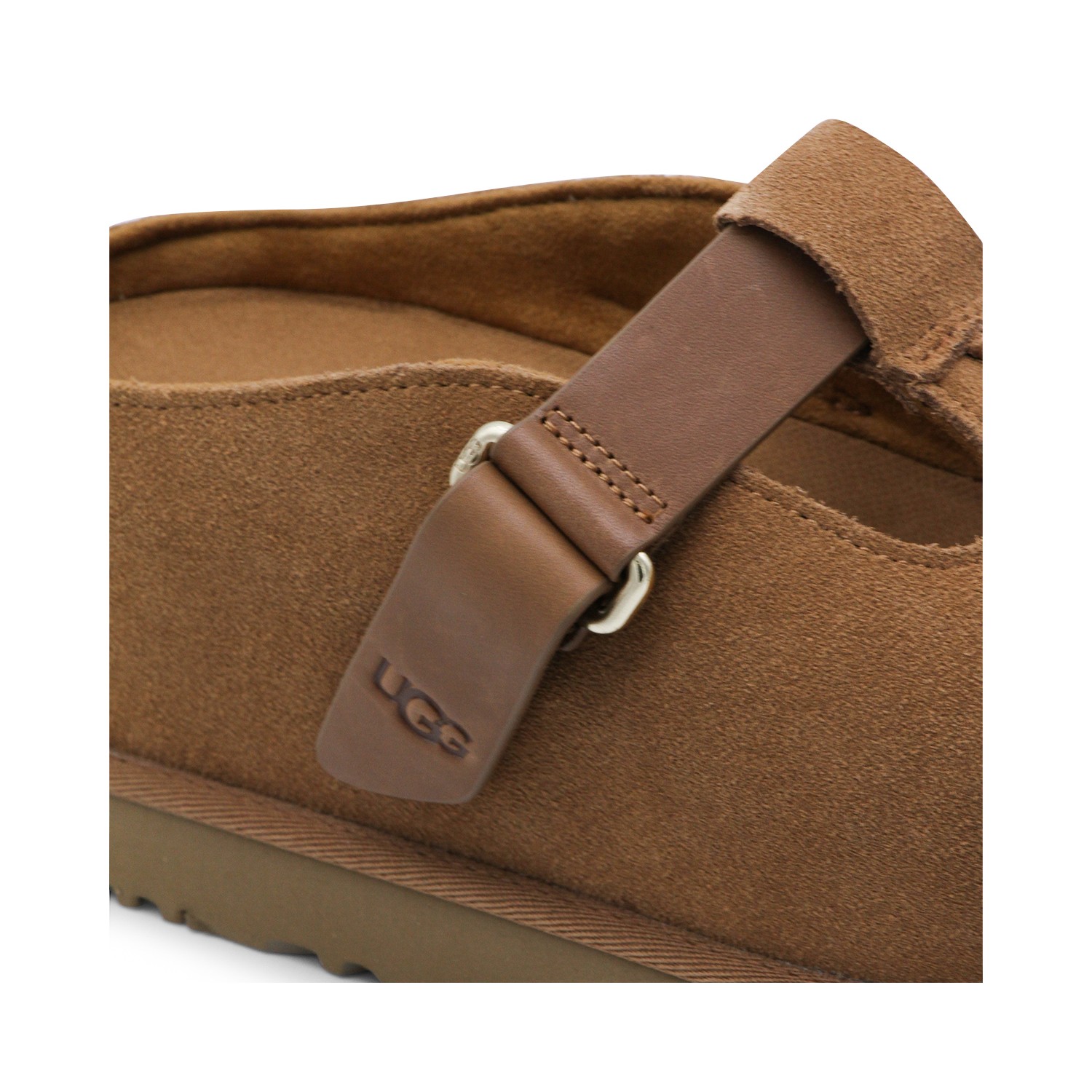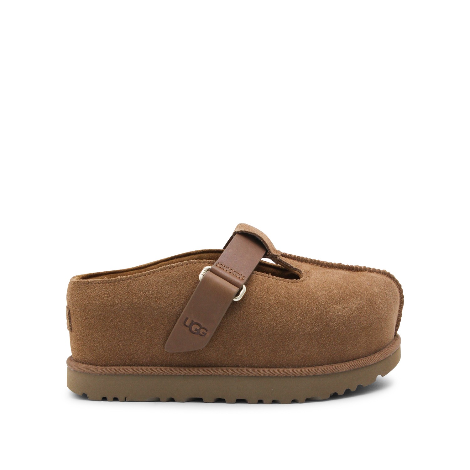 Brown Goldenstar sandals from UGG featuring sabot line, round toe, buckle fastening, logo details and rubber sole.