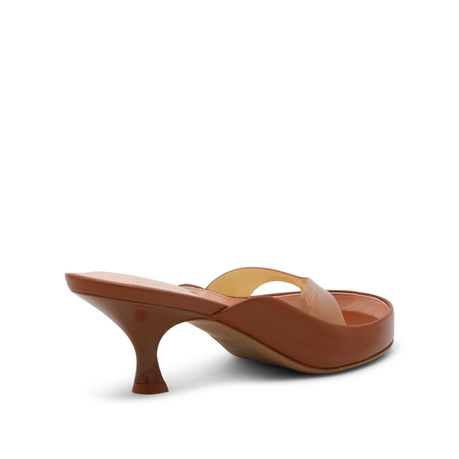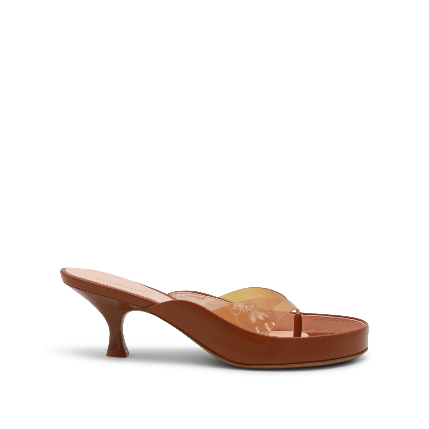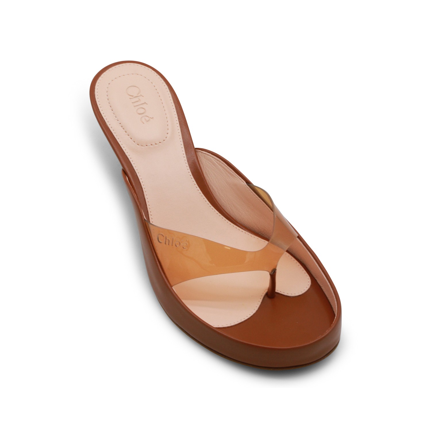 Brown leather Junie sandals from Chlofeaturing round open toe, slip-on style, padded insole, logo embellishment and spool heel.