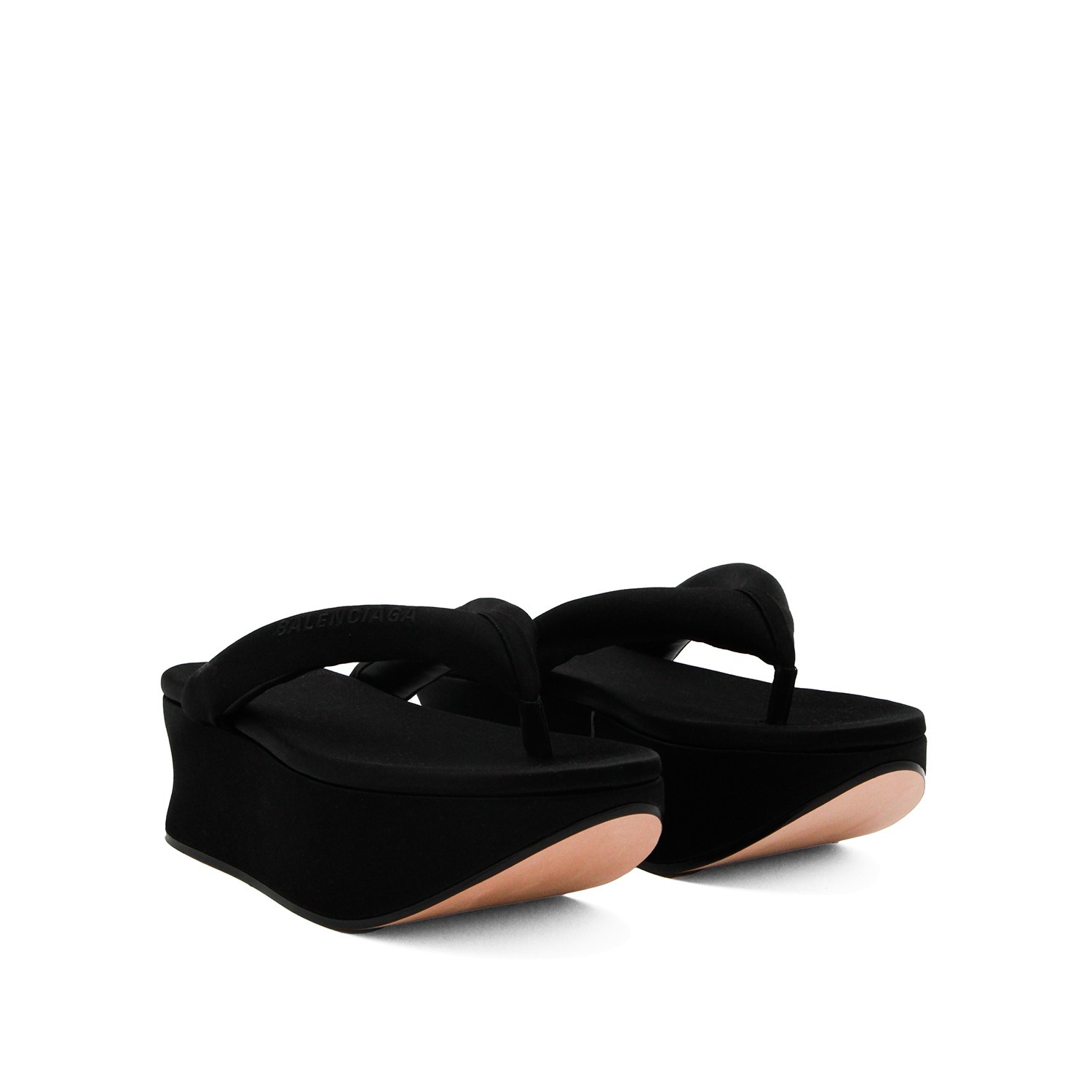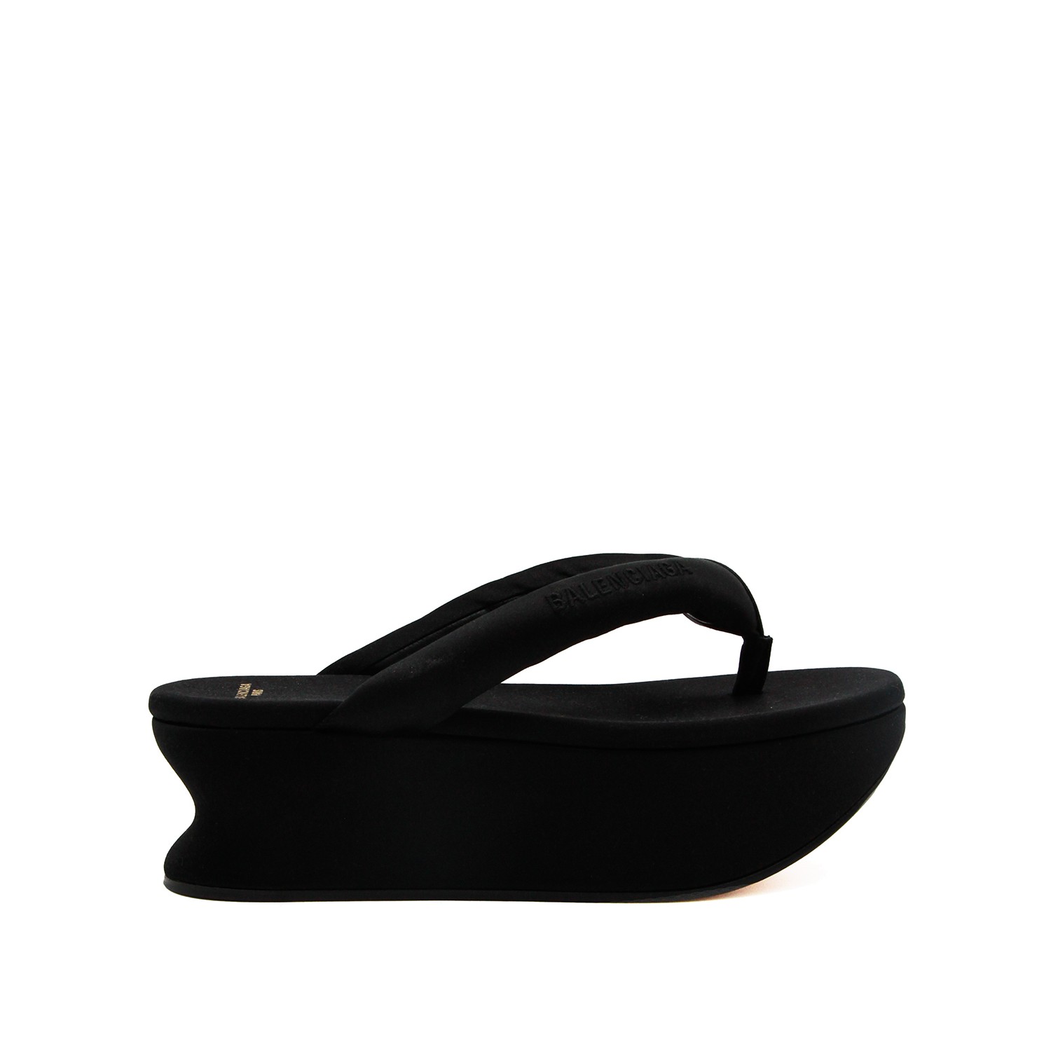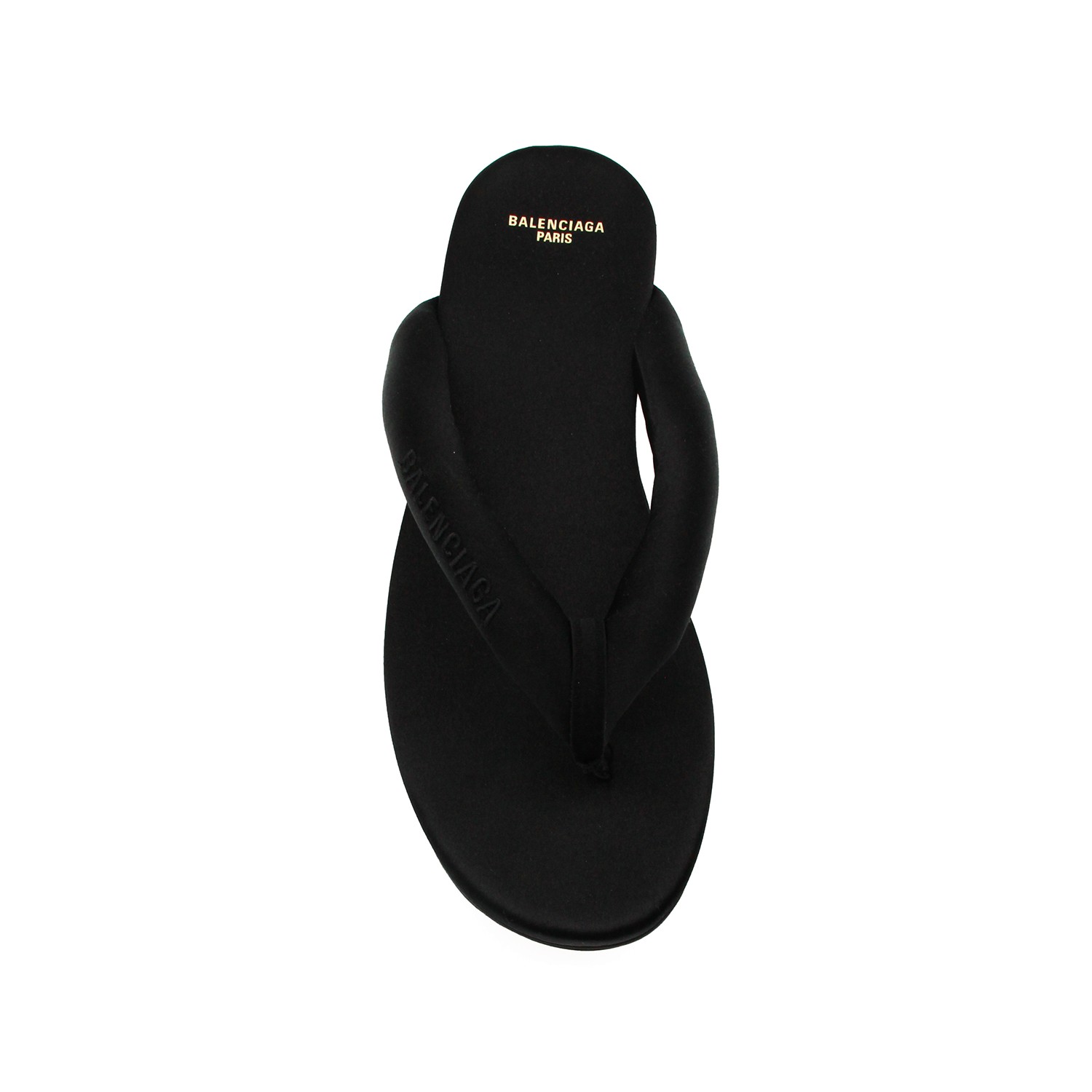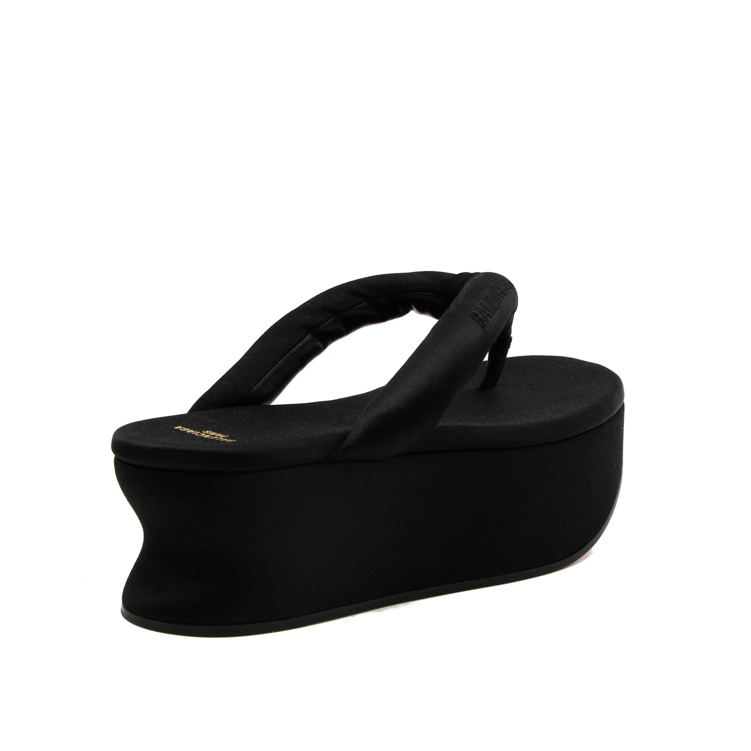 Black Gaeta sandals from Balenciaga featuring round toe, padded straps, slip-on style, branded insole, logo and rubber sole.