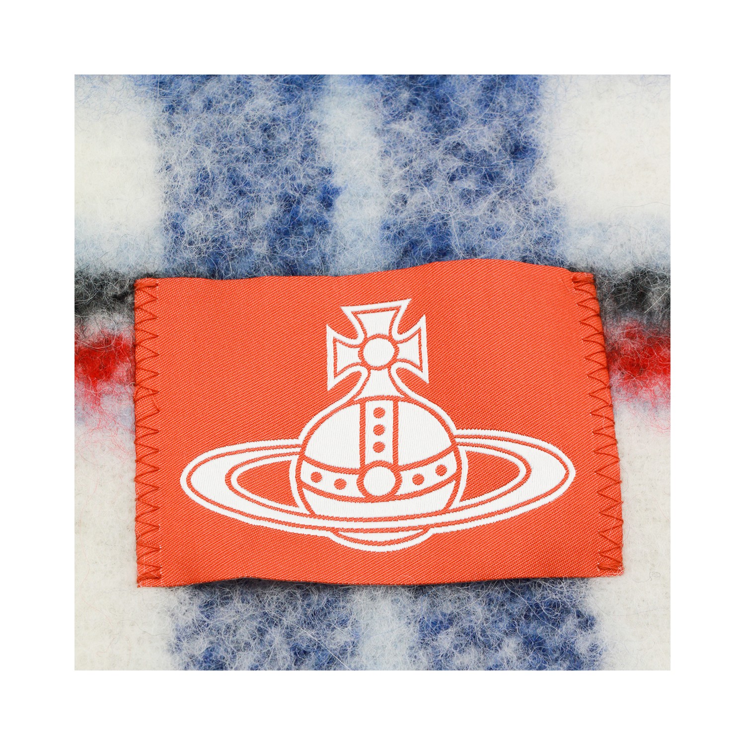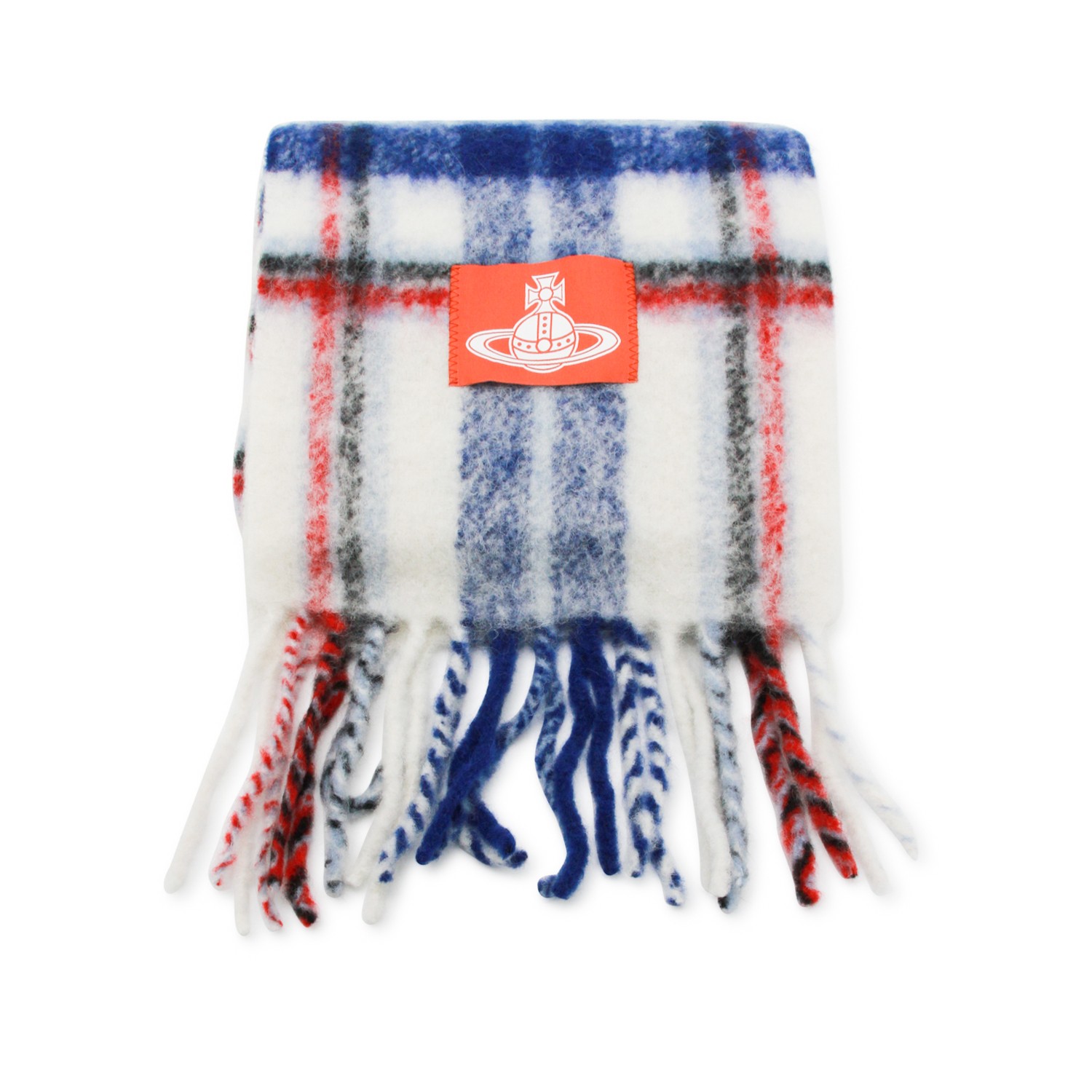 Multicolor wool scarf from Vivienne Westwood featuring fringed hem, logo patch and print decoration.