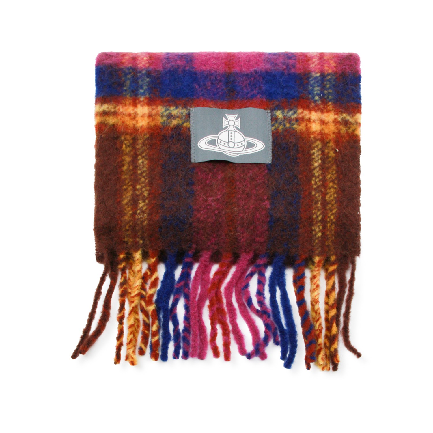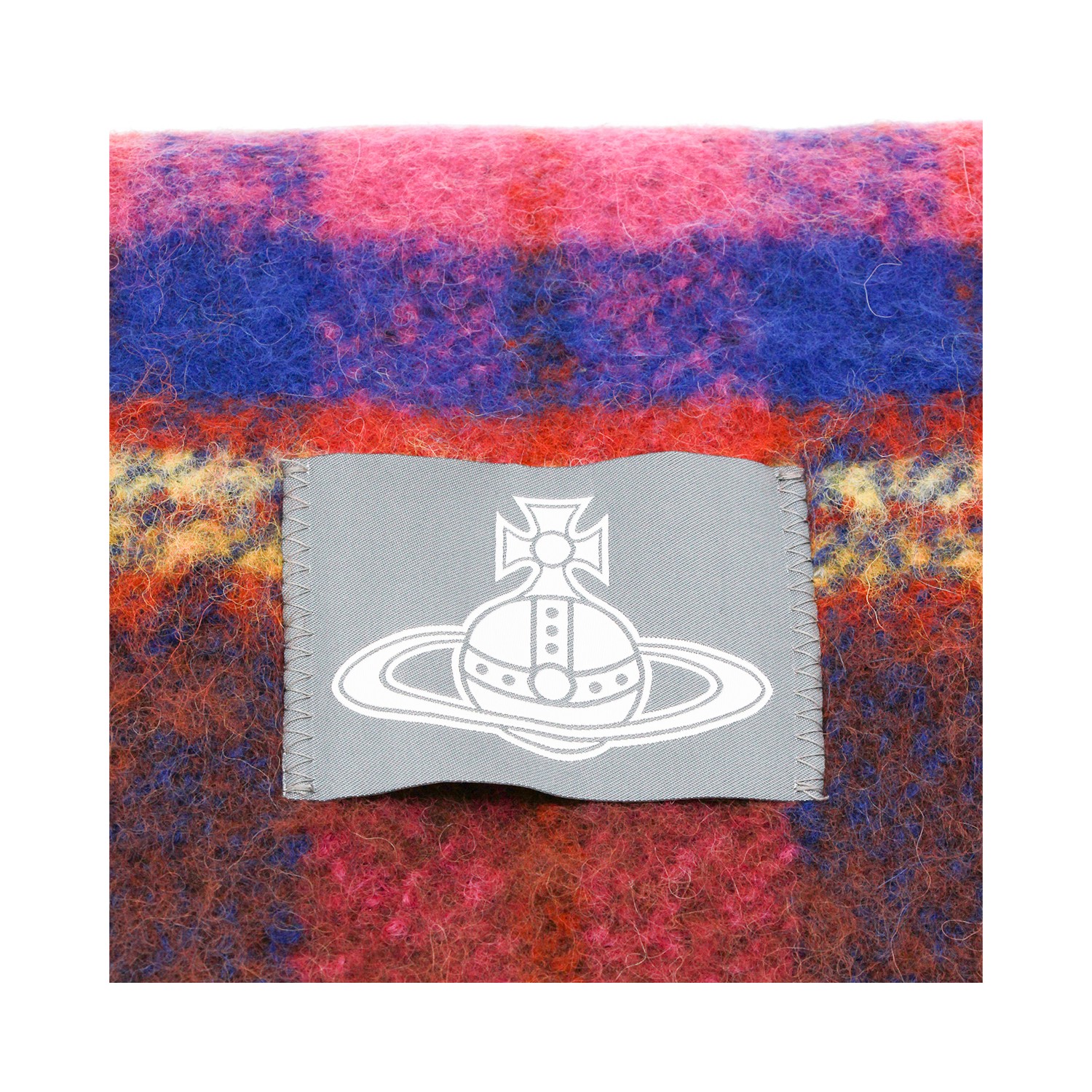 Multicolor wool scarf from Vivienne Westwood featuring fringed hem, logo patch and print decoration.