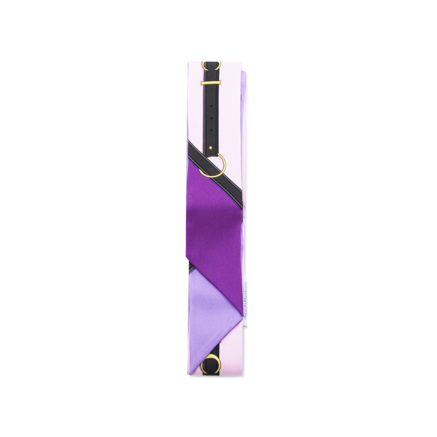 Purple silk scarf from Gucci featuring all-over horsebit print, silk and pointed tip.