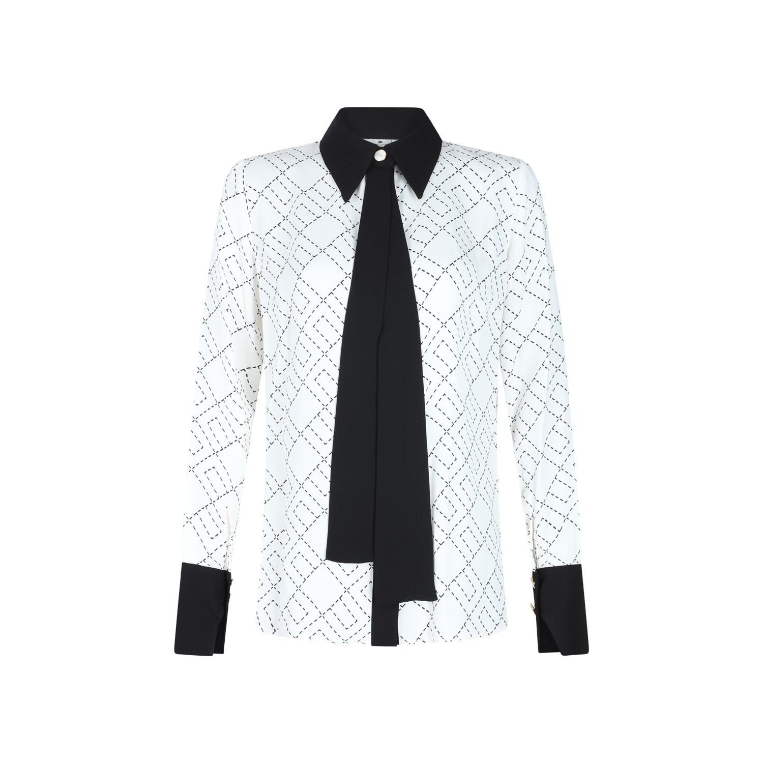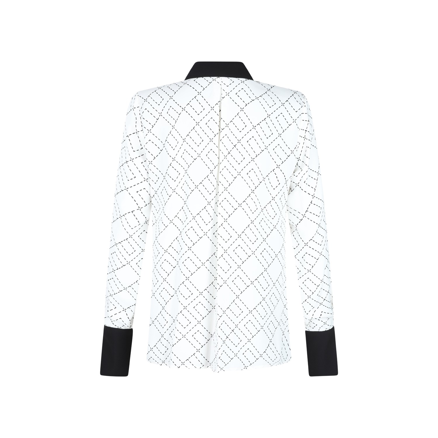 White and black shirt from Elisabetta Franchi featuring classic collar, long sleeves, buttoned cuffs, frontal fastening and regular vestibility.