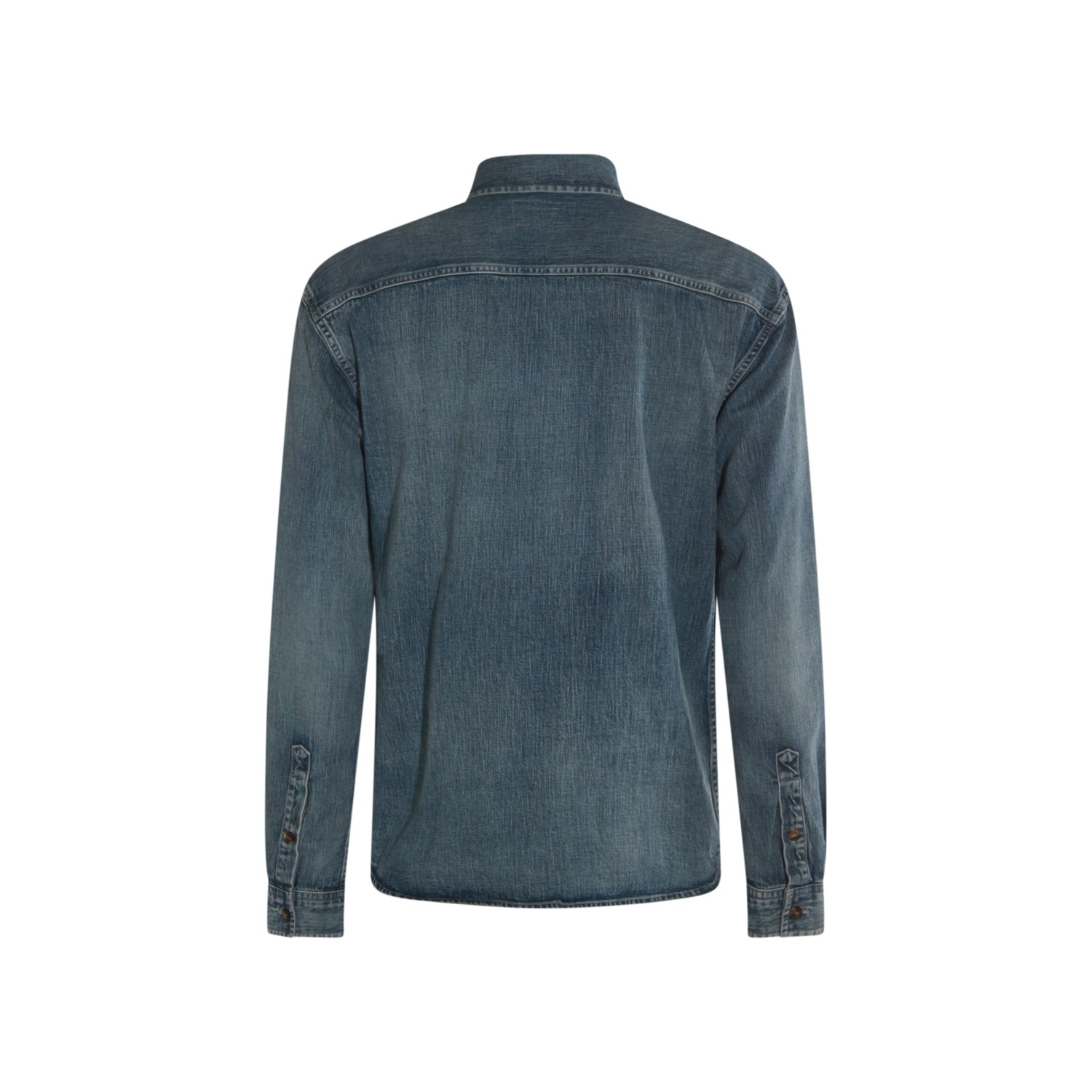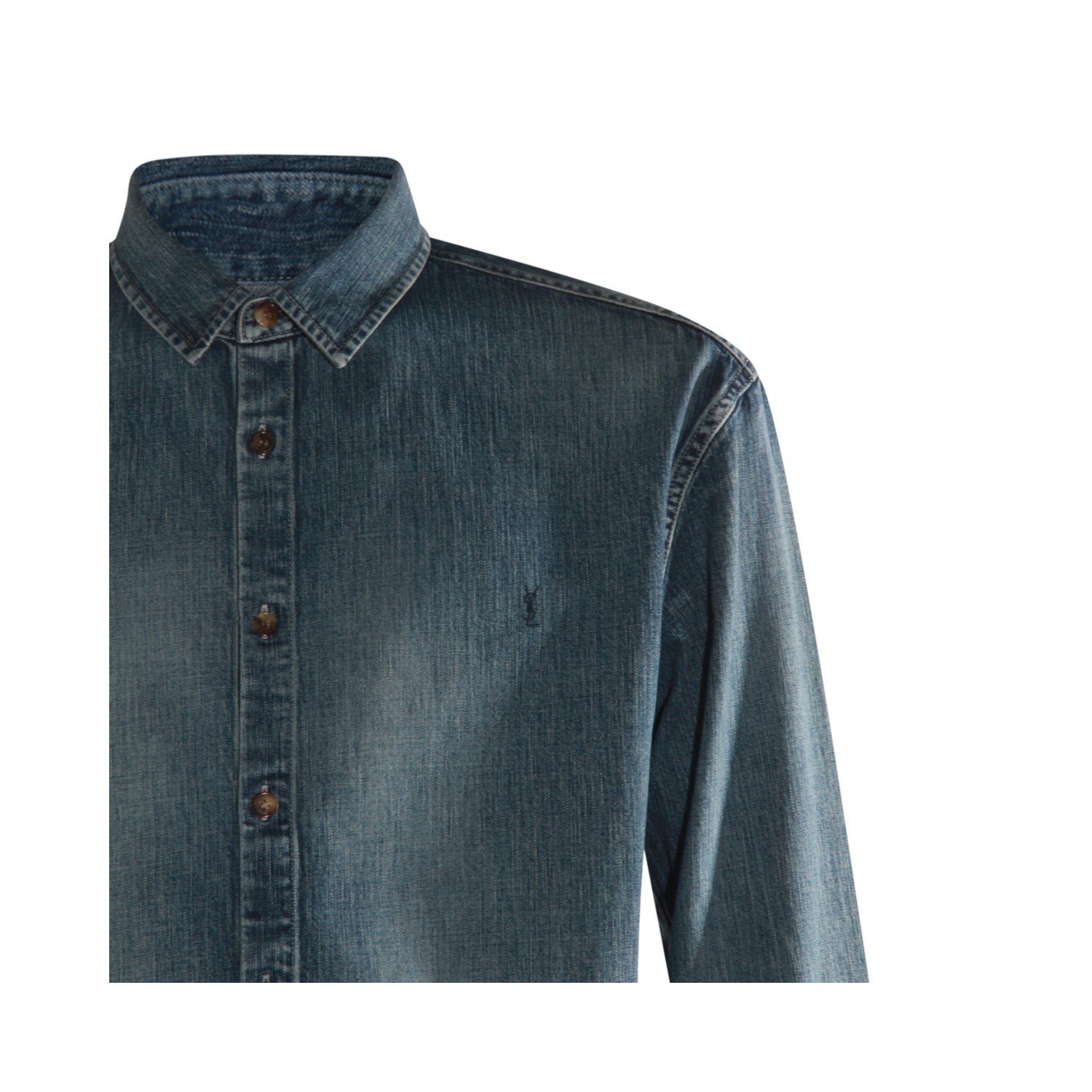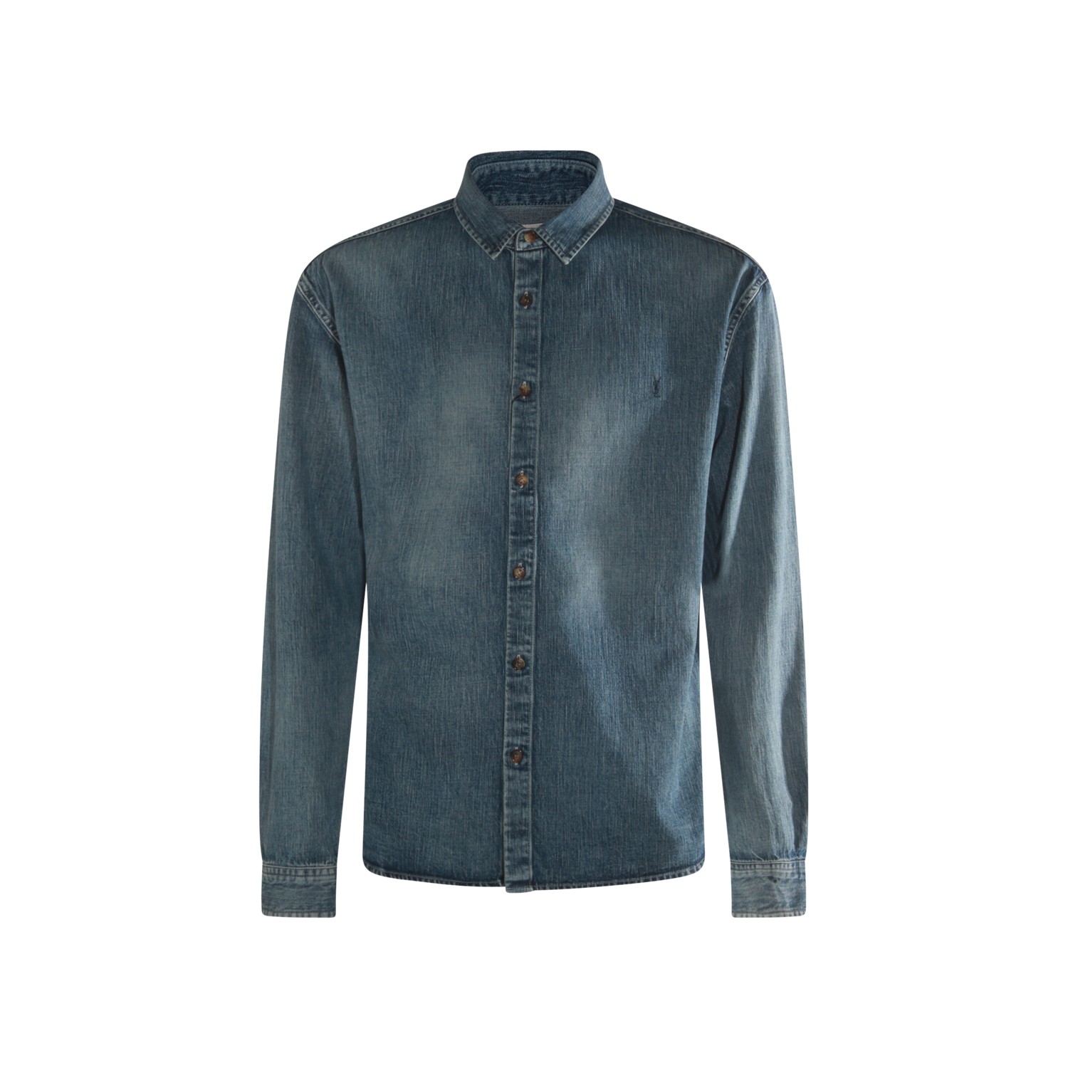 Blue cotton shirt from Saint Laurent featuring classic collar, long sleeves, frontal buttons fastening, buttoned cuffs and regular vestibility.