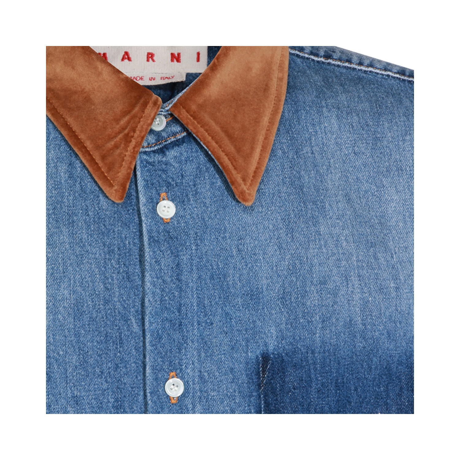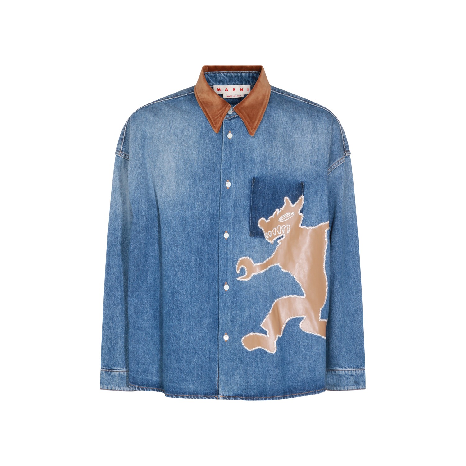 Blue cotton shirt from Marni featuring classic shirt collar, long sleeves, frontal fastening and regular vestibility.