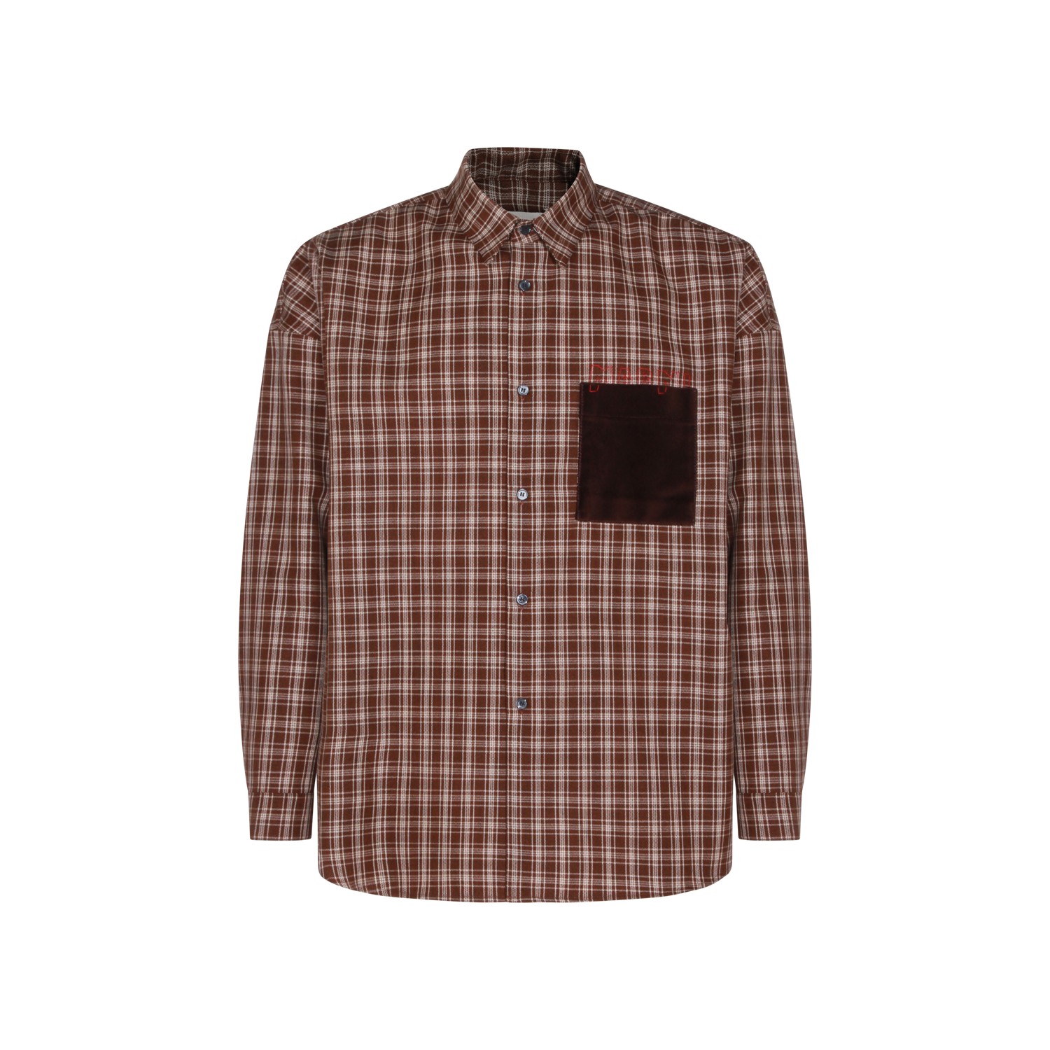 Brown wool shirt from Marni featuring classic shirt collar, long sleeves, frontal buttons, chest pocket and regular vestibility.