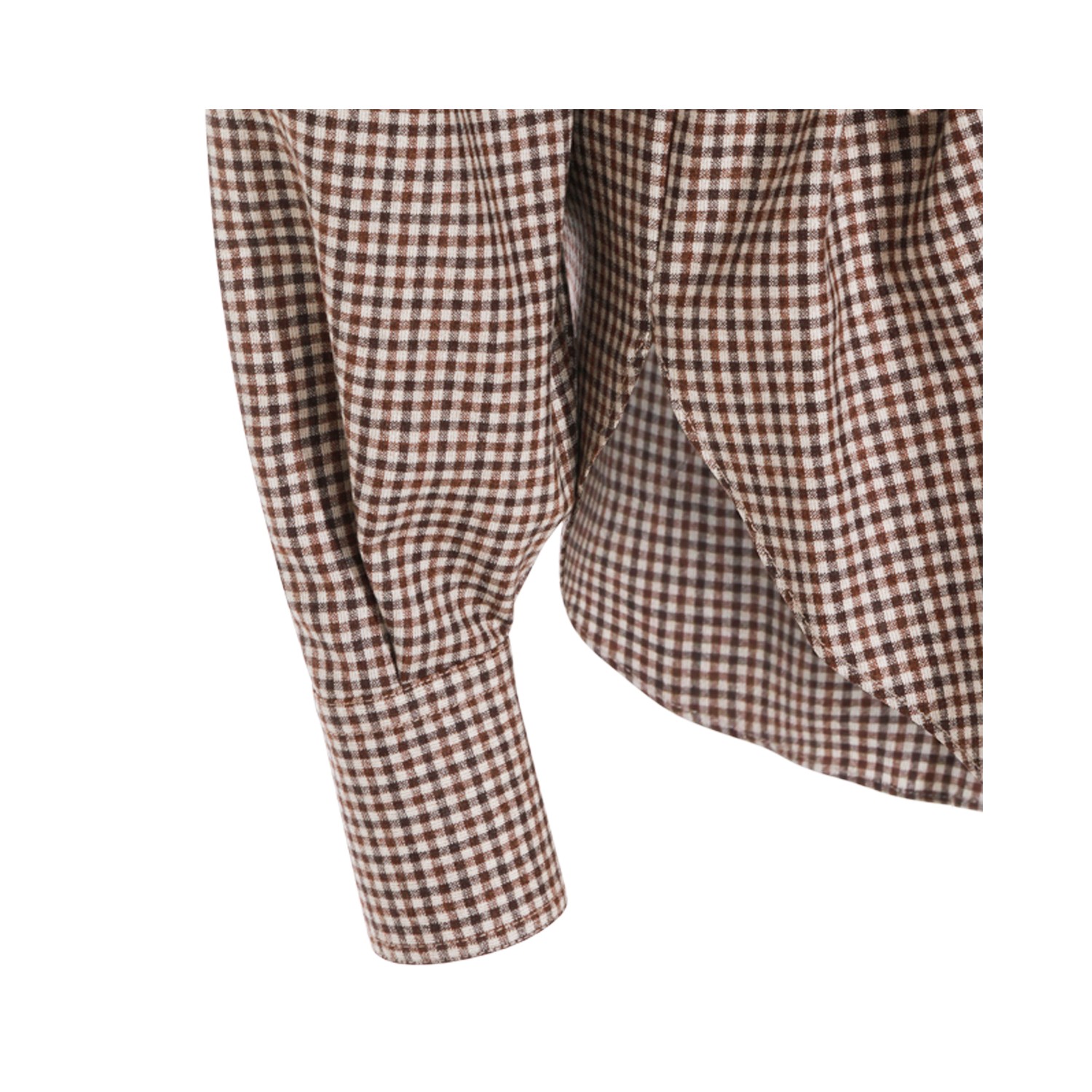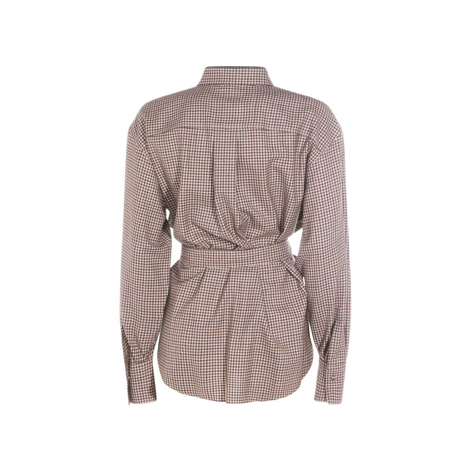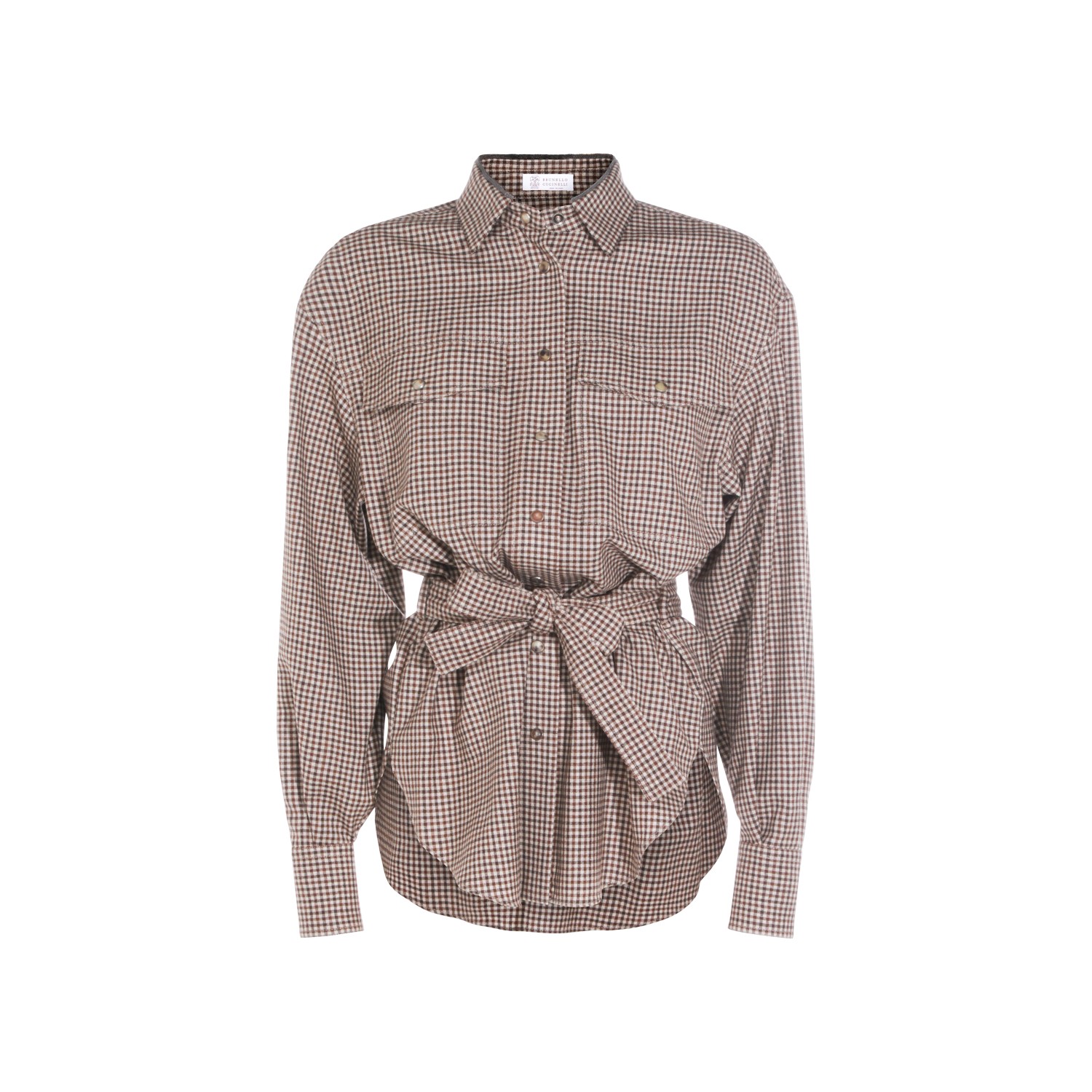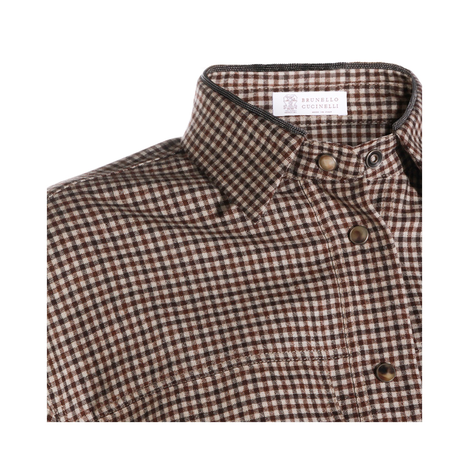Brown wool shirt from Brunello Cucinelli featuring classic shirt collar, long sleeves, frontal buttons fastening, belted waist and regular vestibility.