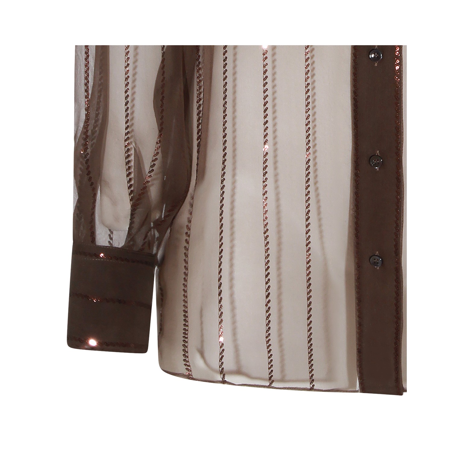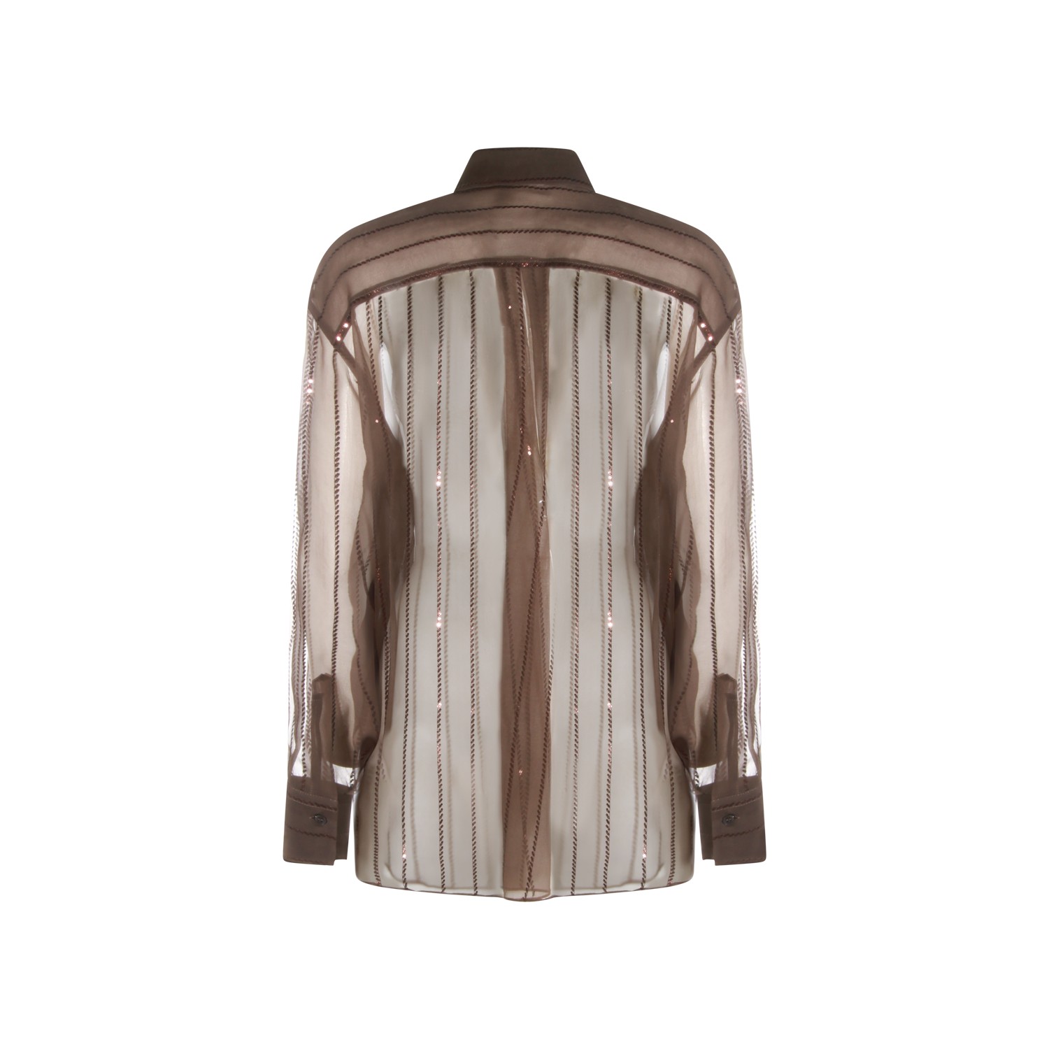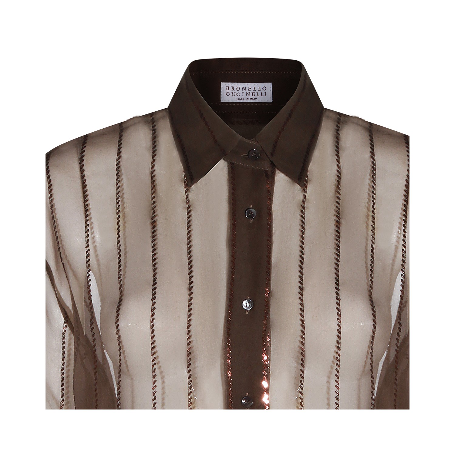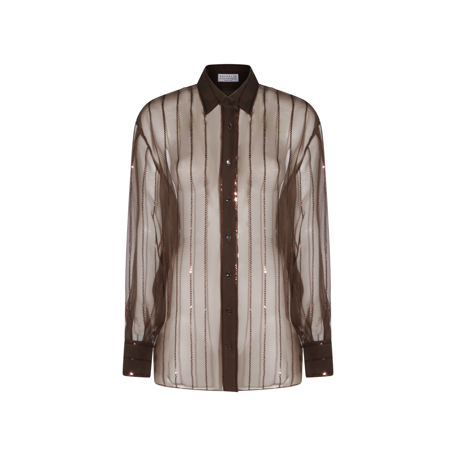 Dark chocolate shirt from Brunello Cucinelli featuring regular collar, buttons fastening, long sleeves, vertical details, transparences and regular vestibility.