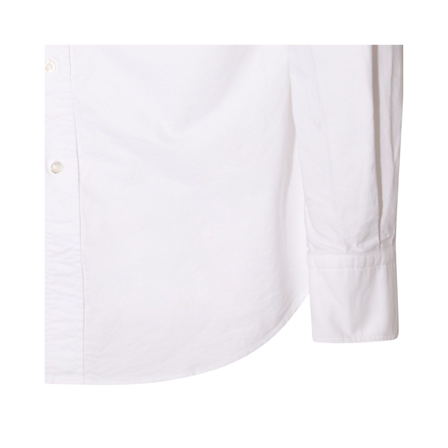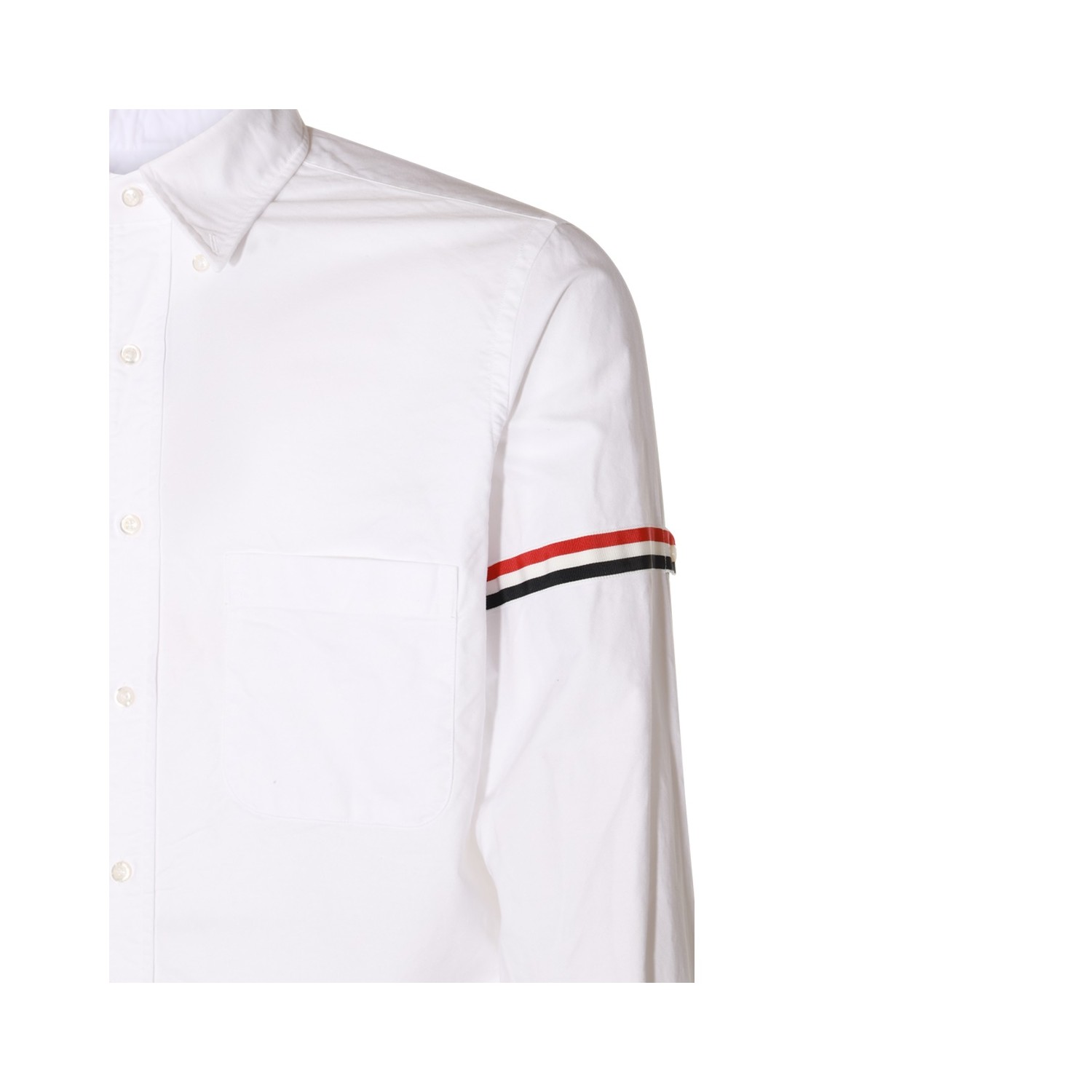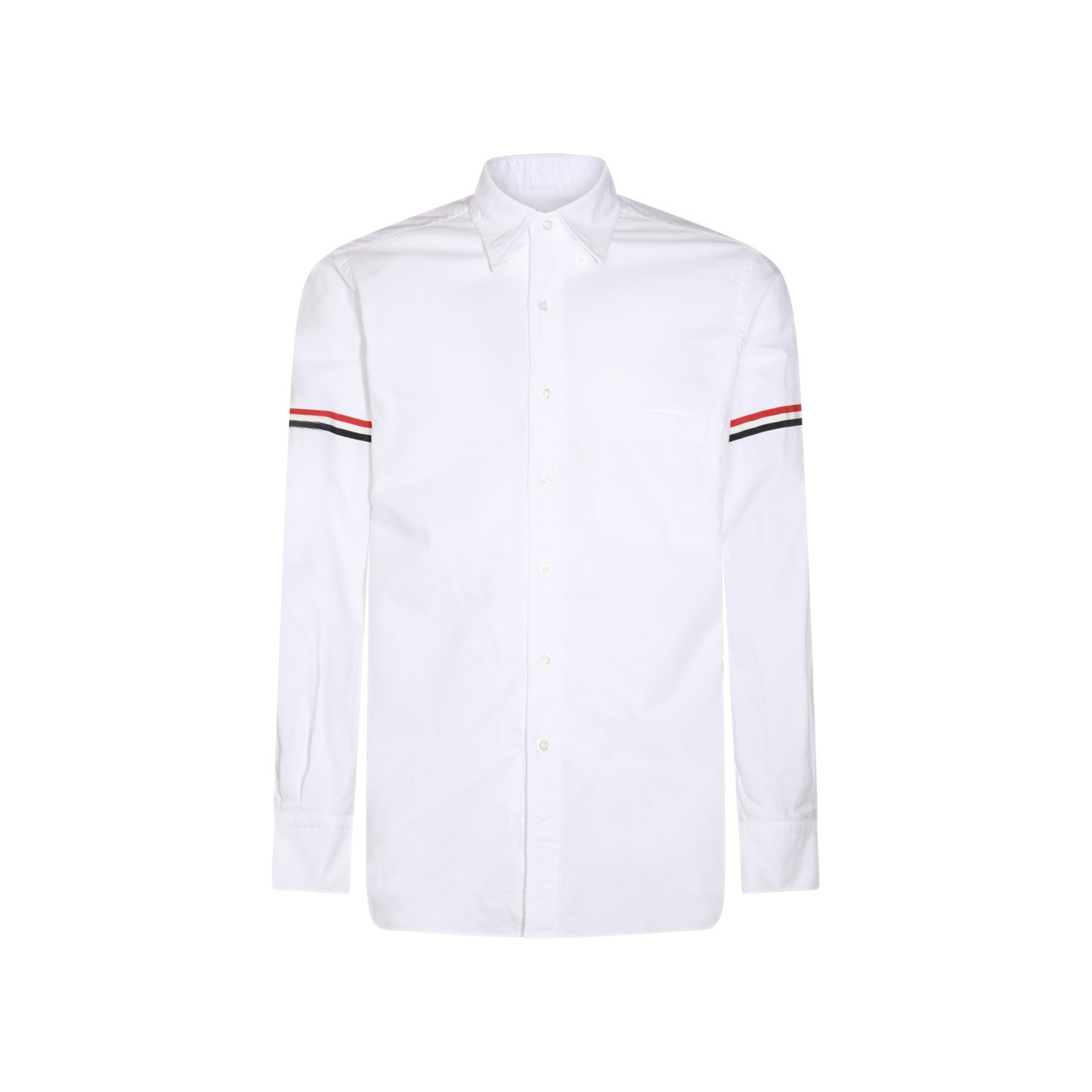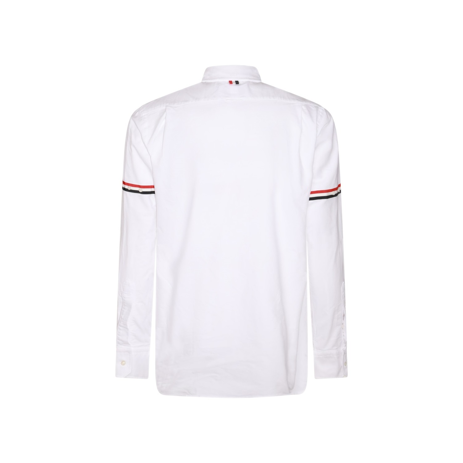 White cotton shirt from Thom Browne featuring shirt collar, long sleeves, frontal buttoned fastening, red and blue stripes and regular vestibility.