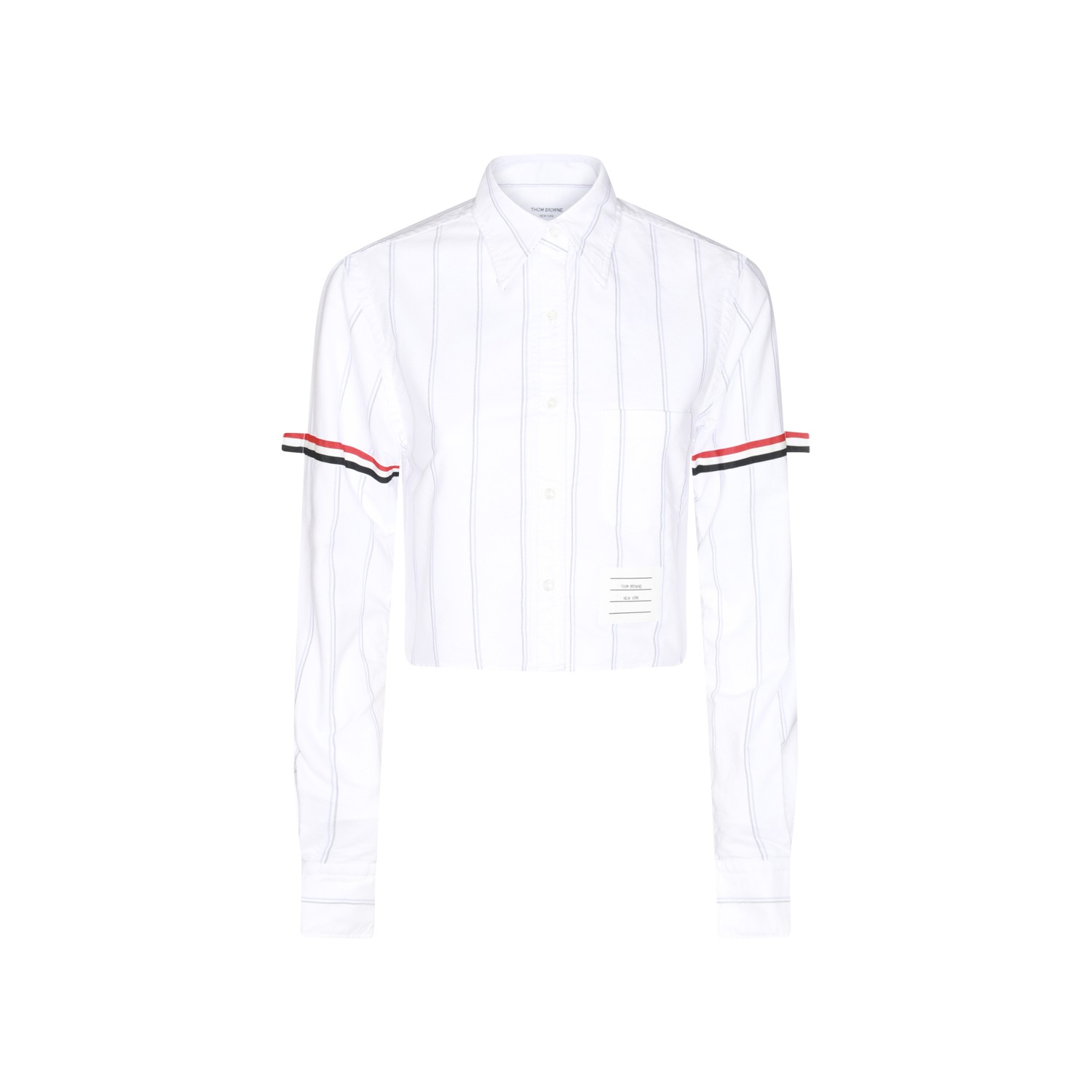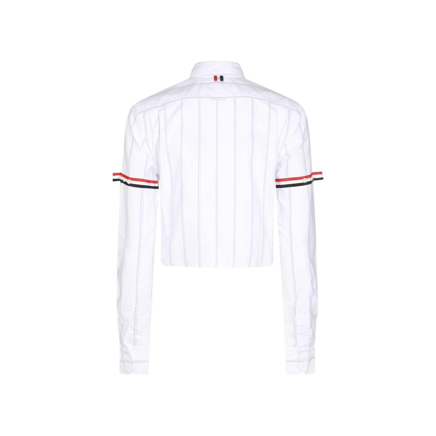 White cotton shirt from Thom Browne featuring long sleeves, buttons fastening, shirt collar, cropped and regular vestibility.