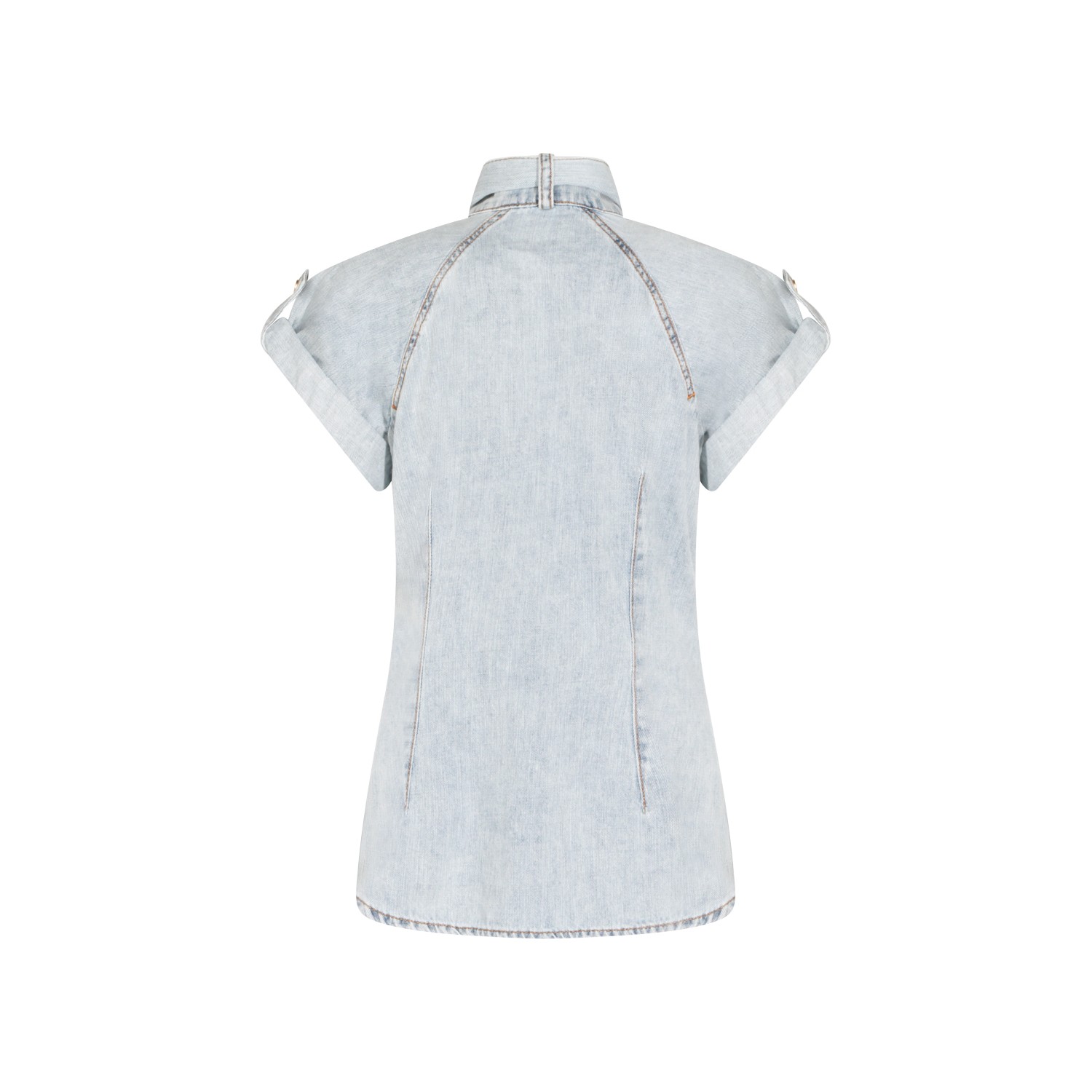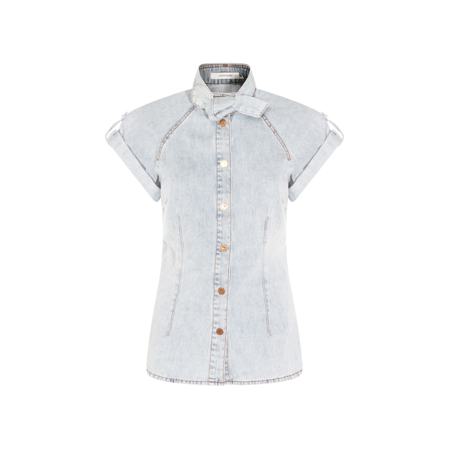 Light blue cotton shirt from Zimmermann featuring high collar, buttons fastening, sleeveless and regular vestibility.