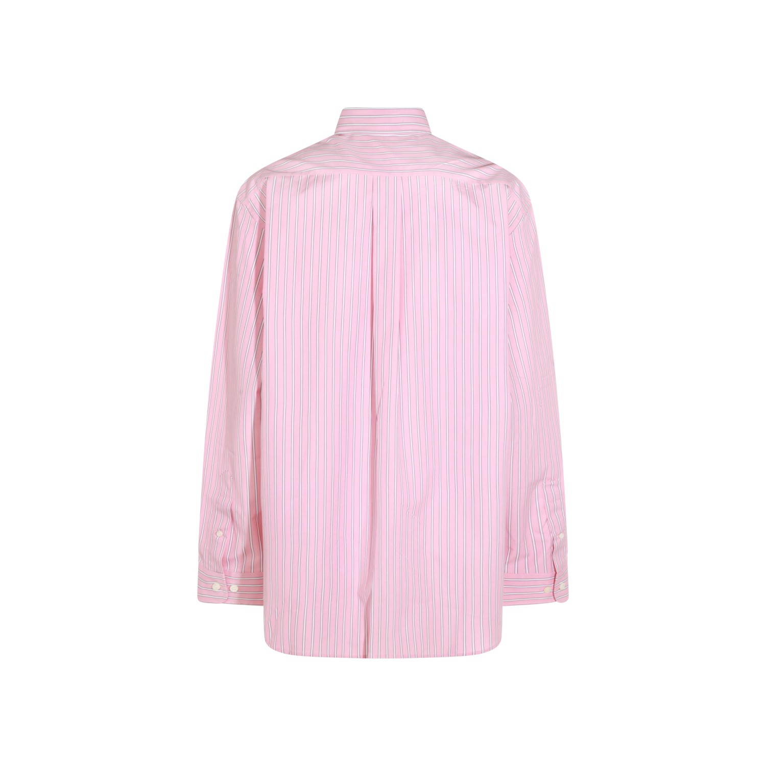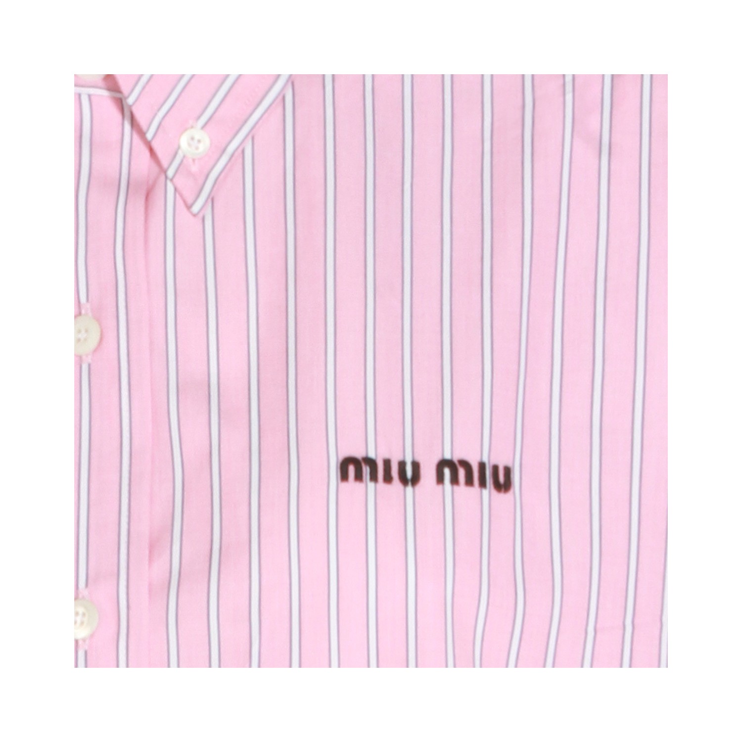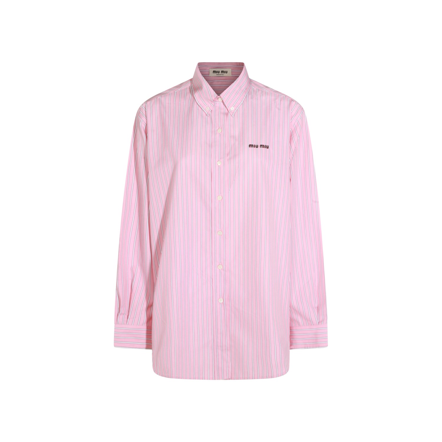 Pink cotton shirt from Miu Miu featuring regular neck, buttons fastening, long sleeves, frontal logo and oversize vestibility.