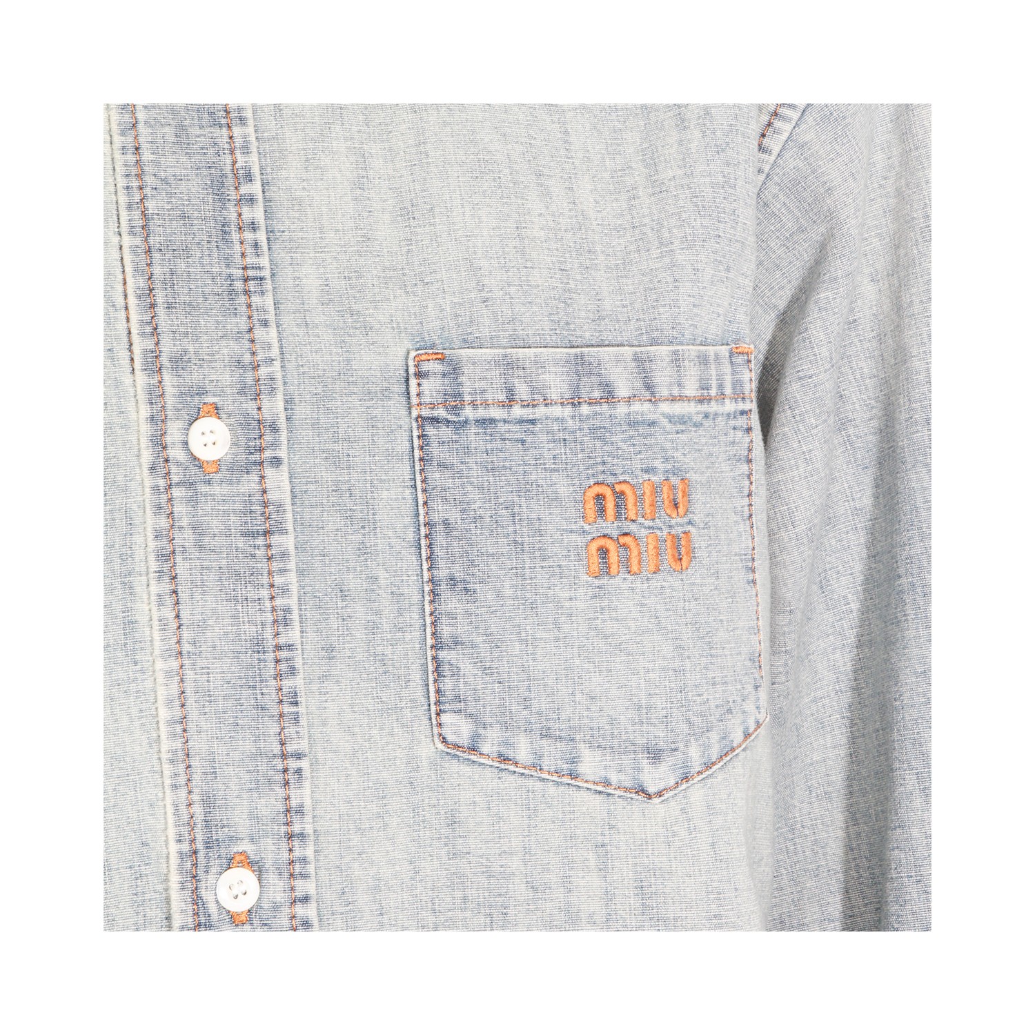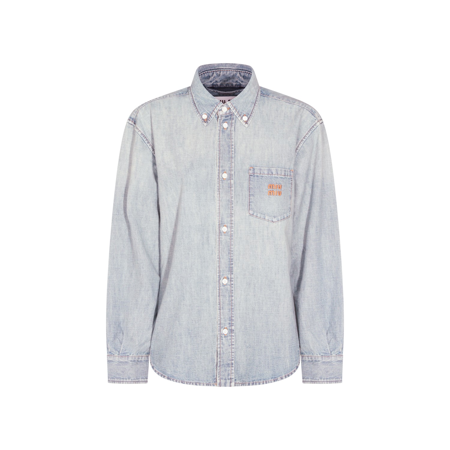 Light blue cotton shirt from Miu Miu featuring classic collar, long sleeves, buttons fastening, frontal pocket with logo detail and regular vestibility.