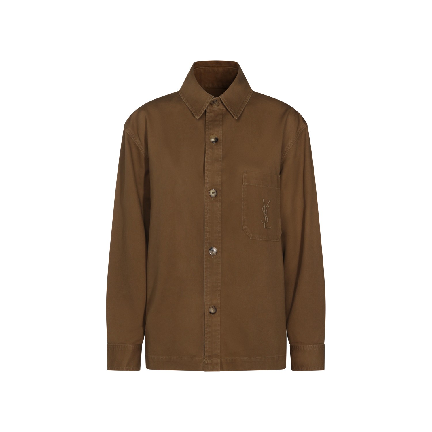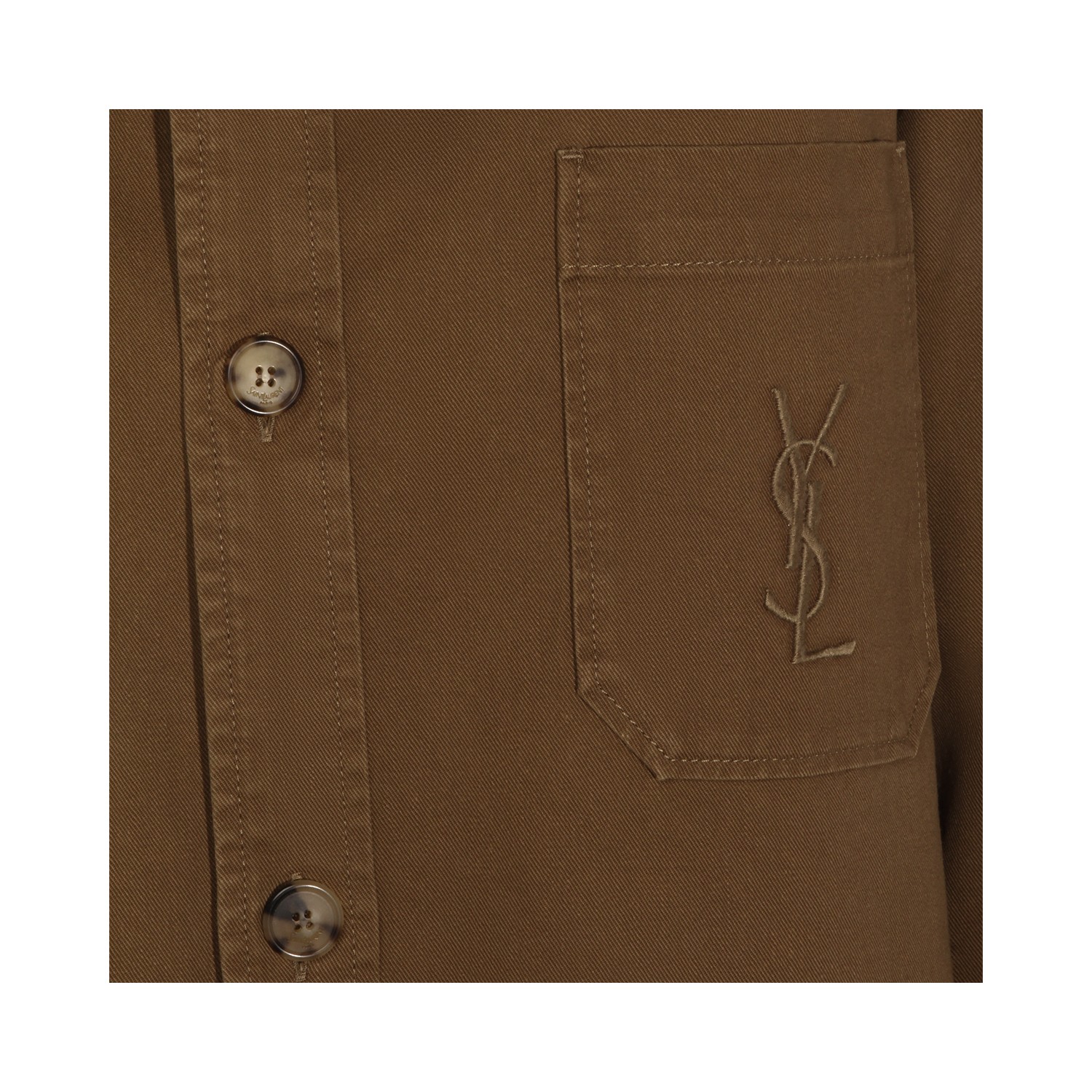 Brown cotton shirt from Saint Laurent featuring regular collar, buttons fastening, long sleeves, frontal pocket, stitched logo and regular vestibility.
