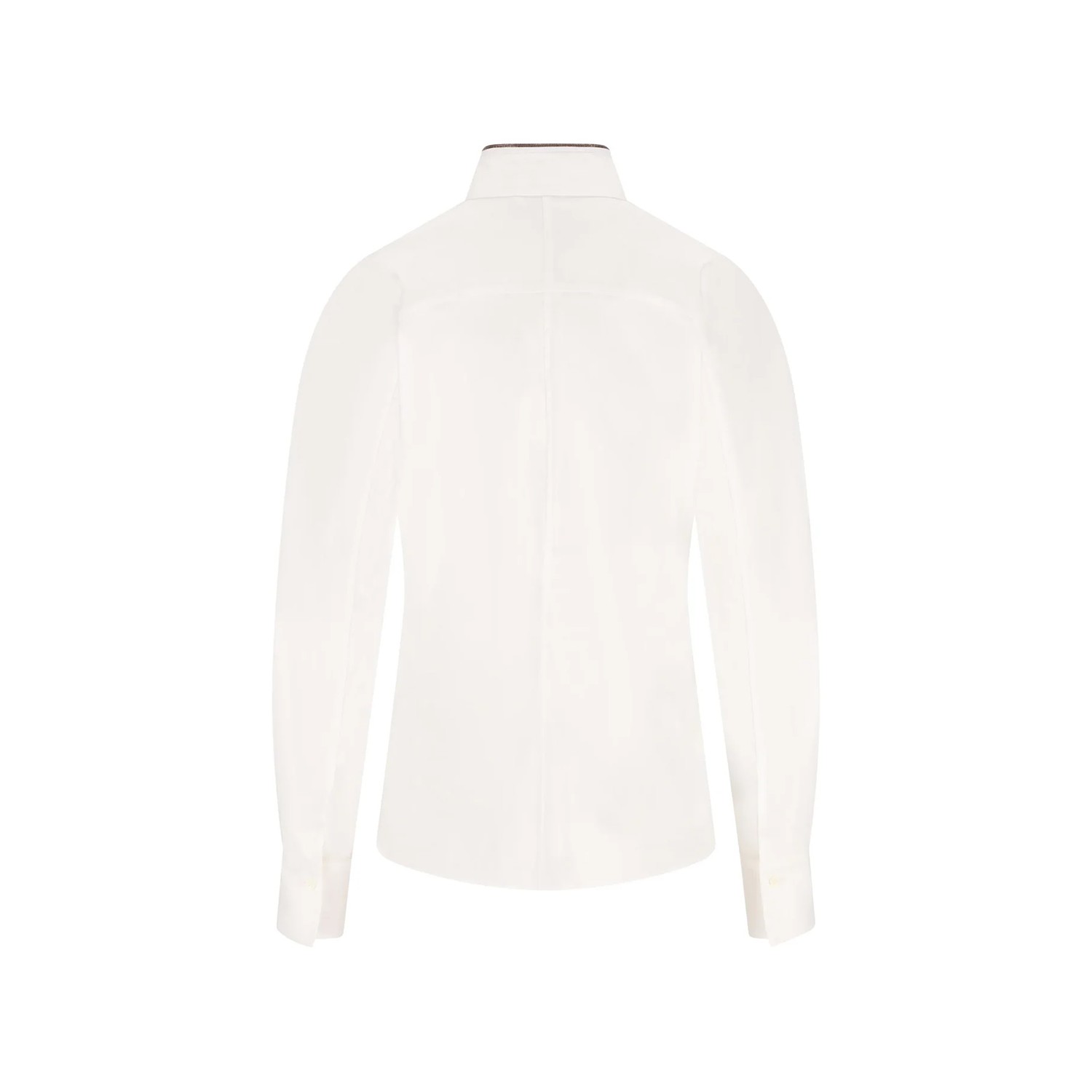 White cotton shirt from Brunello Cucinelli featuring high neck, buttons fastening, long sleeves and regular vestibility.