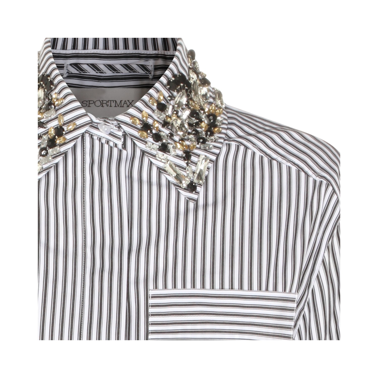 Black and white cotton shirt from Sportmax featuring long sleeves, shirt collar, pocket and all over stripes.