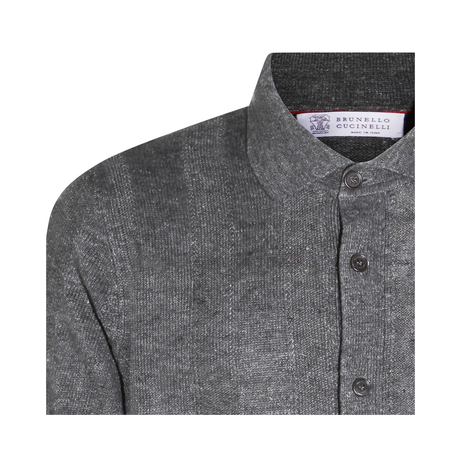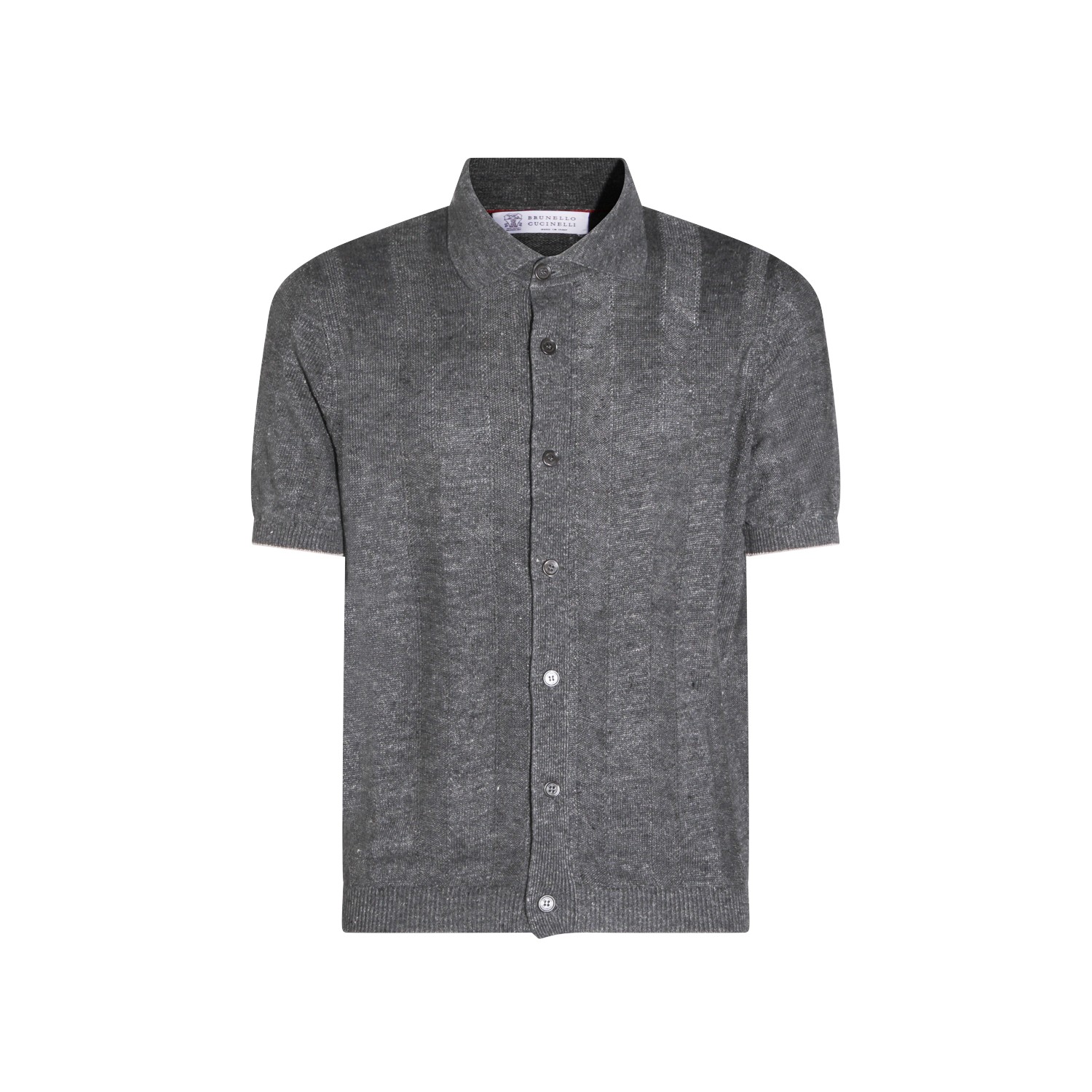 Grey linen blend shirt from Brunello Cucinelli featuring regular collar, buttons fastening, short sleeves and regular vestibility.