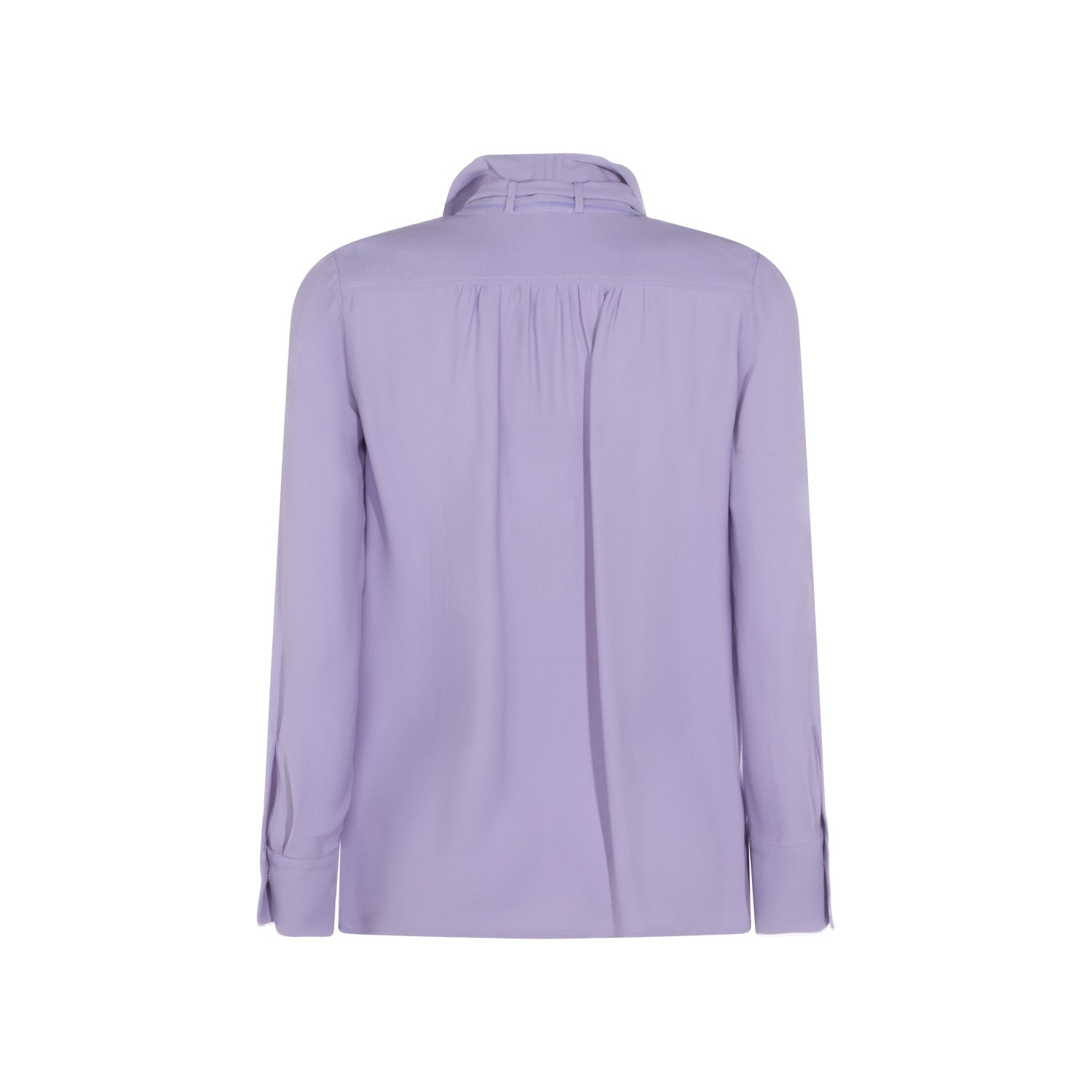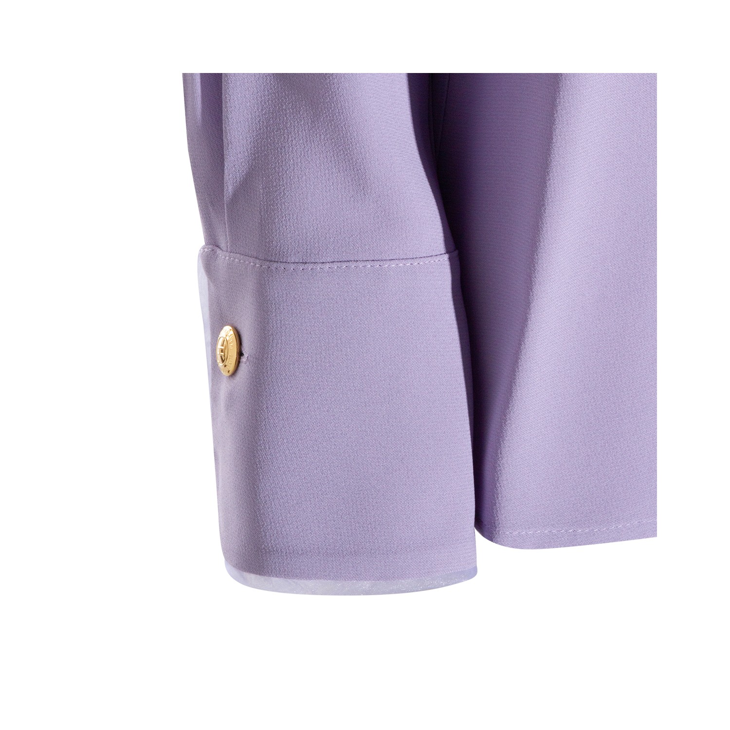 Lilac viscose shirt from Elisabetta Franchi featuring shirt collar, V-neck, sash framing the neck, gold metal plaques, long sleeves and regular vestibility.