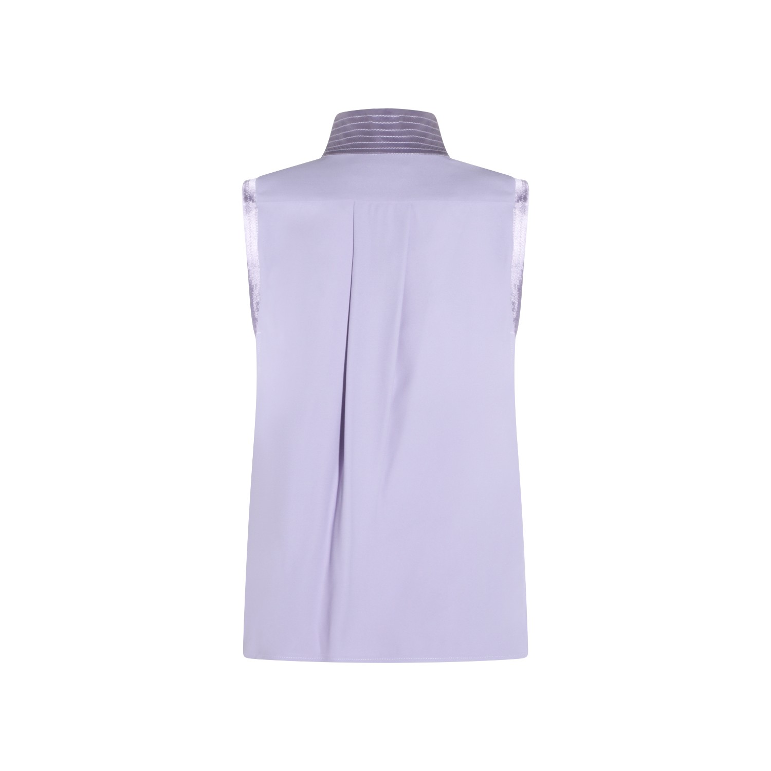 Lilac viscose shirt from Elisabetta Franchi featuring high collar, v neckline, sleeveless and regular fit.