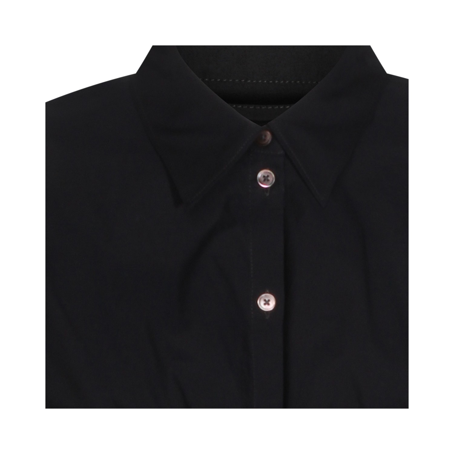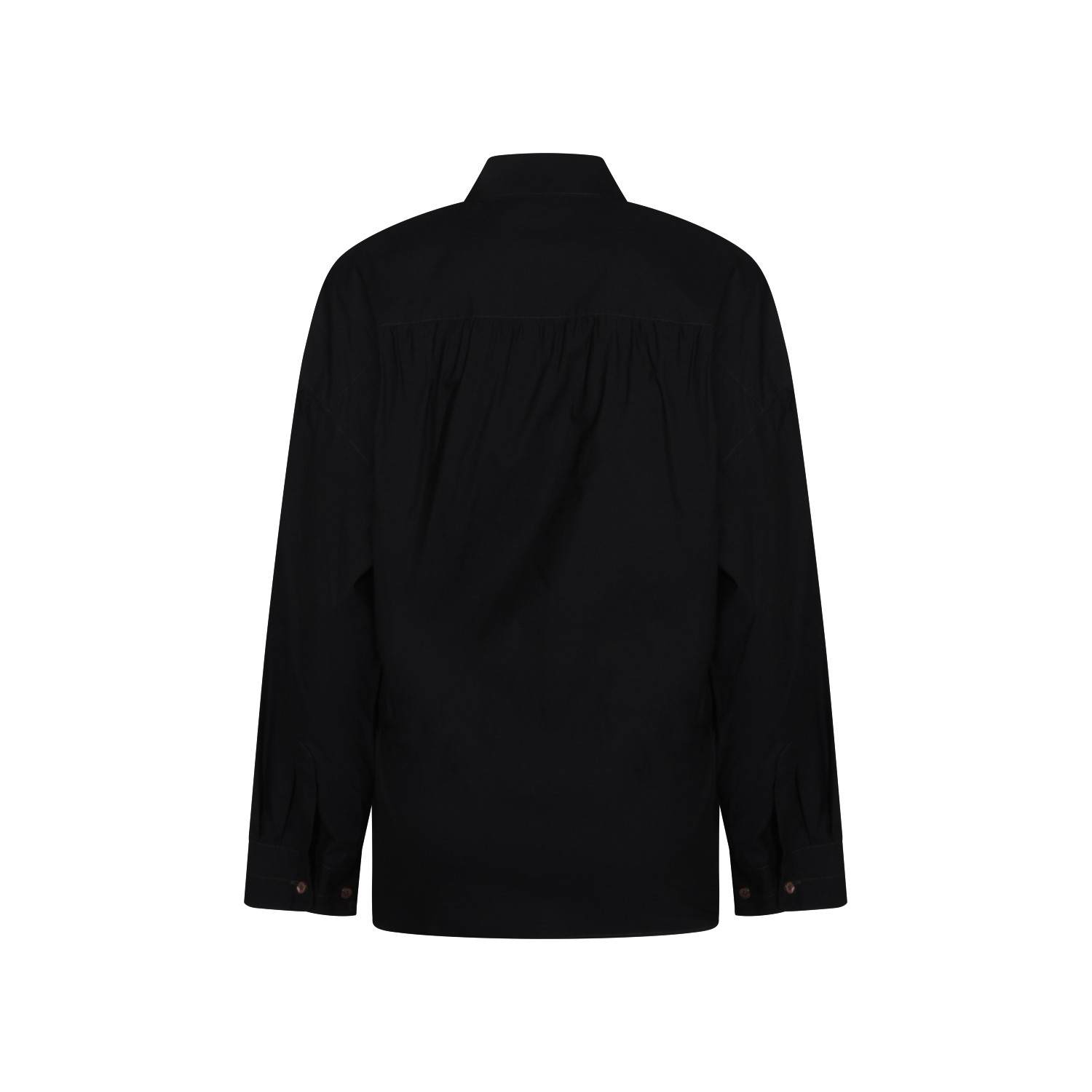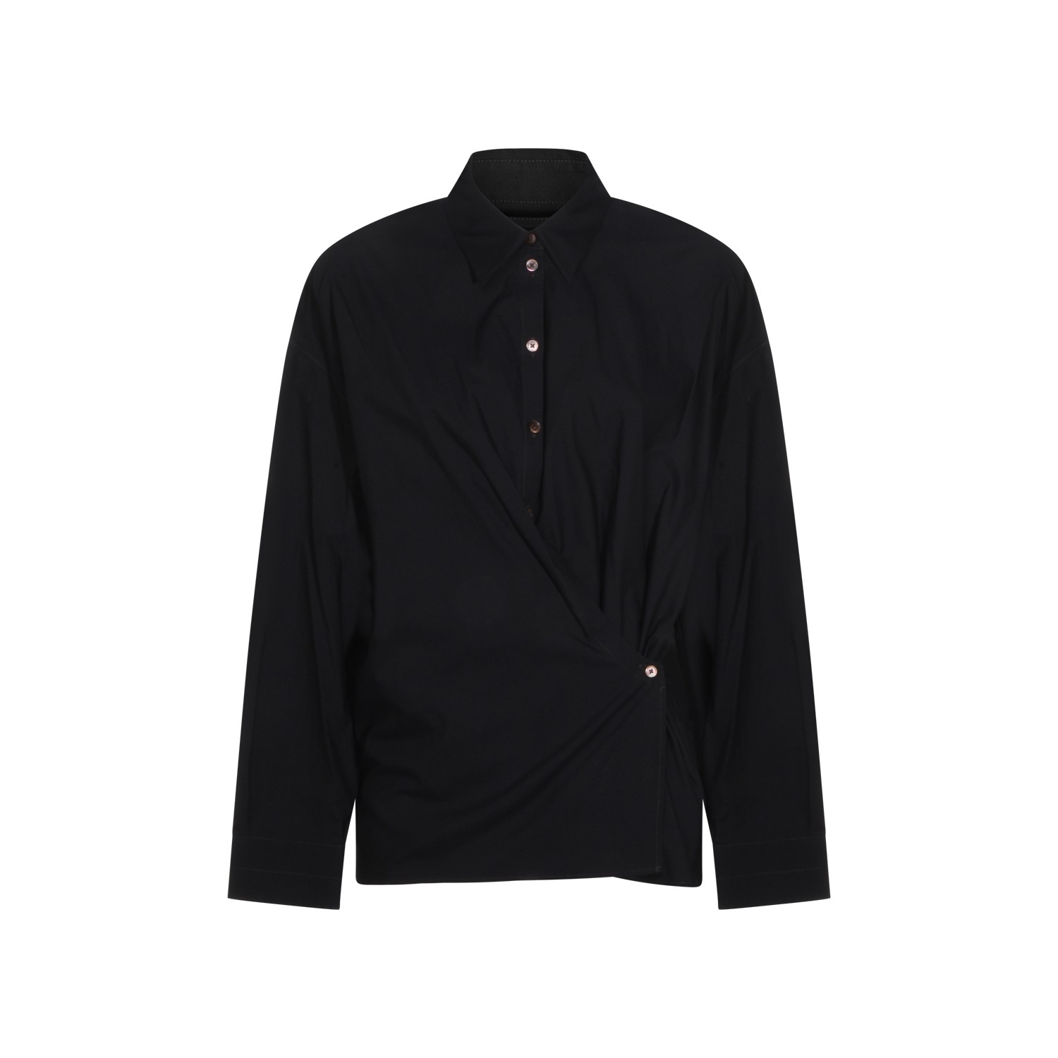 Black silk shirt from Lemaire featuring classic shirt collar, long sleeves, buttoned collar, draped detail and relaxed fit.