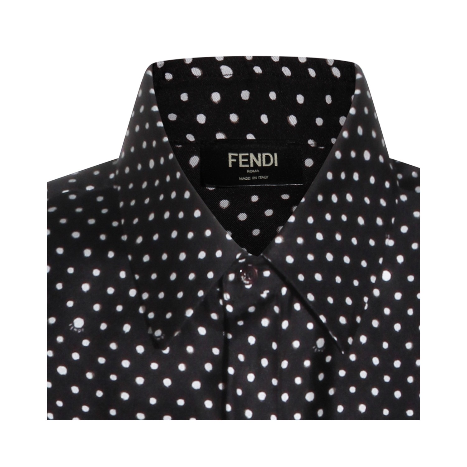 Black and white silk shirt from Fendi featuring shirt collar, long sleeves, frontal fastening and regular fit.