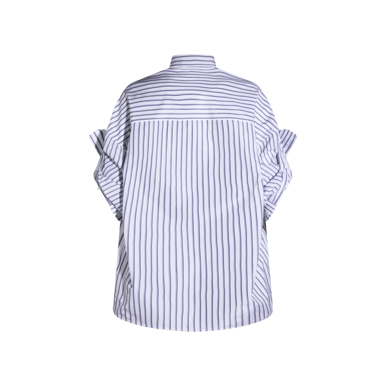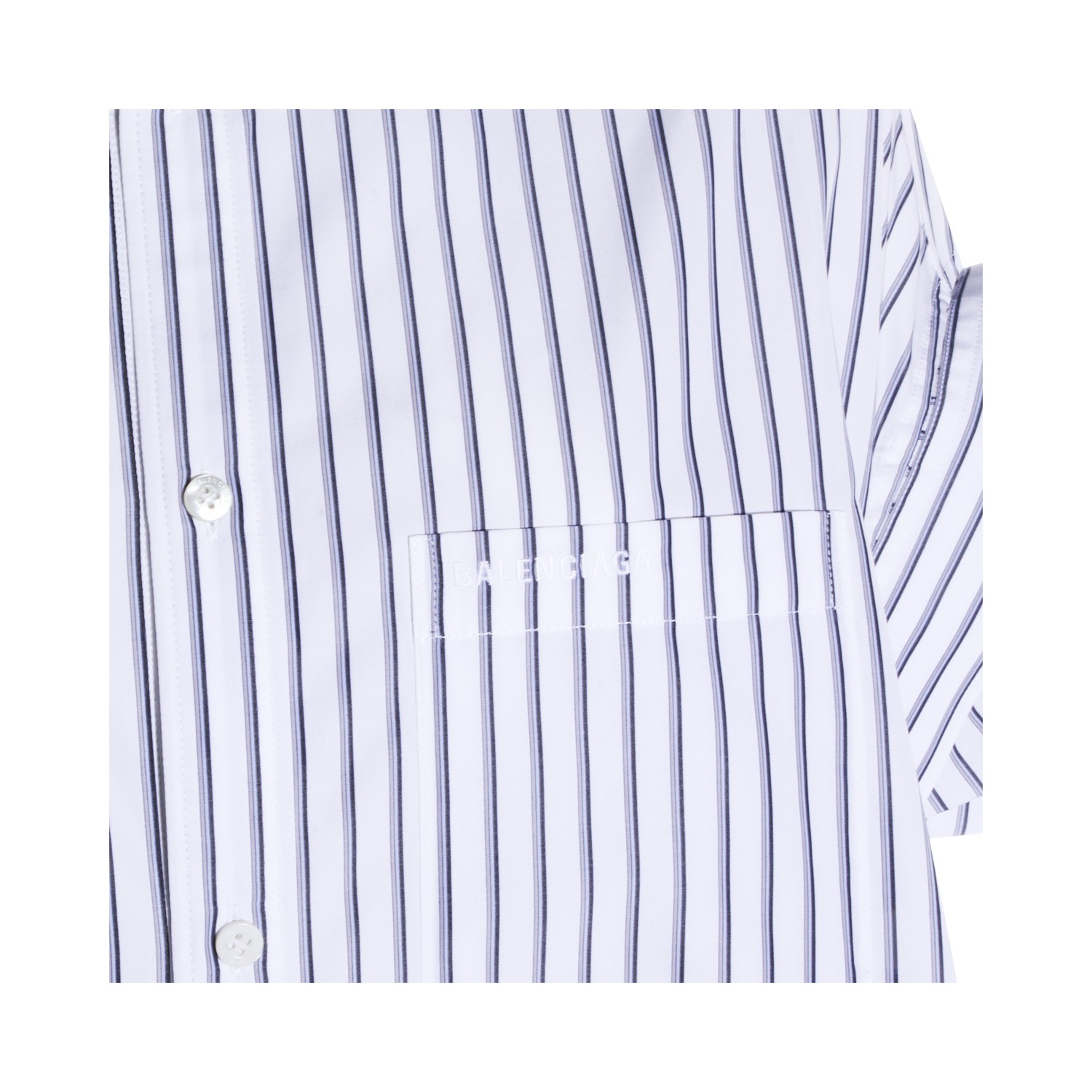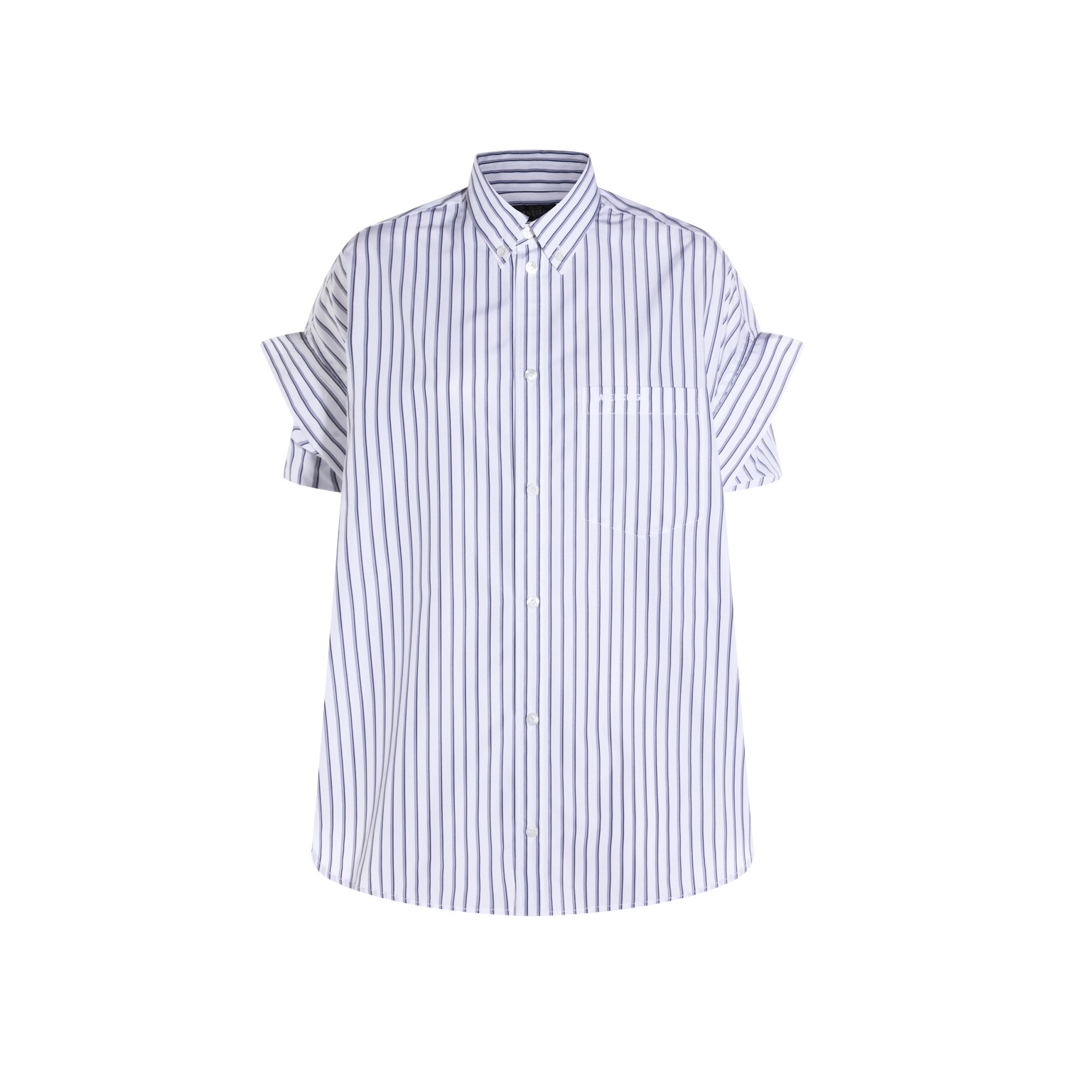 White and blue cotton shirt from Balenciaga featuring button-down collar, cuffed sleeves, frontal fastening and soft vestibility.