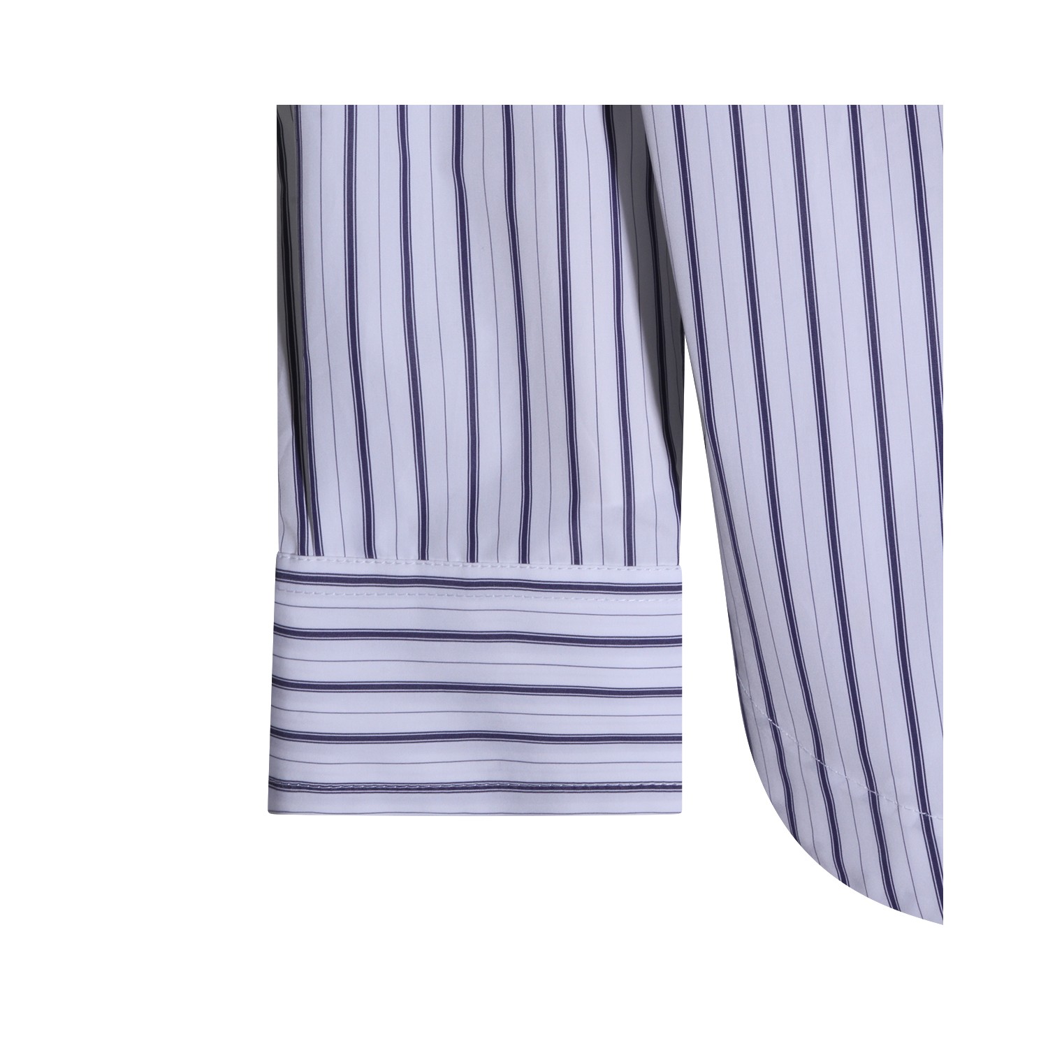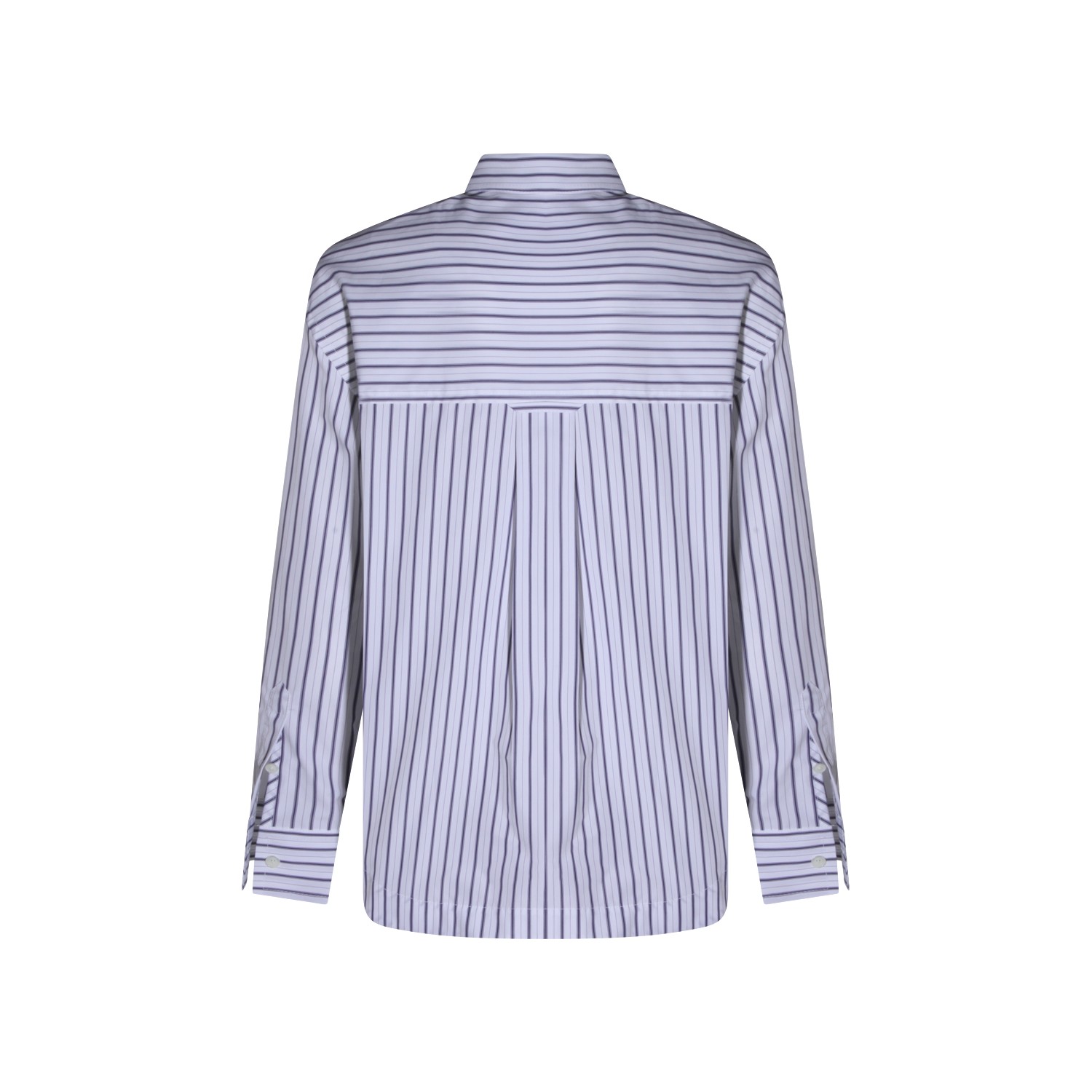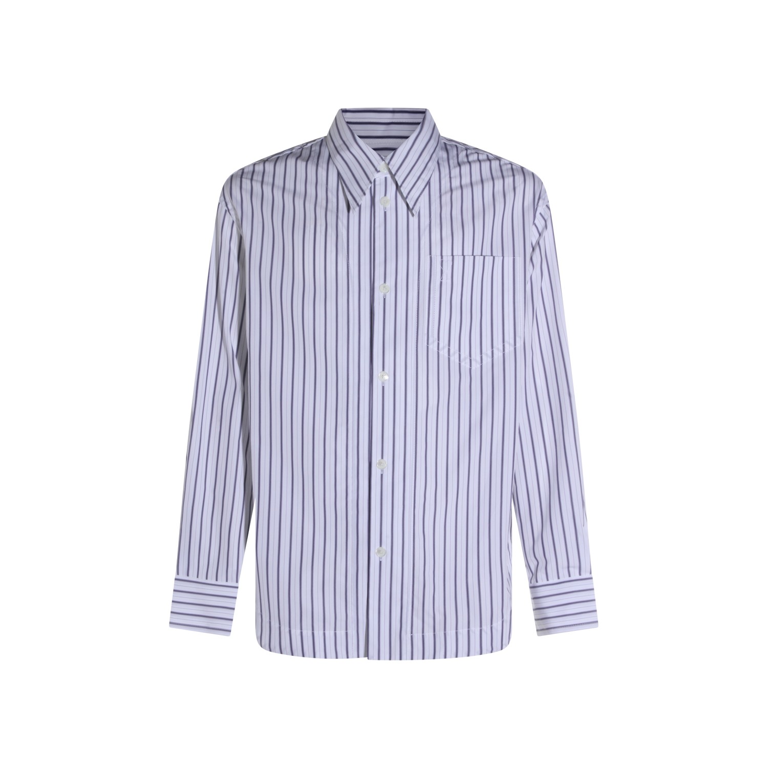 White and blue cotton shirt from Ami Paris featuring shirt collar, long sleeves, striped motif, buttons fastening and regular fit.
