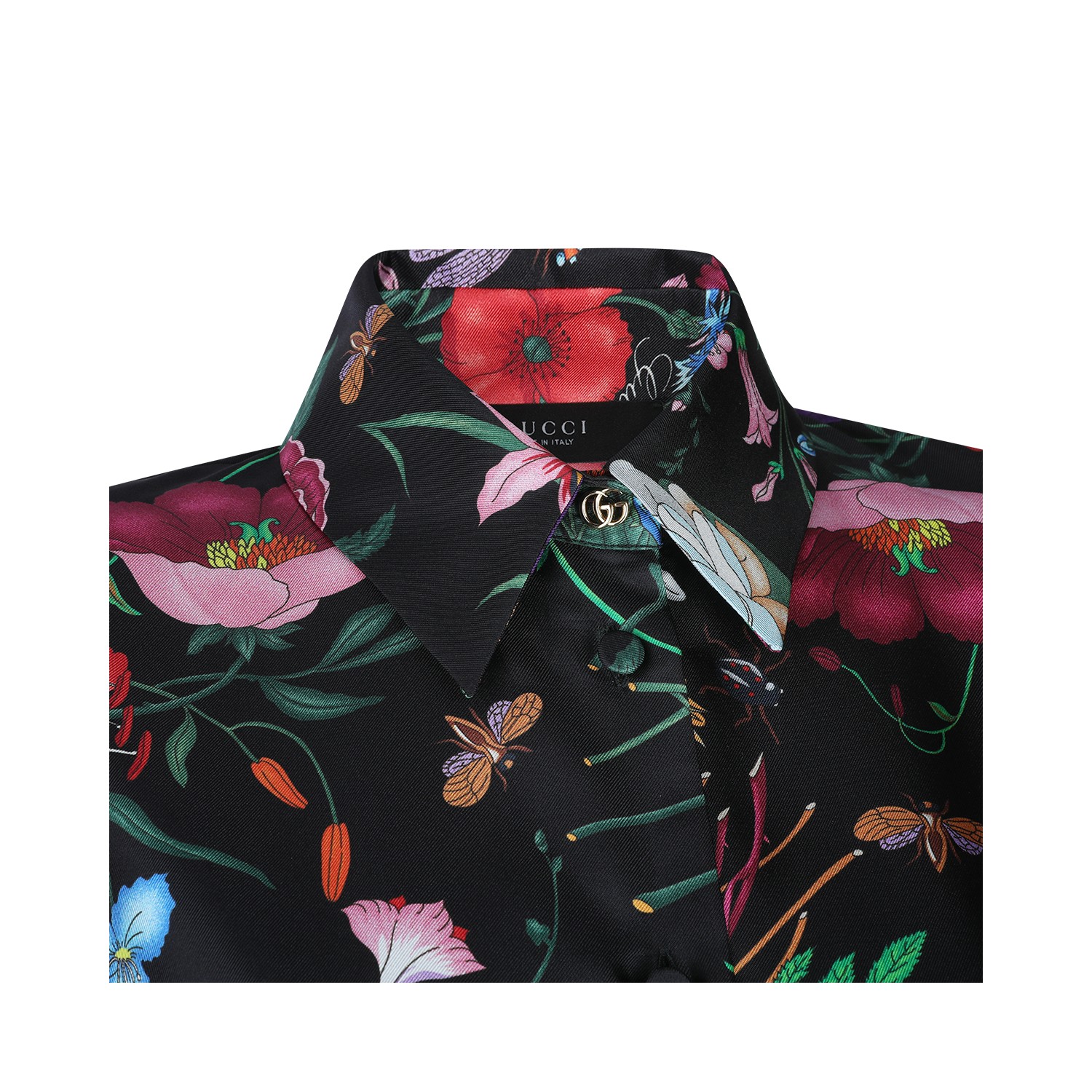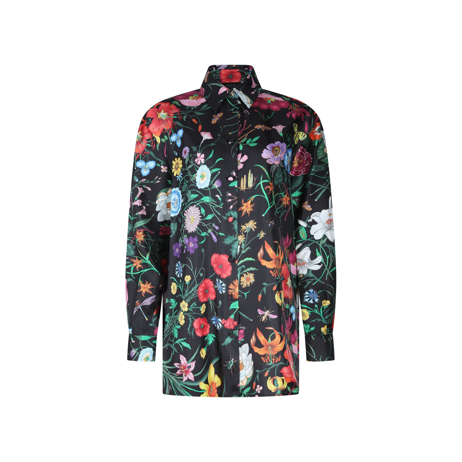 Multicolor silk shirt from Gucci featuring all-over floral motif, classic shirt collar, long sleeves, buttons fastening and regular fit.