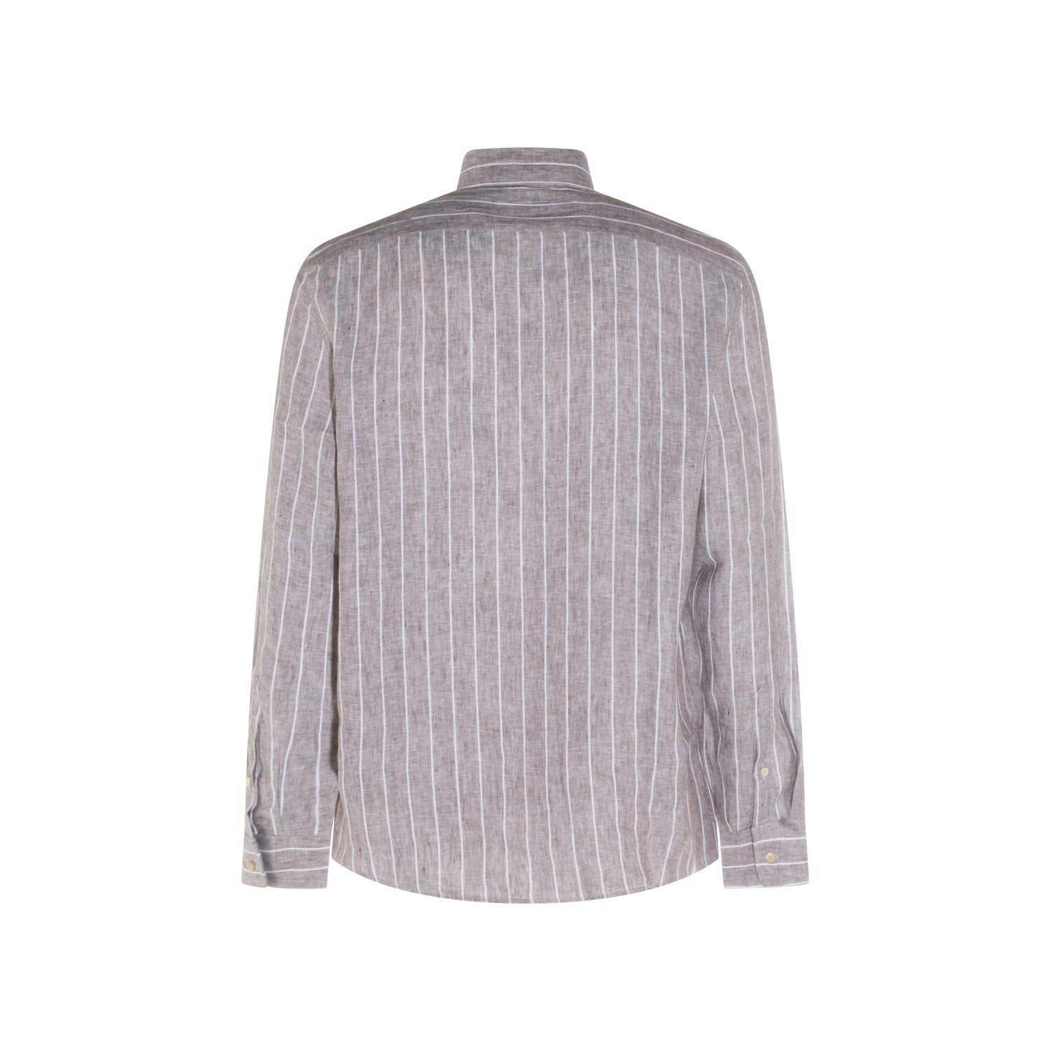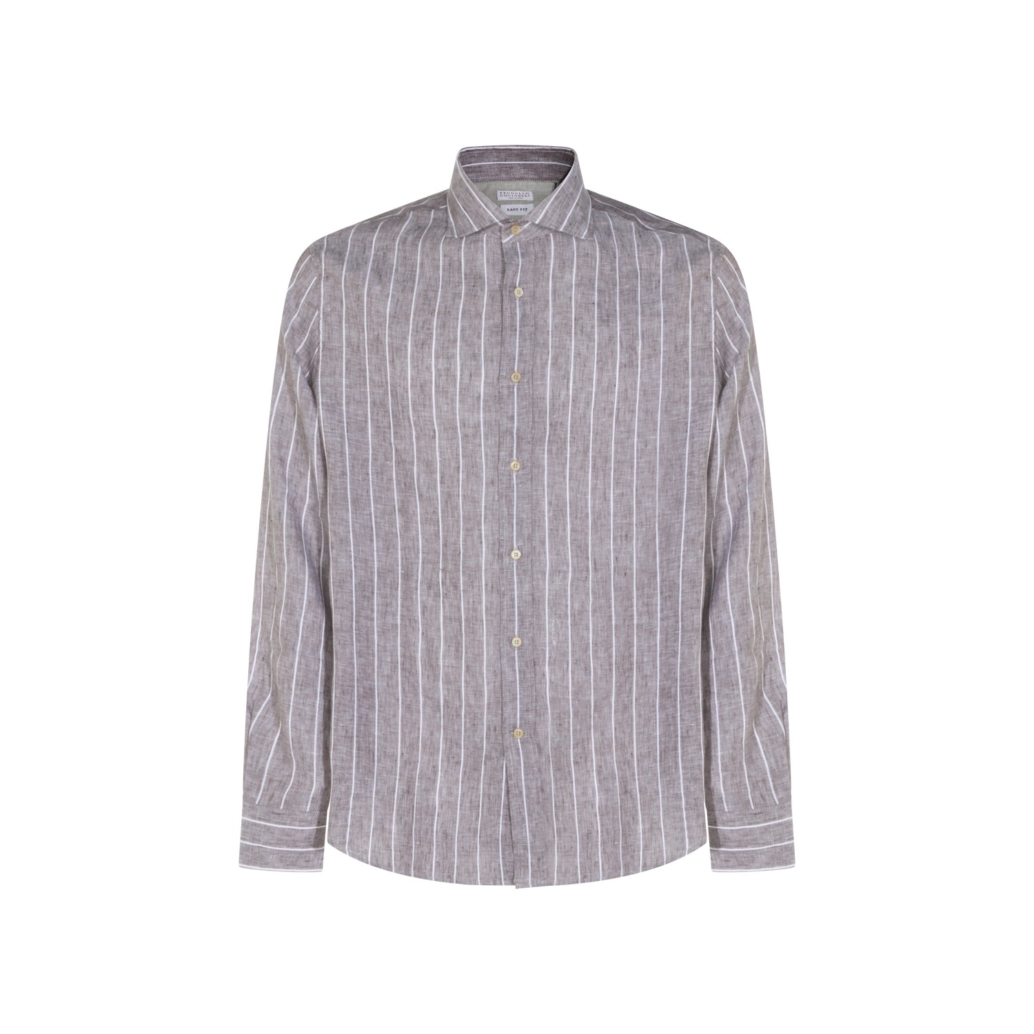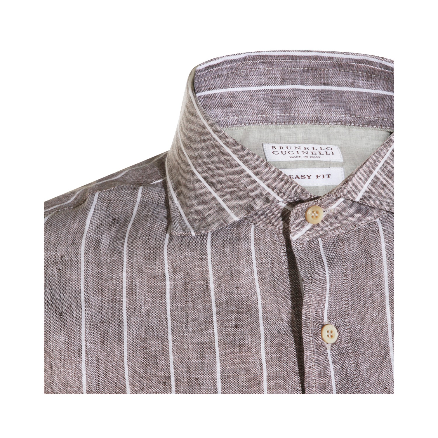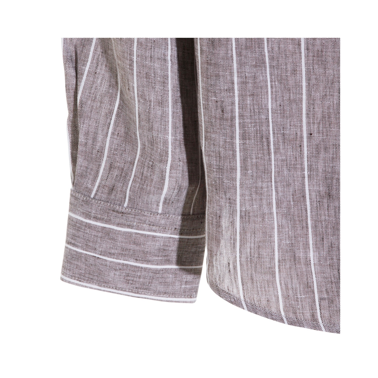 Brown linen shirt from Brunello Cucinelli featuring classic shirt collar, long sleeves, buttons fastening, striped motif and regular vestibility.