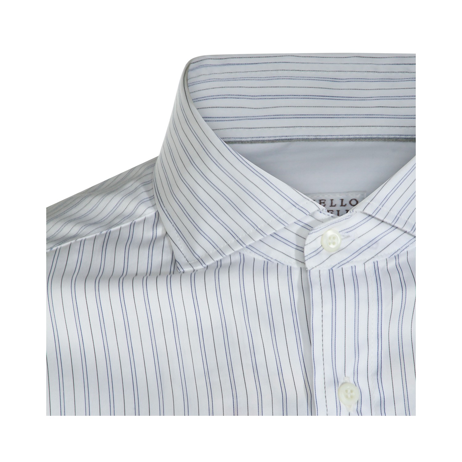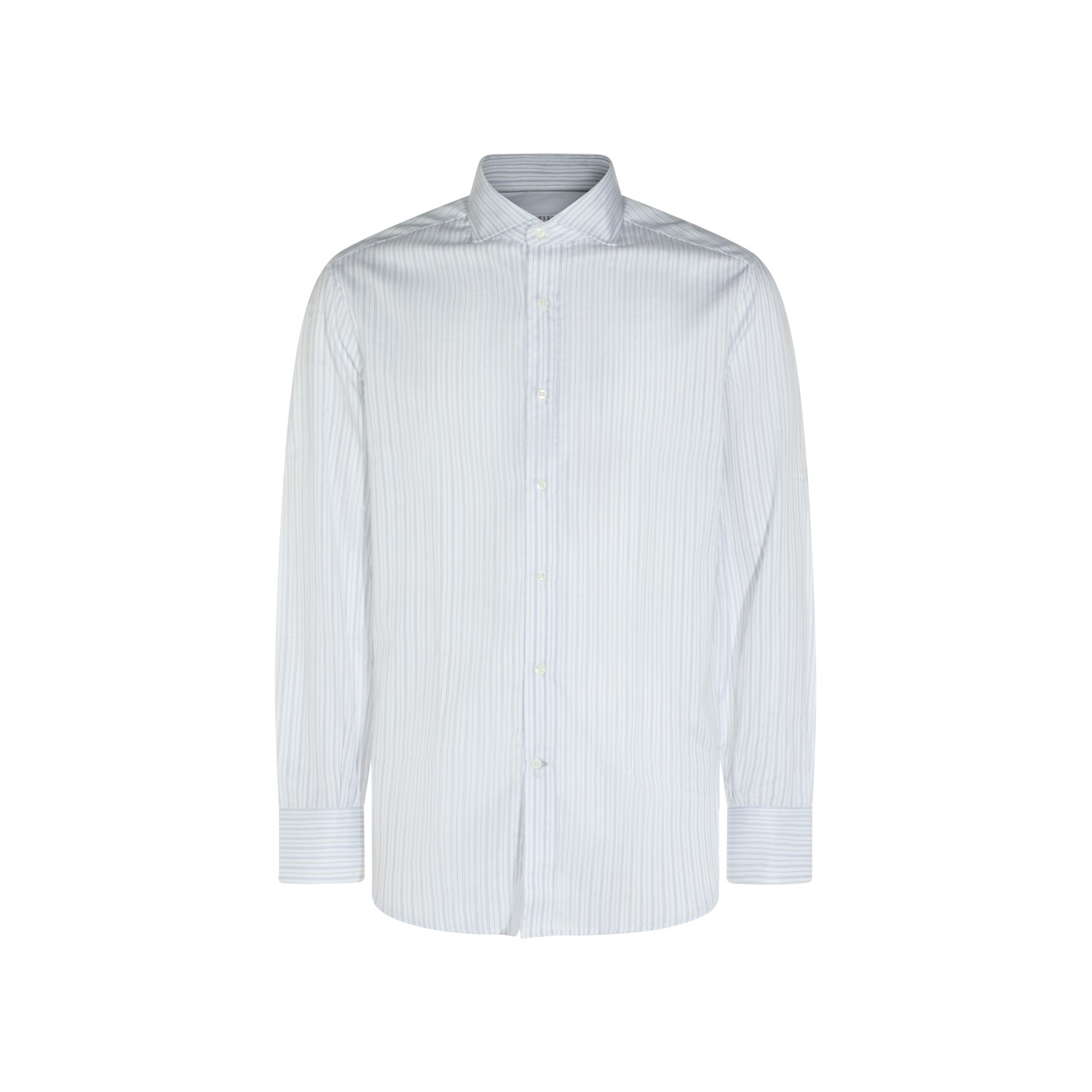 White and light blue cotton shirt from Brunello Cucinelli featuring shirt collar, long sleeves, buttons fastening, striped motif and regular vestibility.