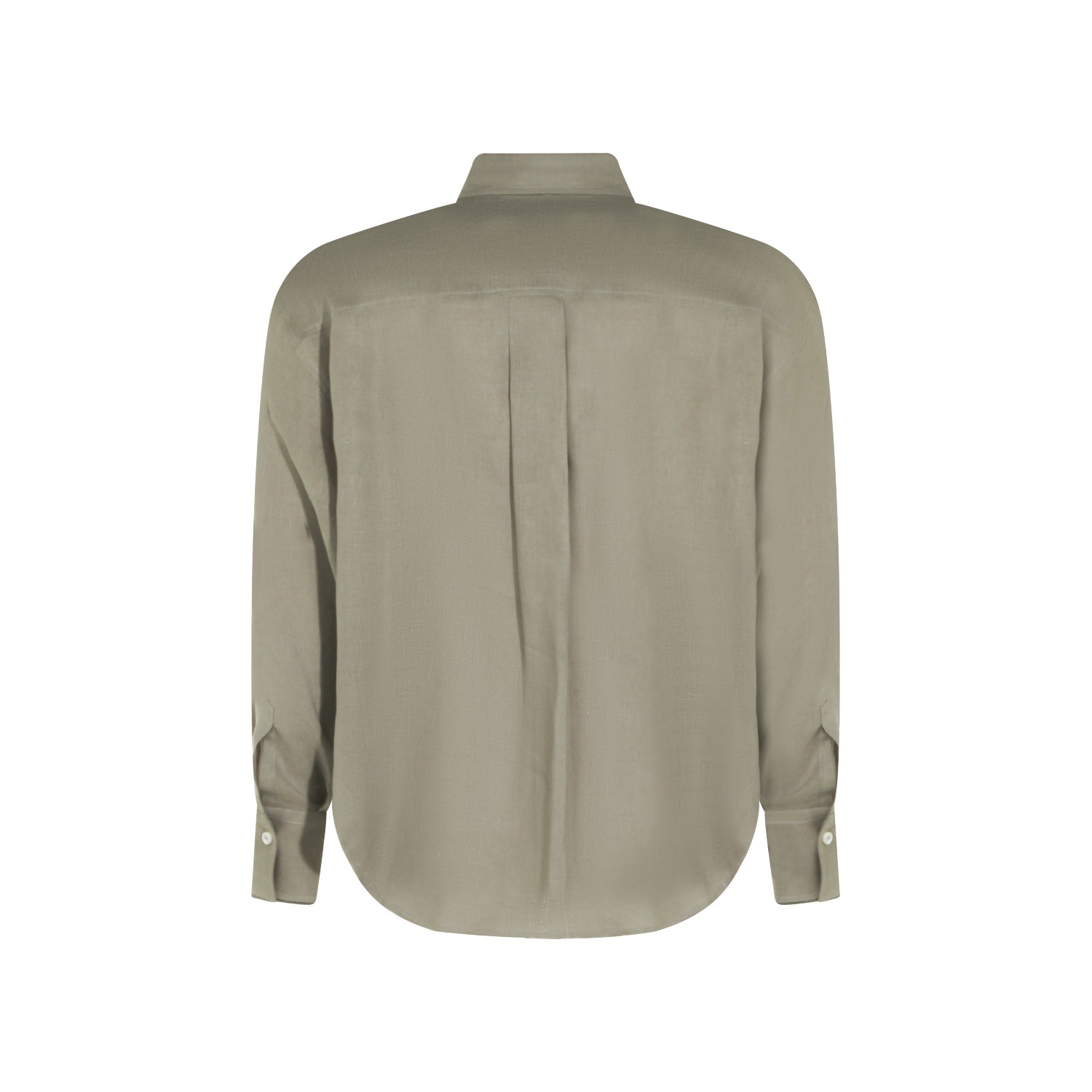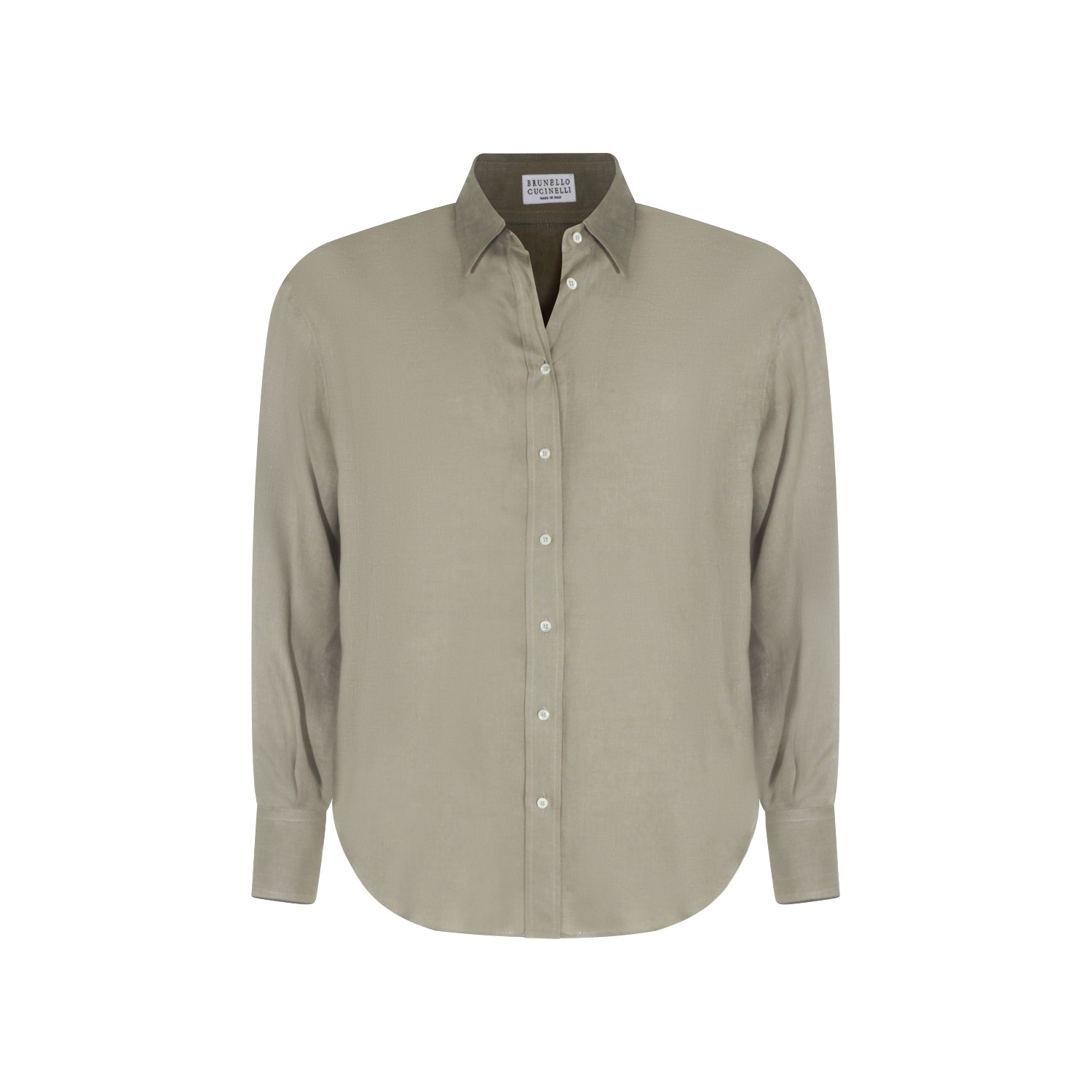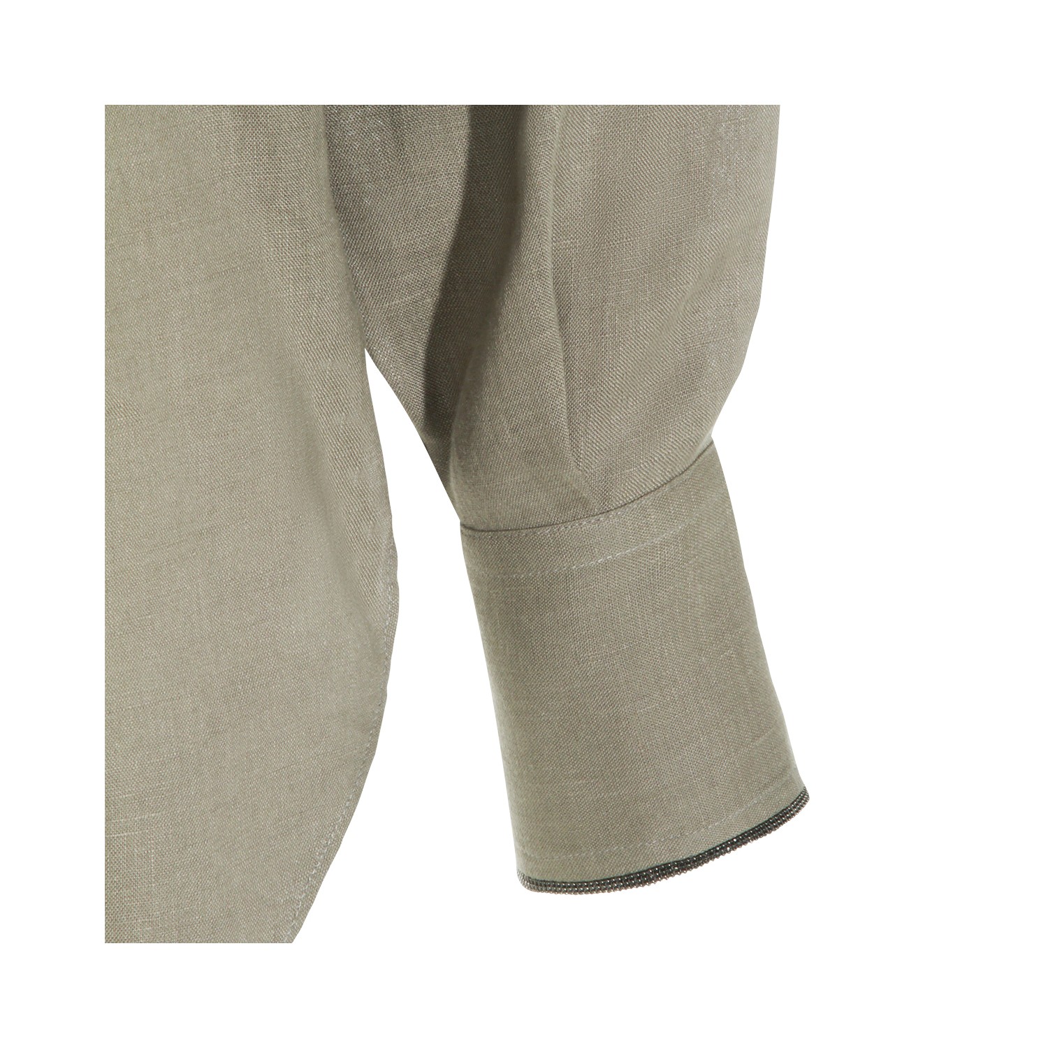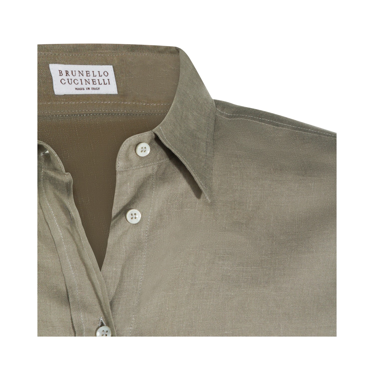 Green linen shirt from Brunello Cucinelli featuring shirt collar, long sleeves, buttons fastening, buttoned cuffs, curved hem and regular fit.