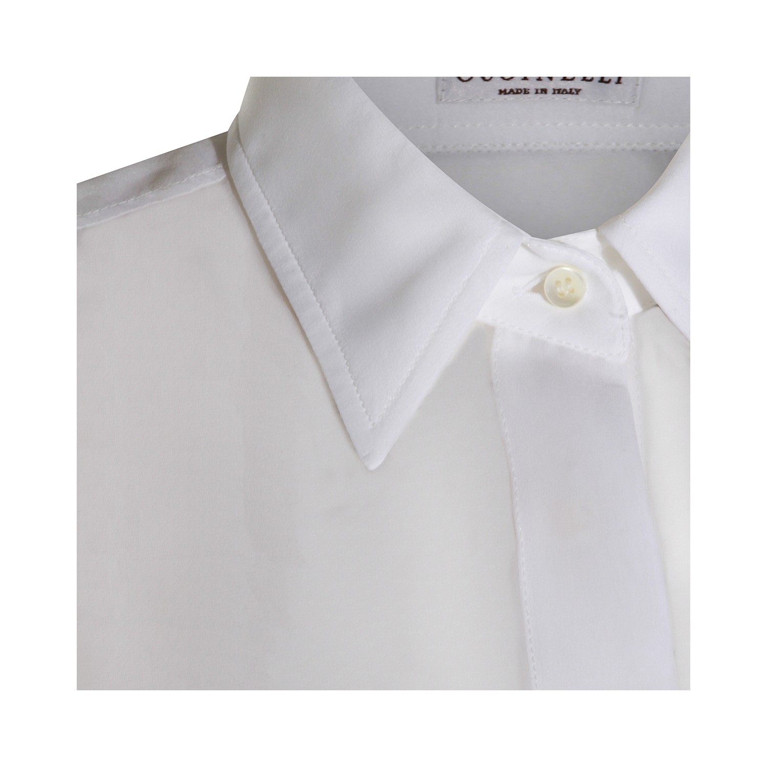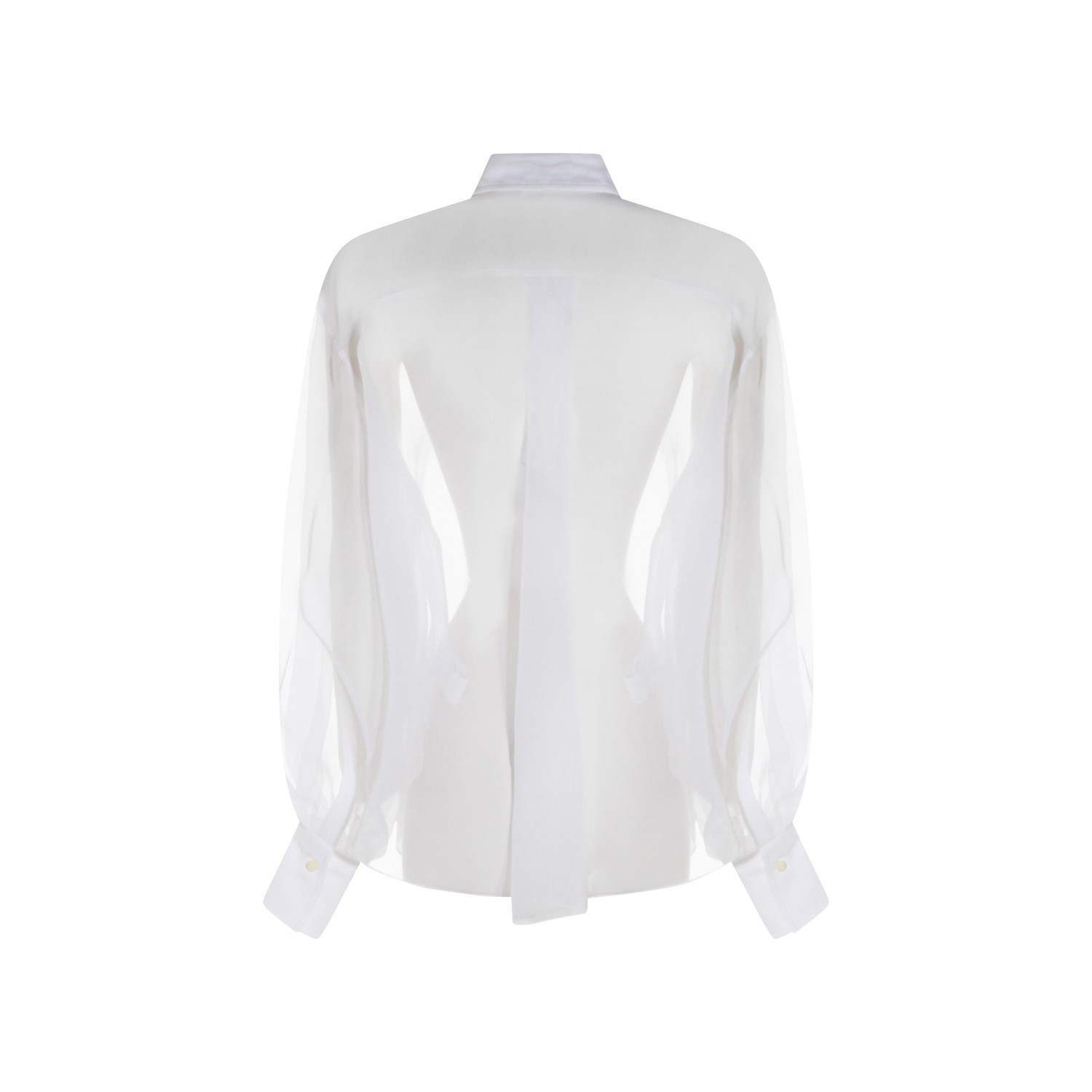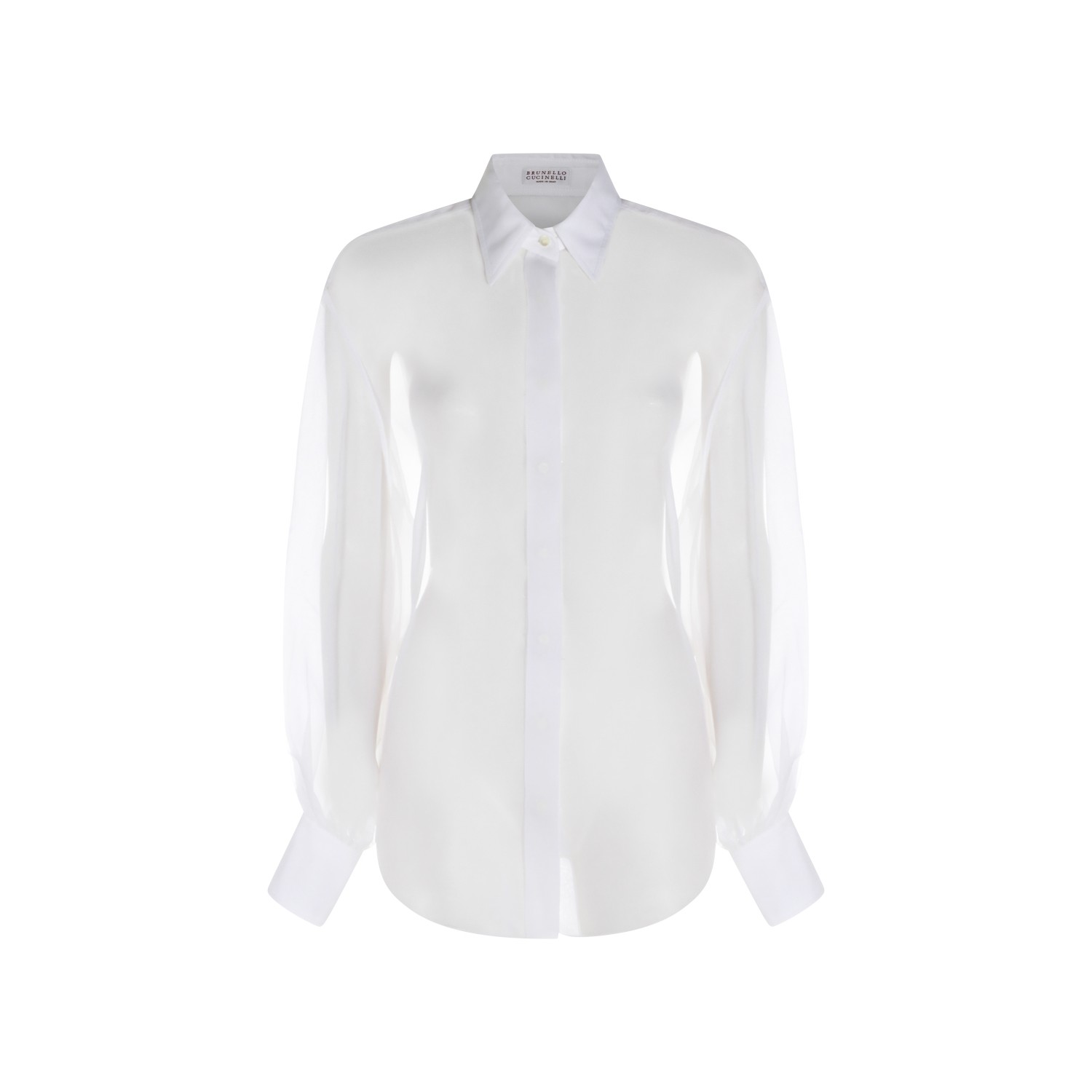 White silk shirt from Brunello Cucinelli featuring shirt collar, long sleeves, trasparence, frontal fastening, buttoned cuffs and regular fit.