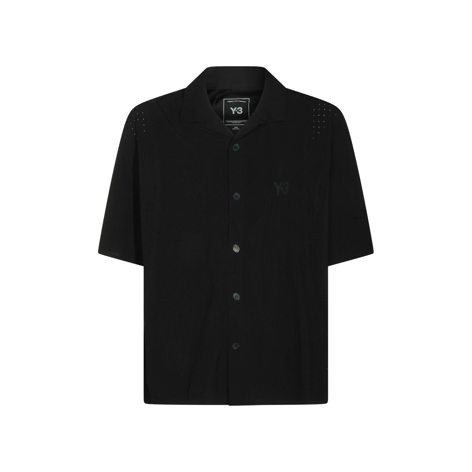 Black shirt from Adidas Y-3 featuring shirt collar, shrrt sleeves, buttons fastening and regular fit.