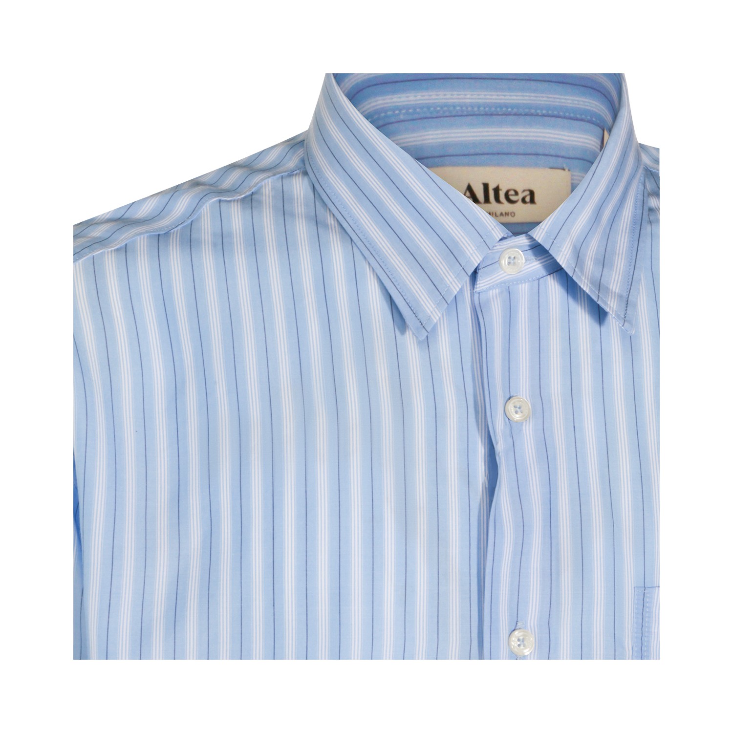 Light blue shirt from Altea featuring classic shirt collar, long sleeves, striped motif, buttons fastening, chest pocket, buttoned cuffs and regular vestibility.