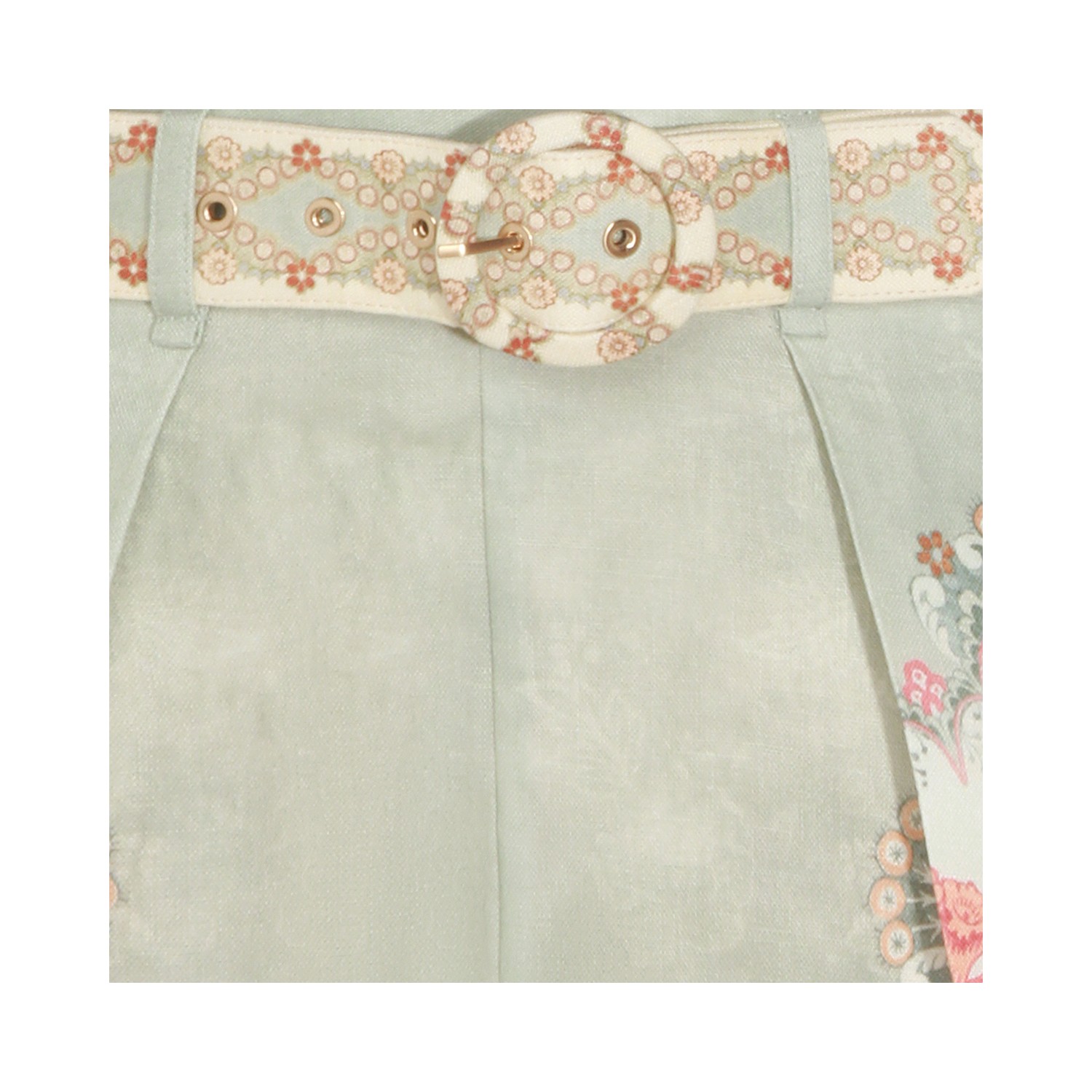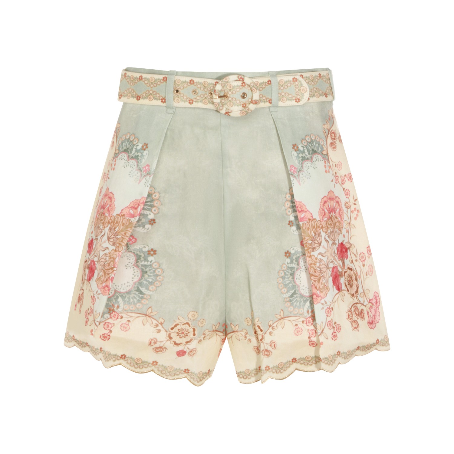 Floral linen shorts from Zimmermann featuring high waist, belt loops and coordinated belt.