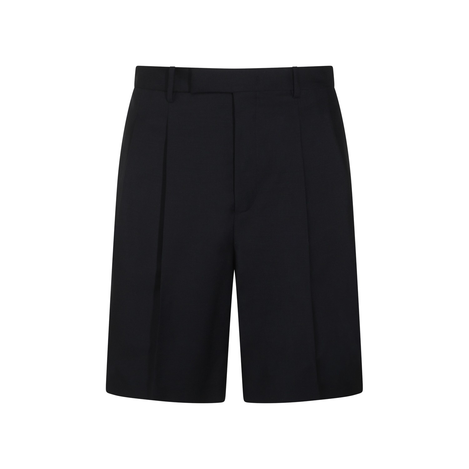 Dark blue wool shorts from Jil Sander featuring high waist, belt loops, zip fastening, pockets and regular vestibility.