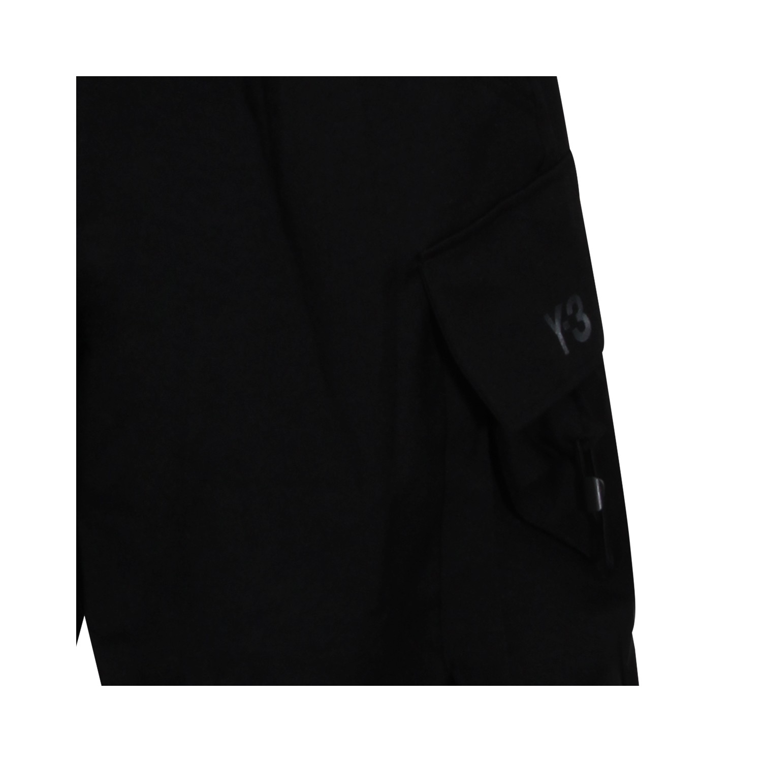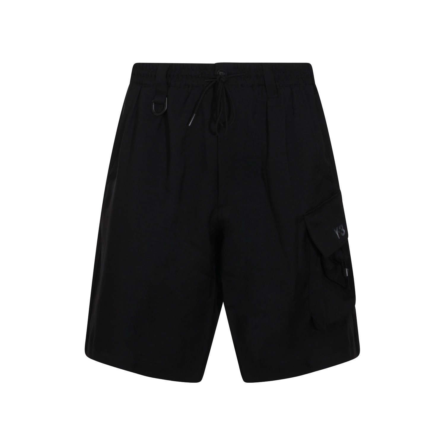 Black tech shorts from Adidas Y3 featuring adjustable closure at waist, mid length, side pockets and regular fit.