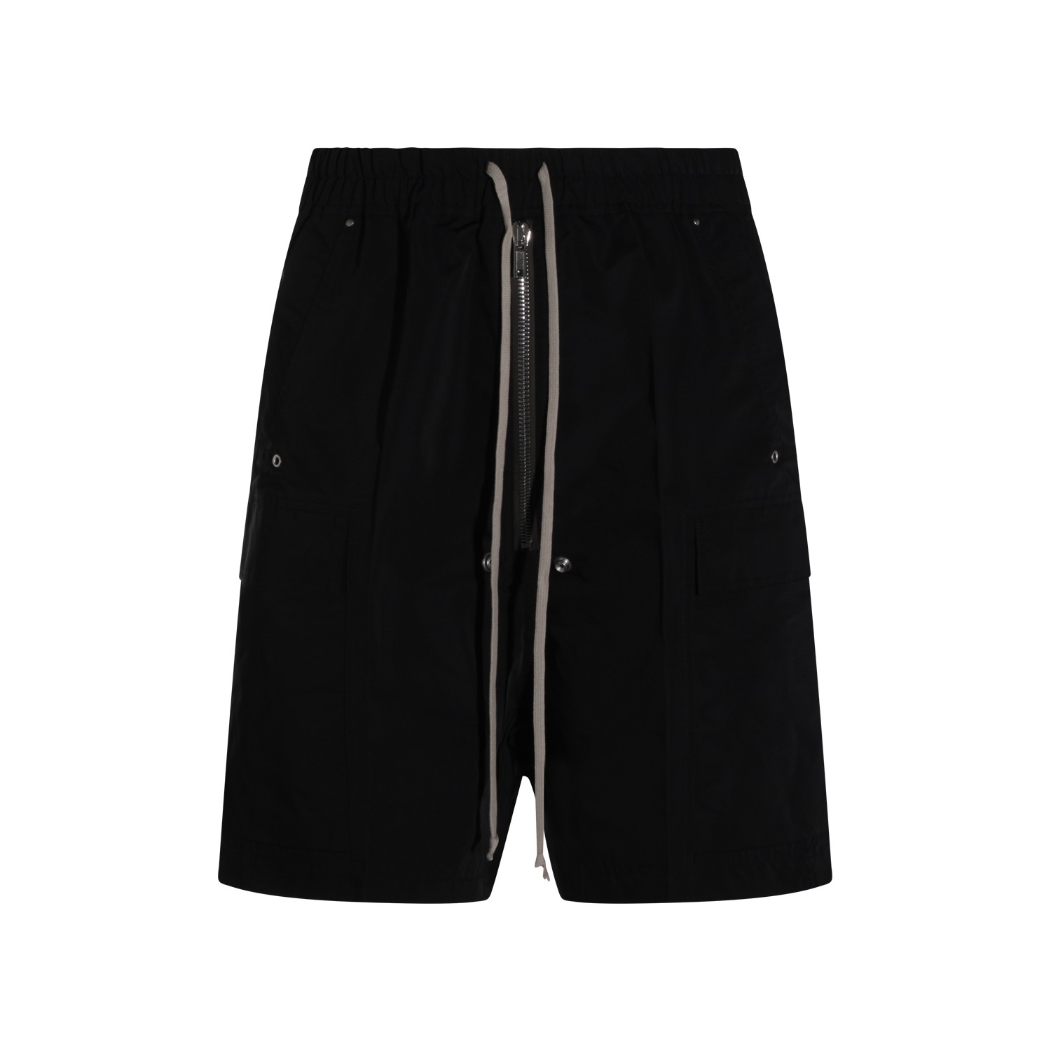 Black Cargobela shorts from Rick Owens featuring elasticated waistband with drawstring, zip closure and details.