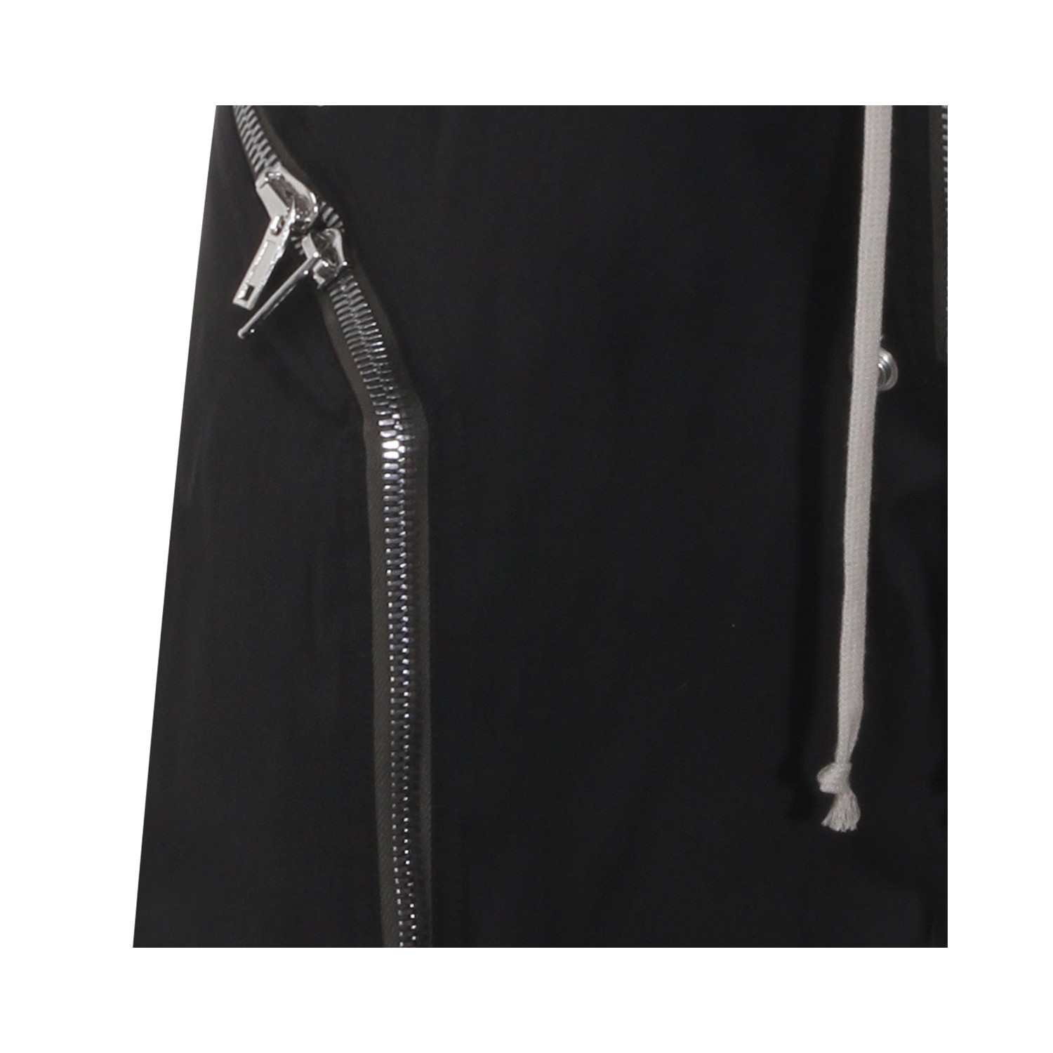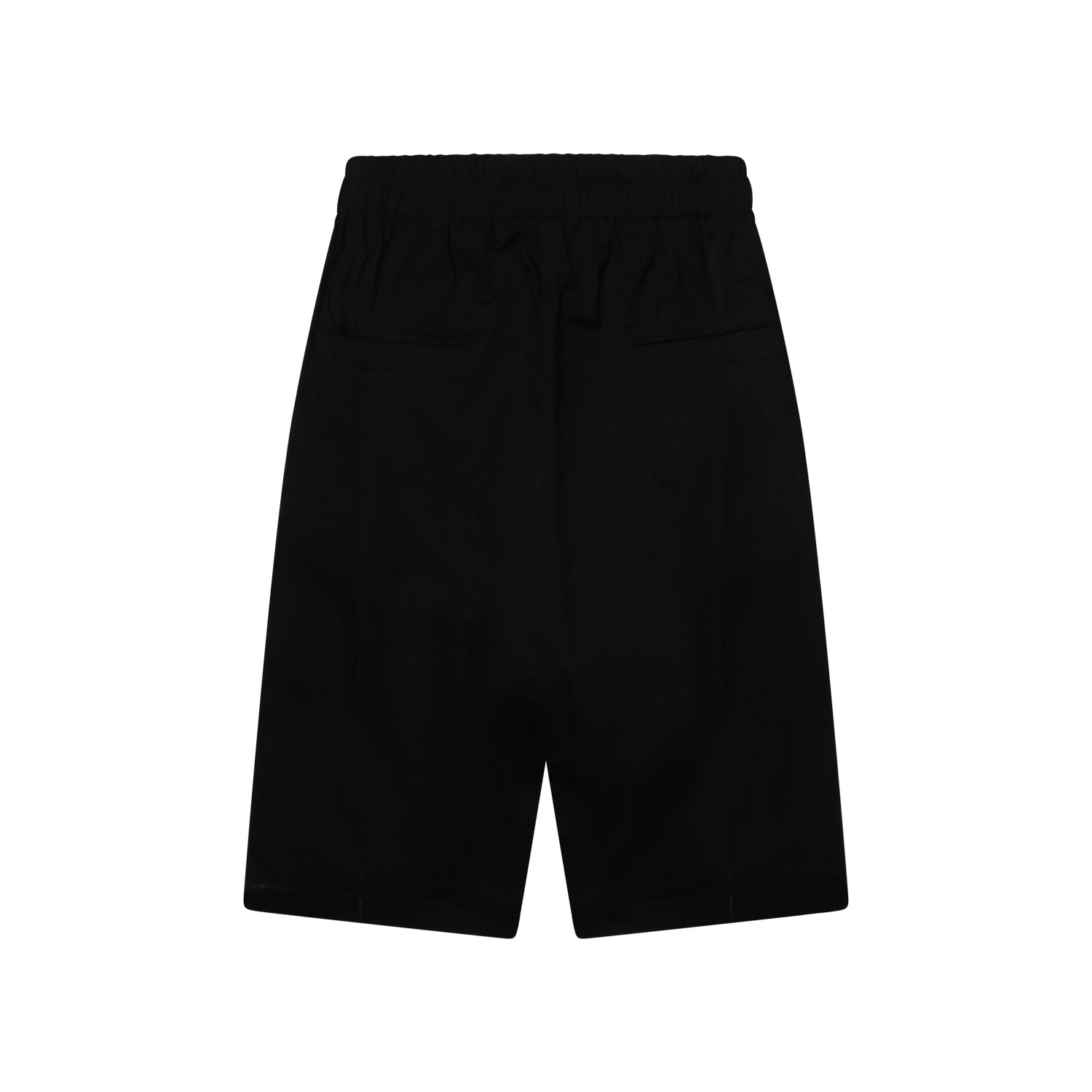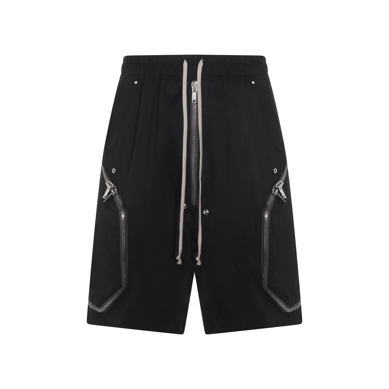 Black cotton Heizer Bela shorts from Rick Owens featuring elasticated waistband with drawstring, frontal zip closure, pockets and details.