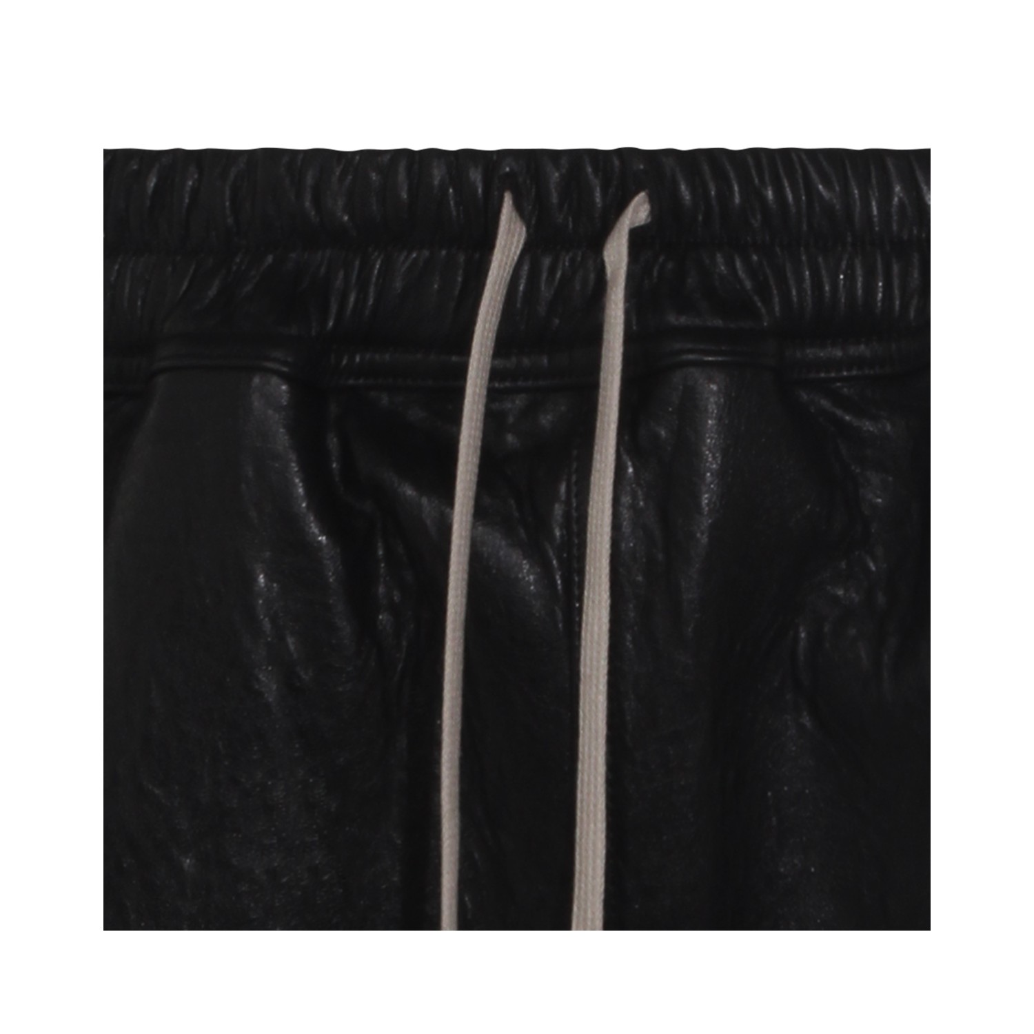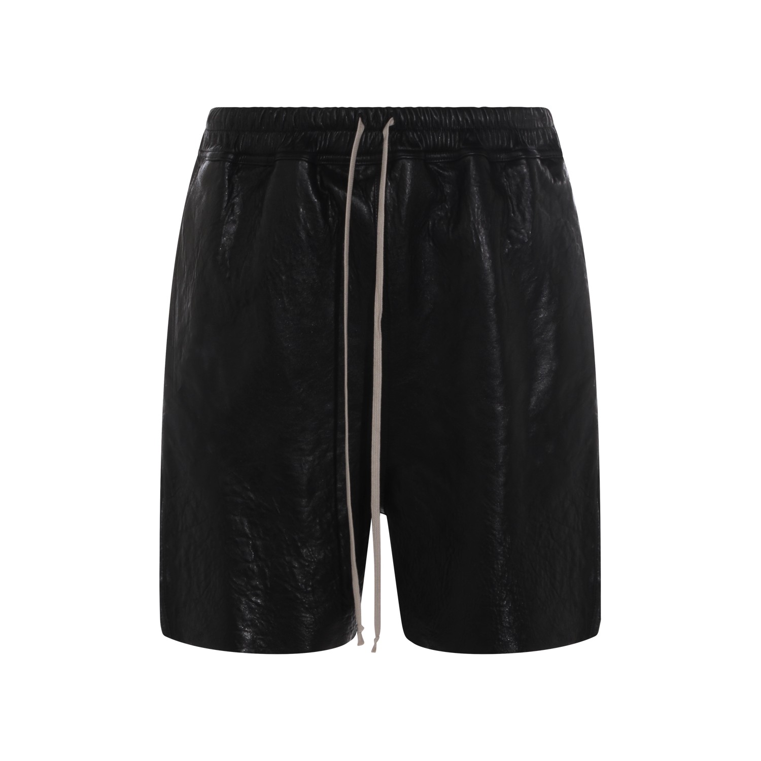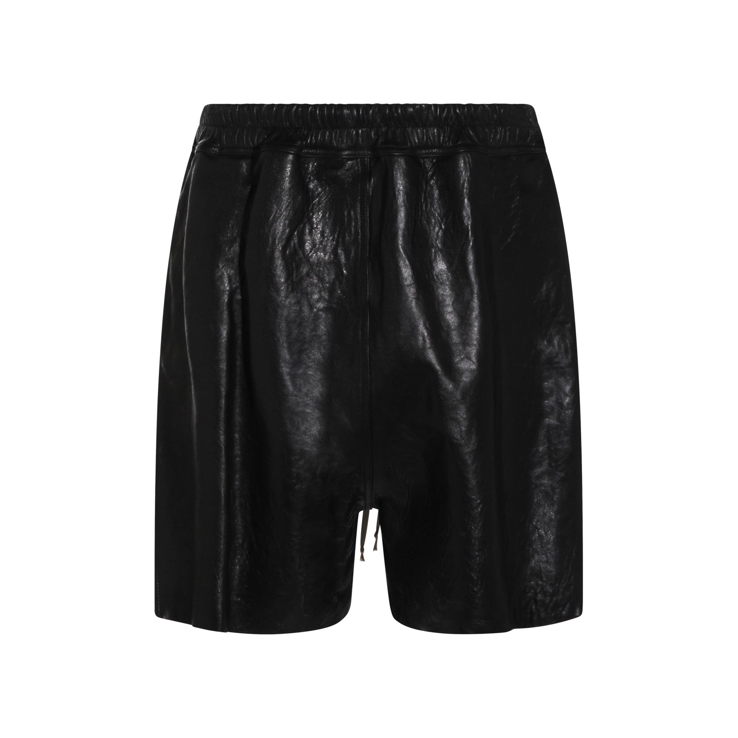 Black leather shorts from Rick Owens featuring elastic waistband, drawstring, side pockets and regular vestibility.