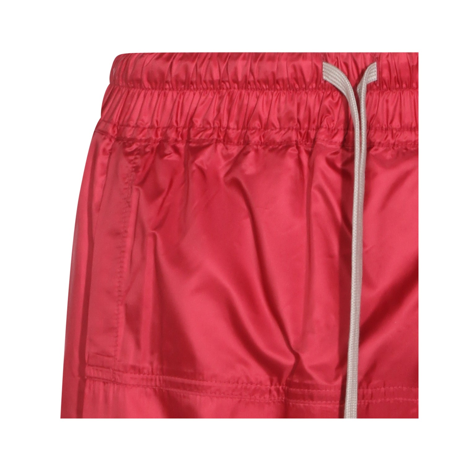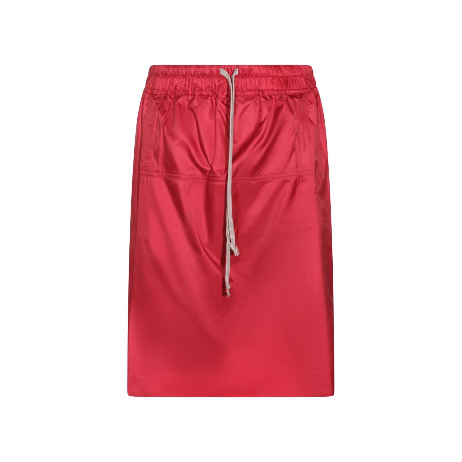 Red kiltshorts from Moncler + Rick Owens featuring drawstring waist, side pockets, patch pockets with button closure, embroidered logo patch and regular vestibility.