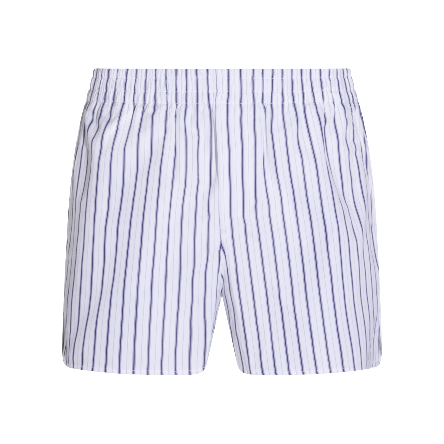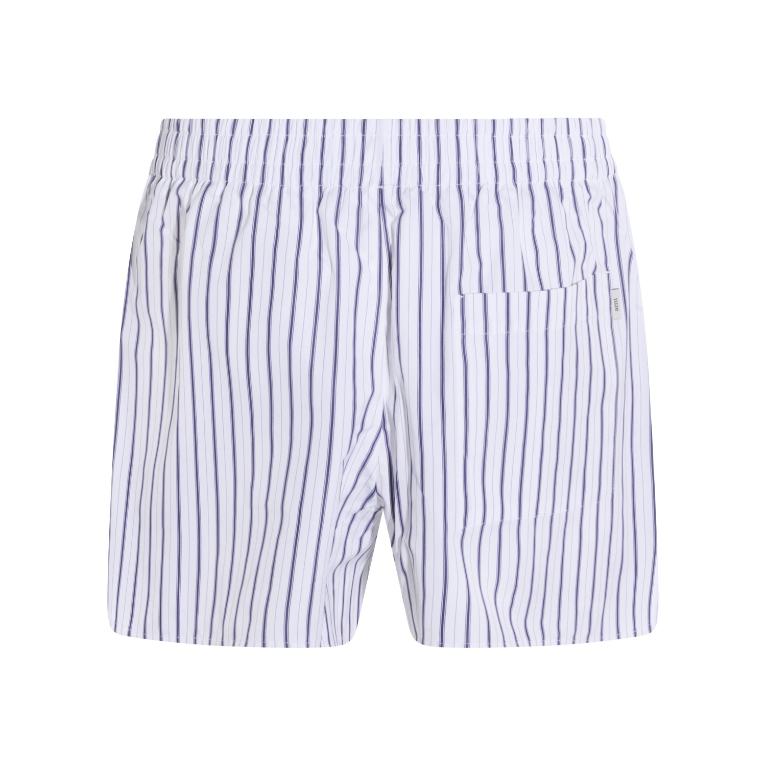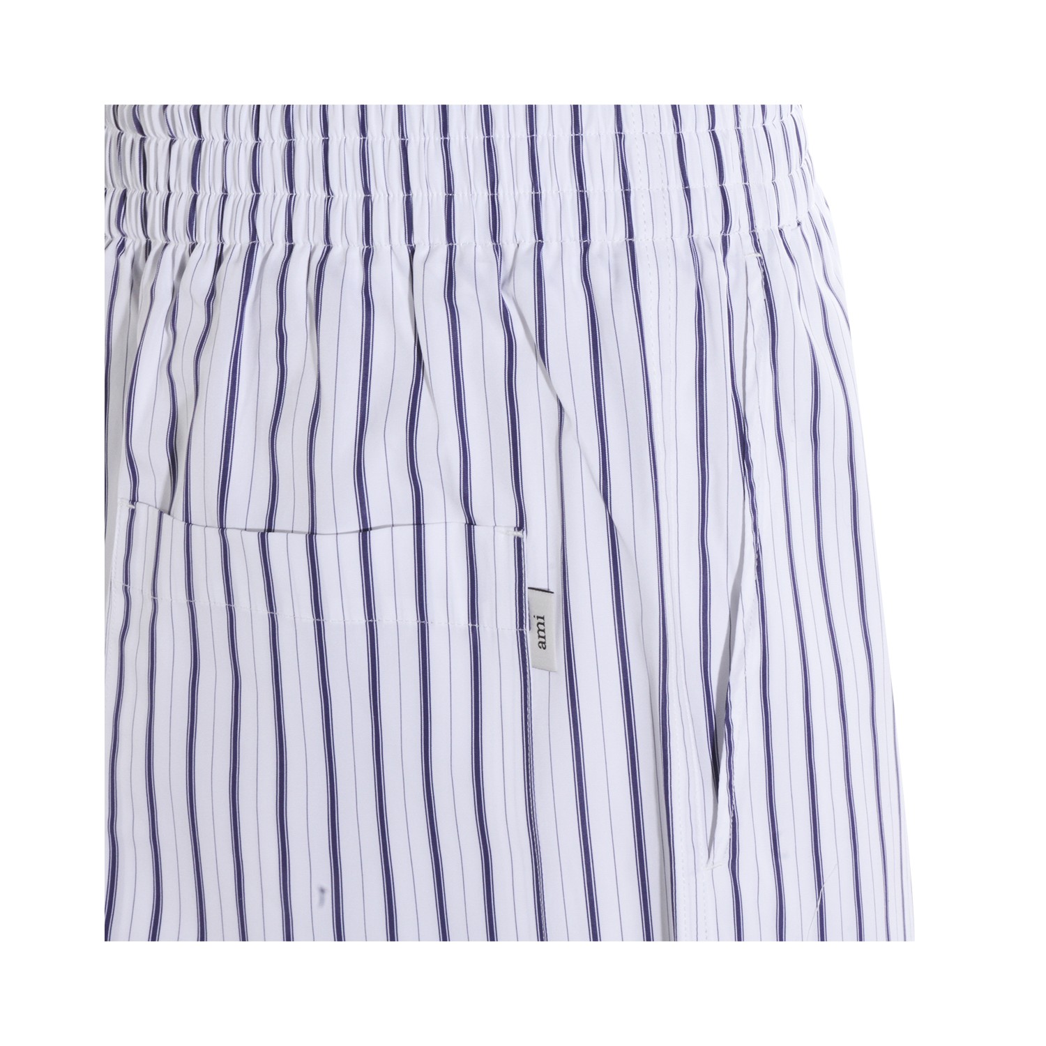 White and blue cotton shorts from Ami Paris featuring elasticated waistband, striped motif and regular vestibility.
