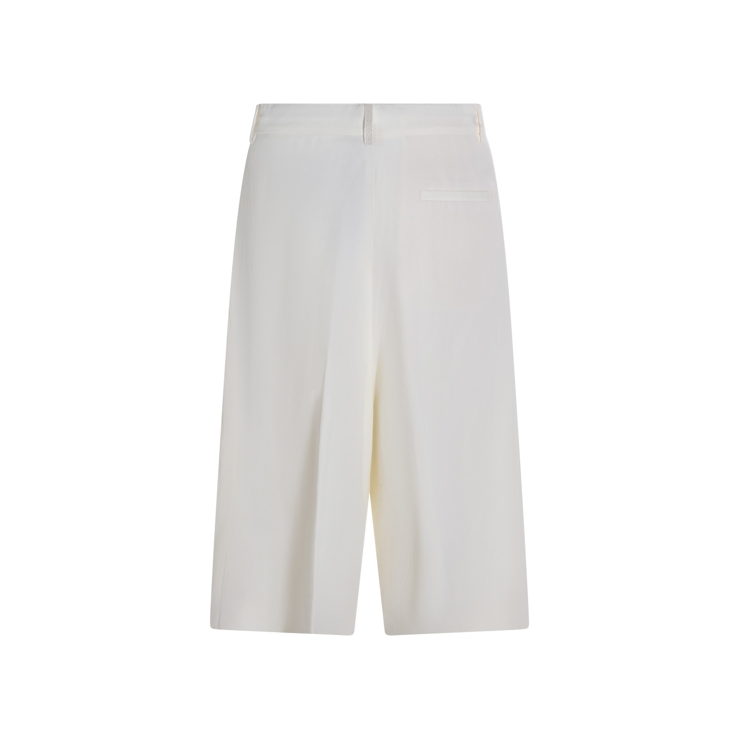 Butter viscose and linen blend bermuda shorts from Fabiana Filippi featuring mid length, relaxed fit, side pockets, belted waist, high waist and pleated line.