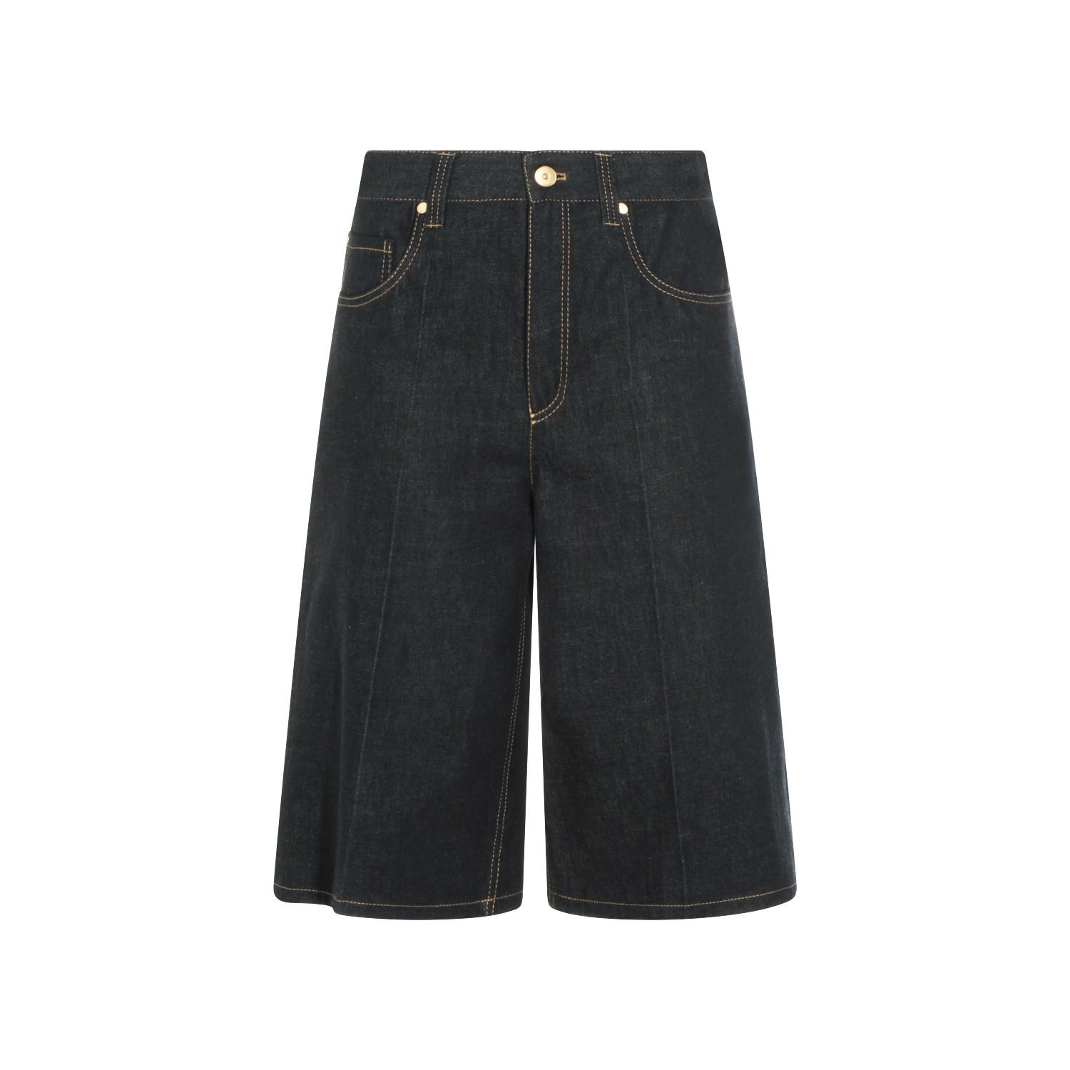 Dark blue cotton shorts from Brunello Cucinelli featuring belt loops, zip and button fastening, pockets and regular vestibility.