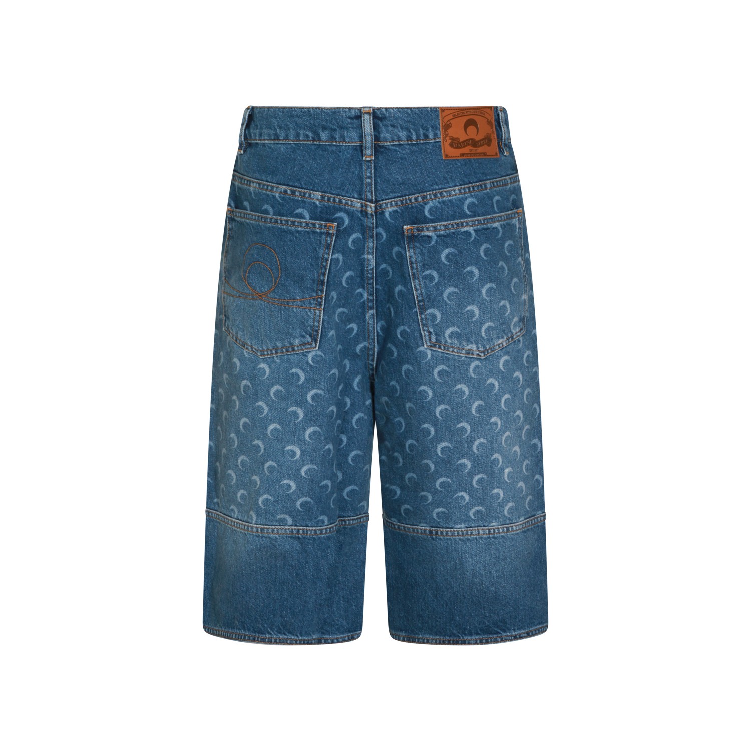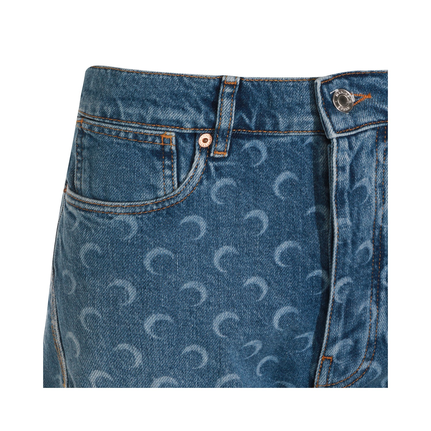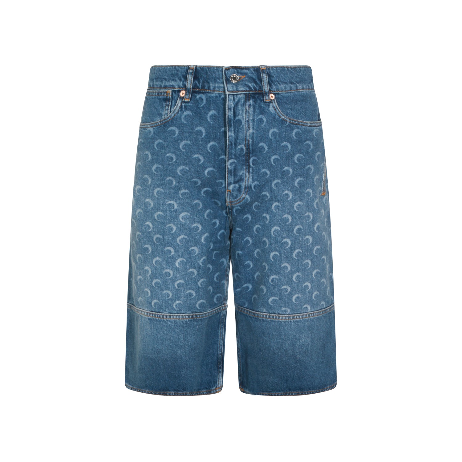 Light blue cotton shorts from Marine Serre featuring belt loops, zip and button fastening, moon pattern, pockets and regular fit.