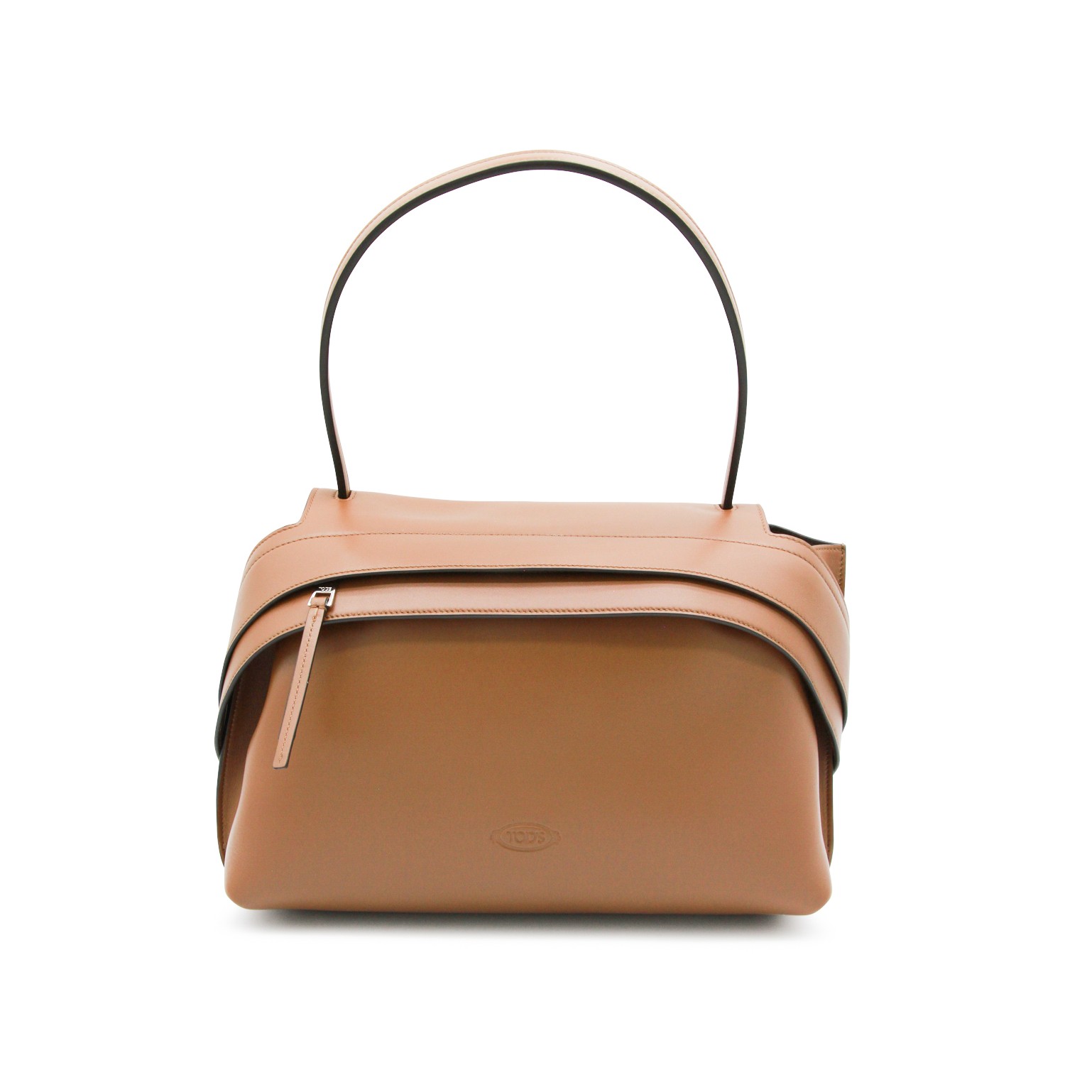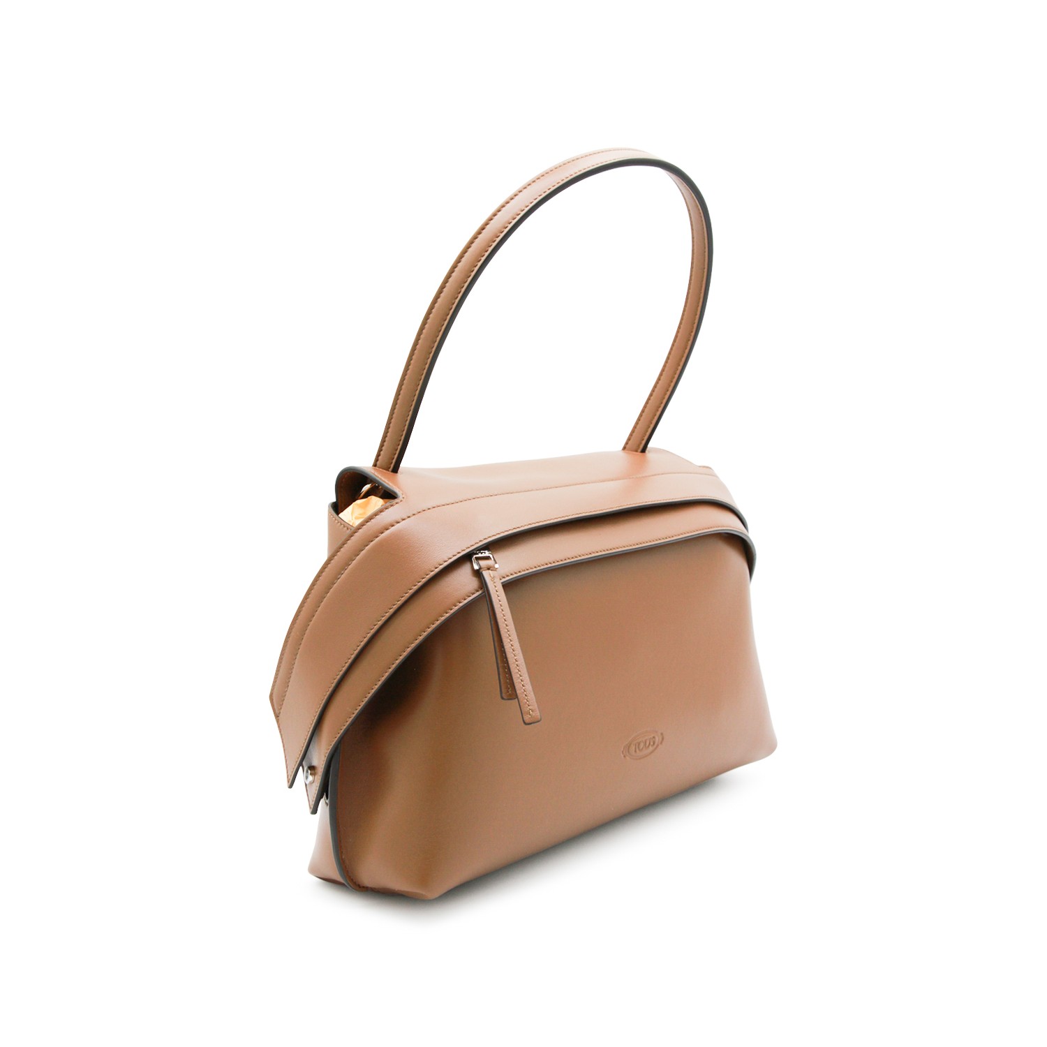 Brown leather Wav shoulder bag from Tod's featuring top handle, zip fastening, main compartment, internal zip pocket, back pocket and frontal logo.