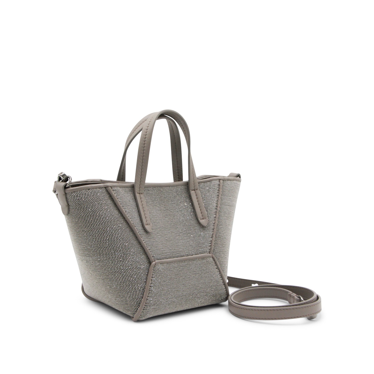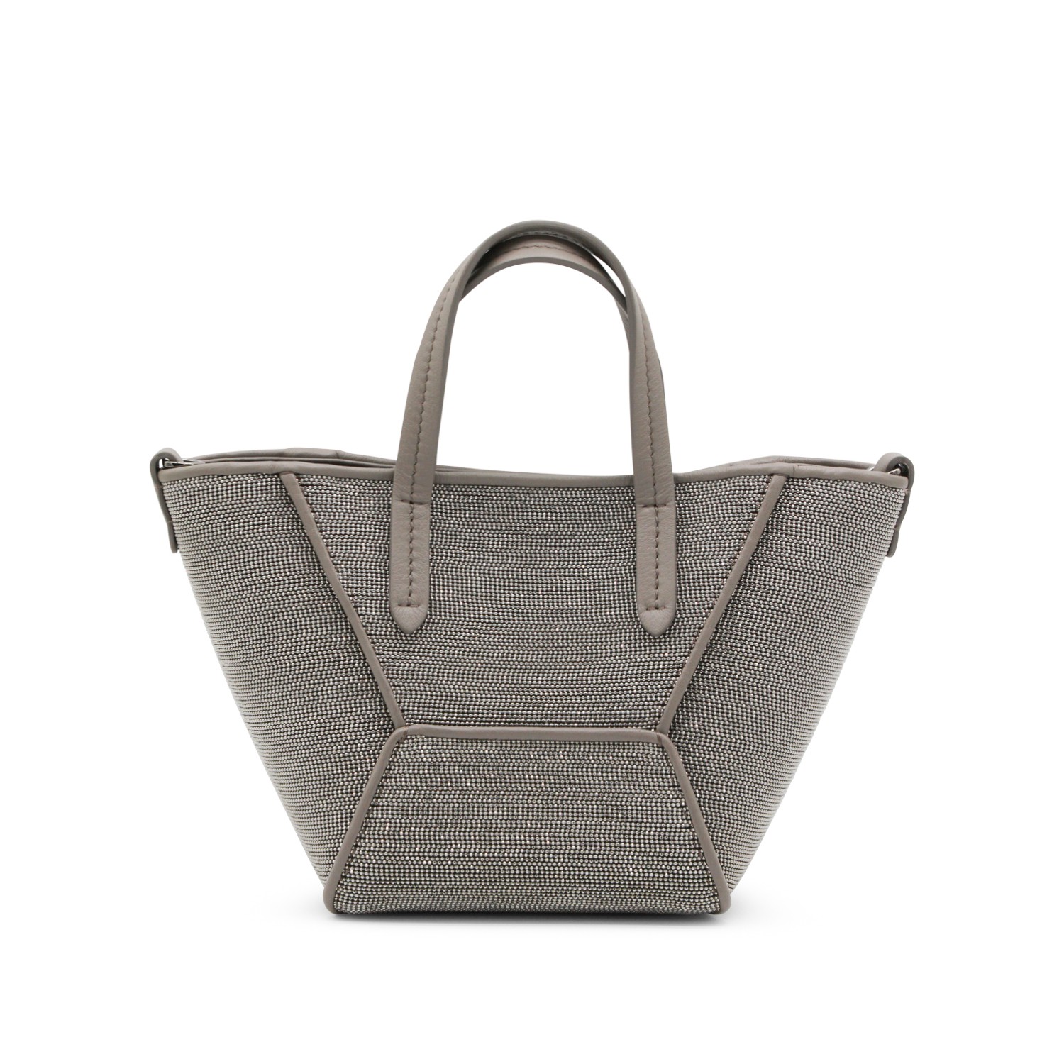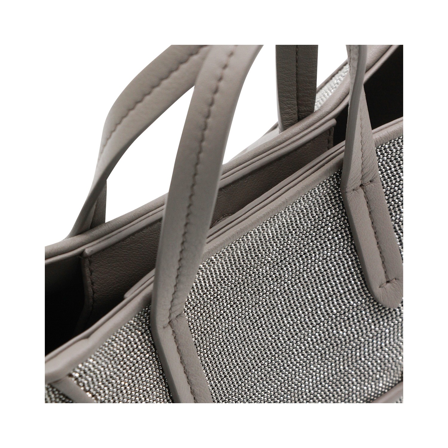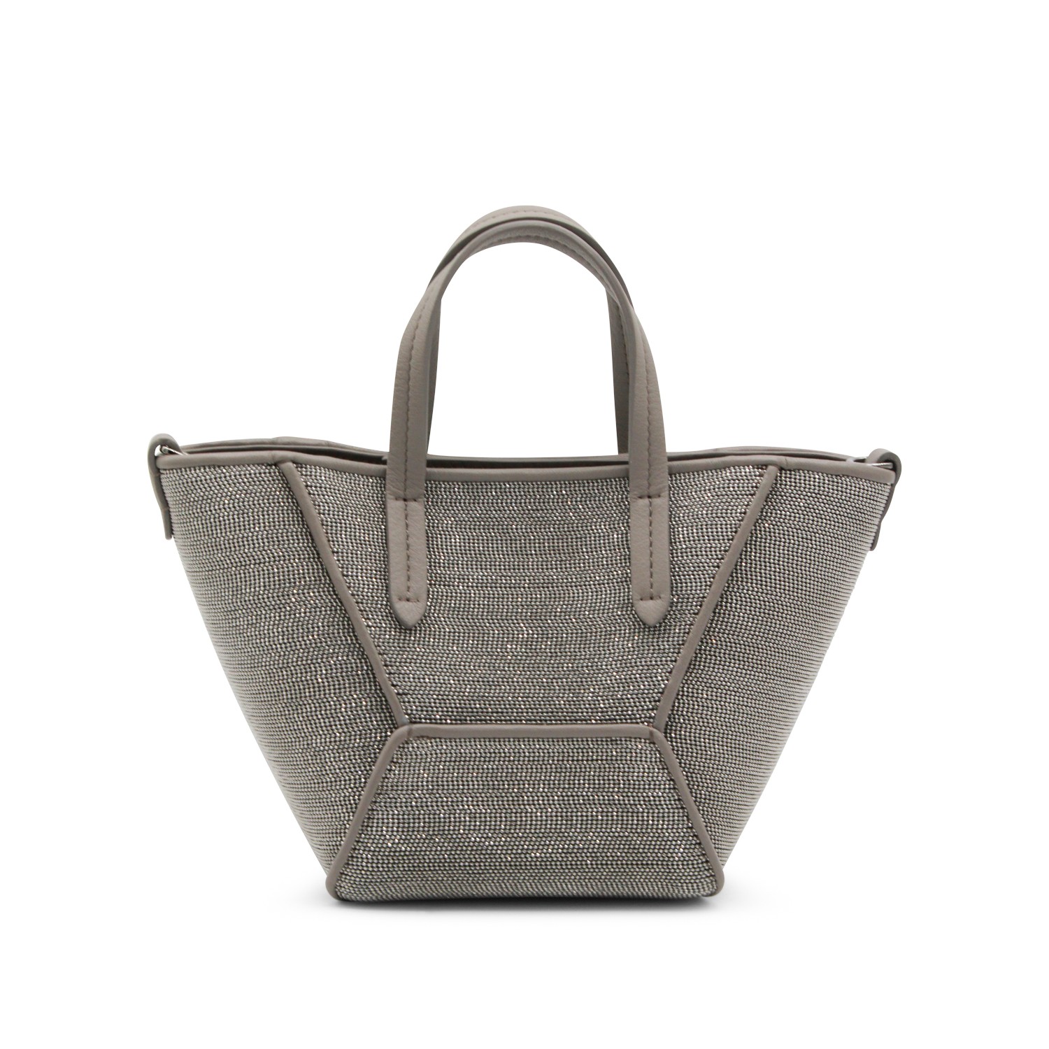 Grey leather crossbody bag from Brunello Cucinelli featuring top handles, single compartment and stitching details.